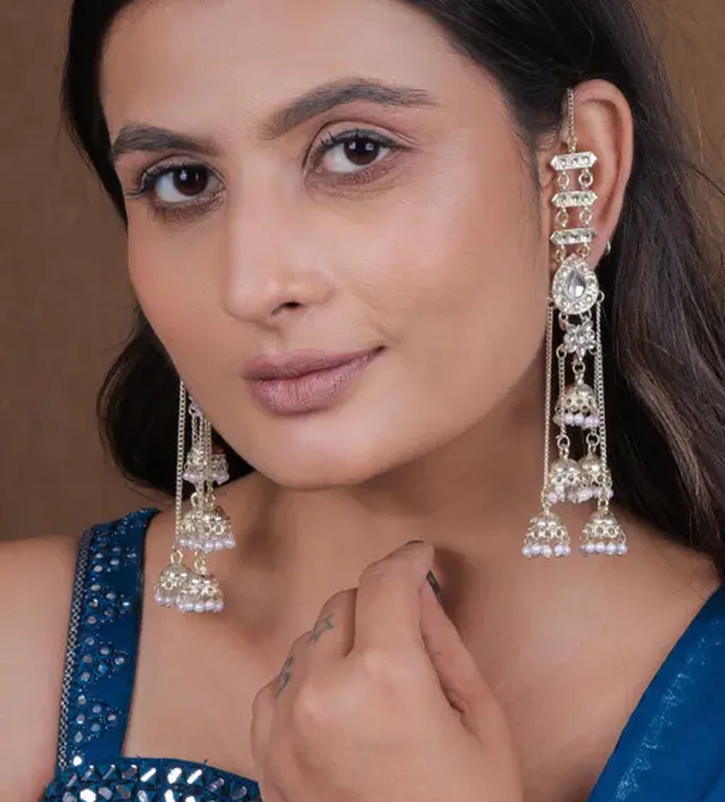 • Small Crystal Or Pearl Accents On Each Jhumka