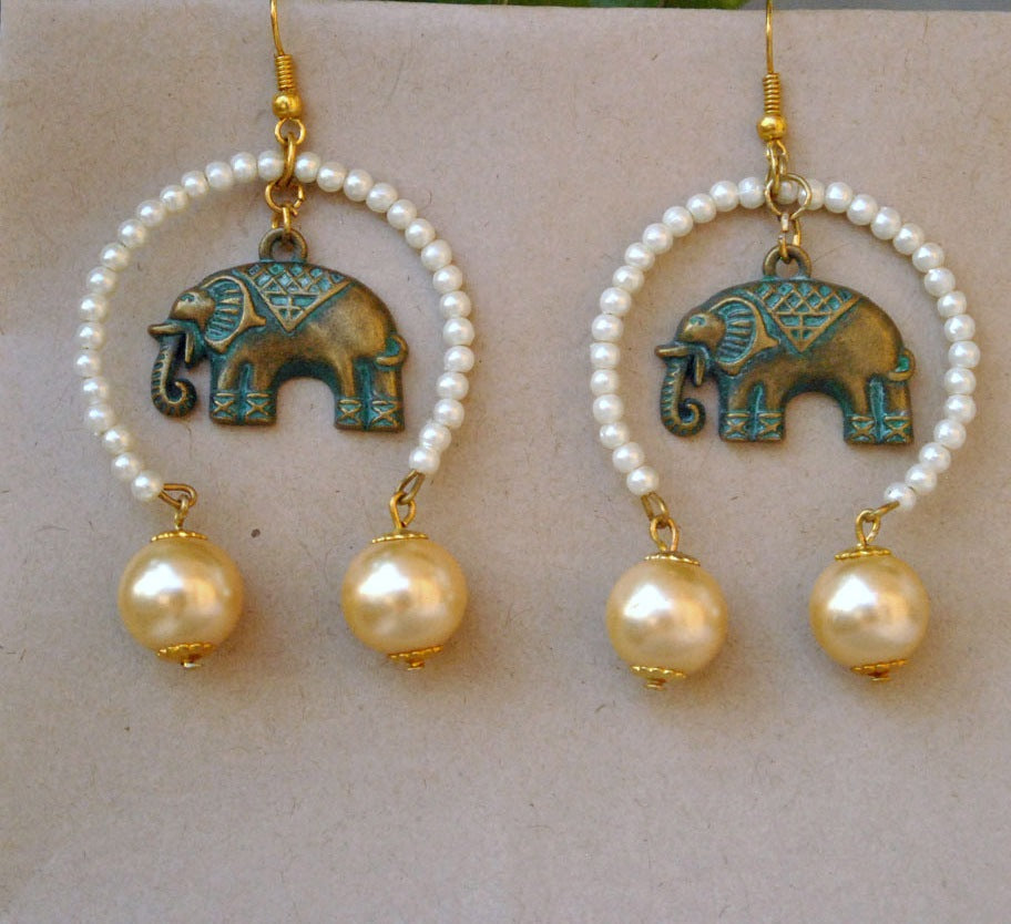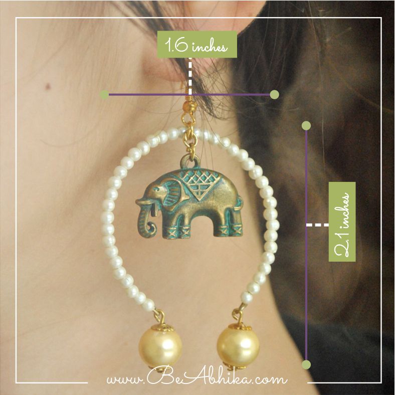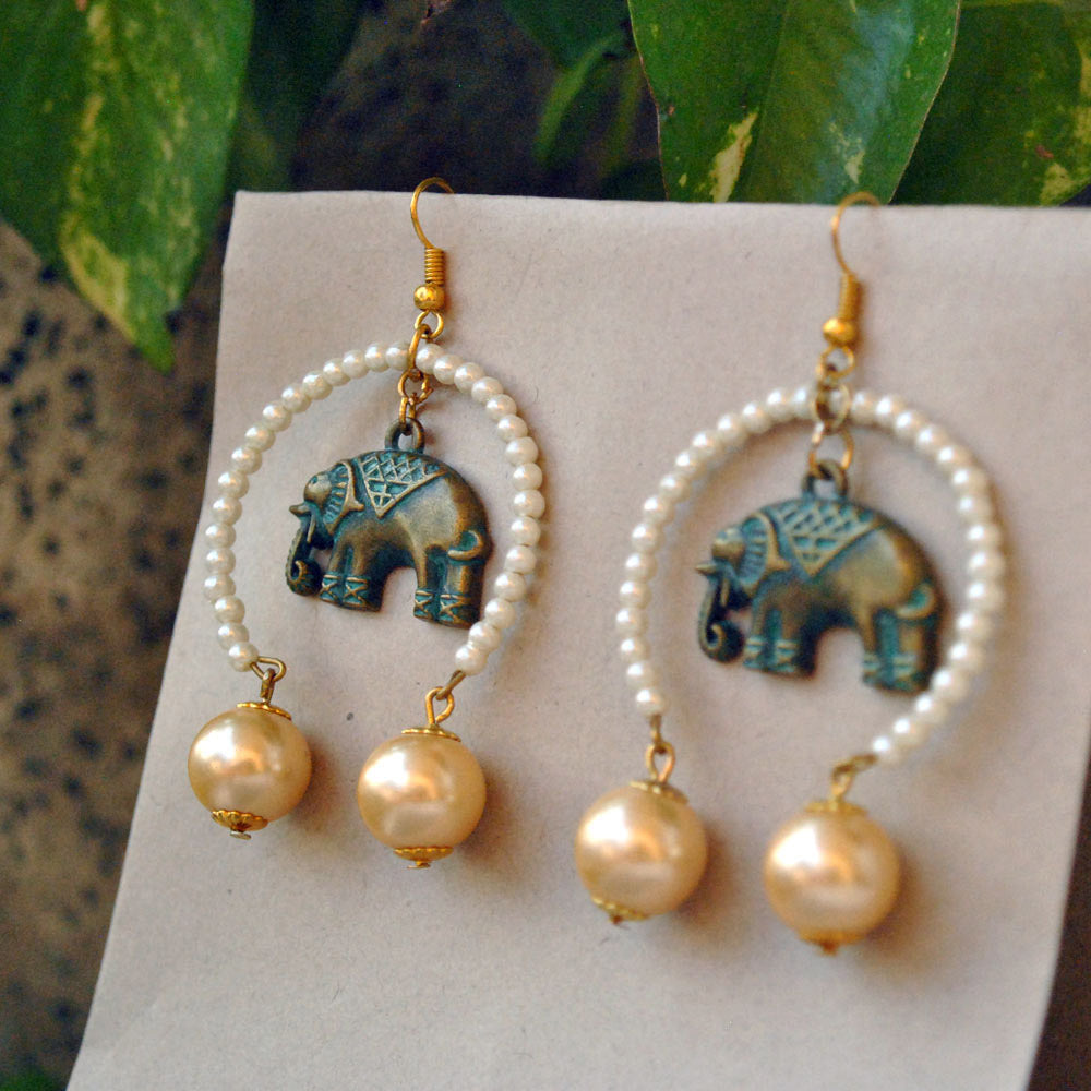 Steal The Show With These Elephant Embossed Antique Earrings. The Arrangement Of Beaded Pearls And Dangling Golden Pearls Are Adding An Extra Poise To The Master Piece
