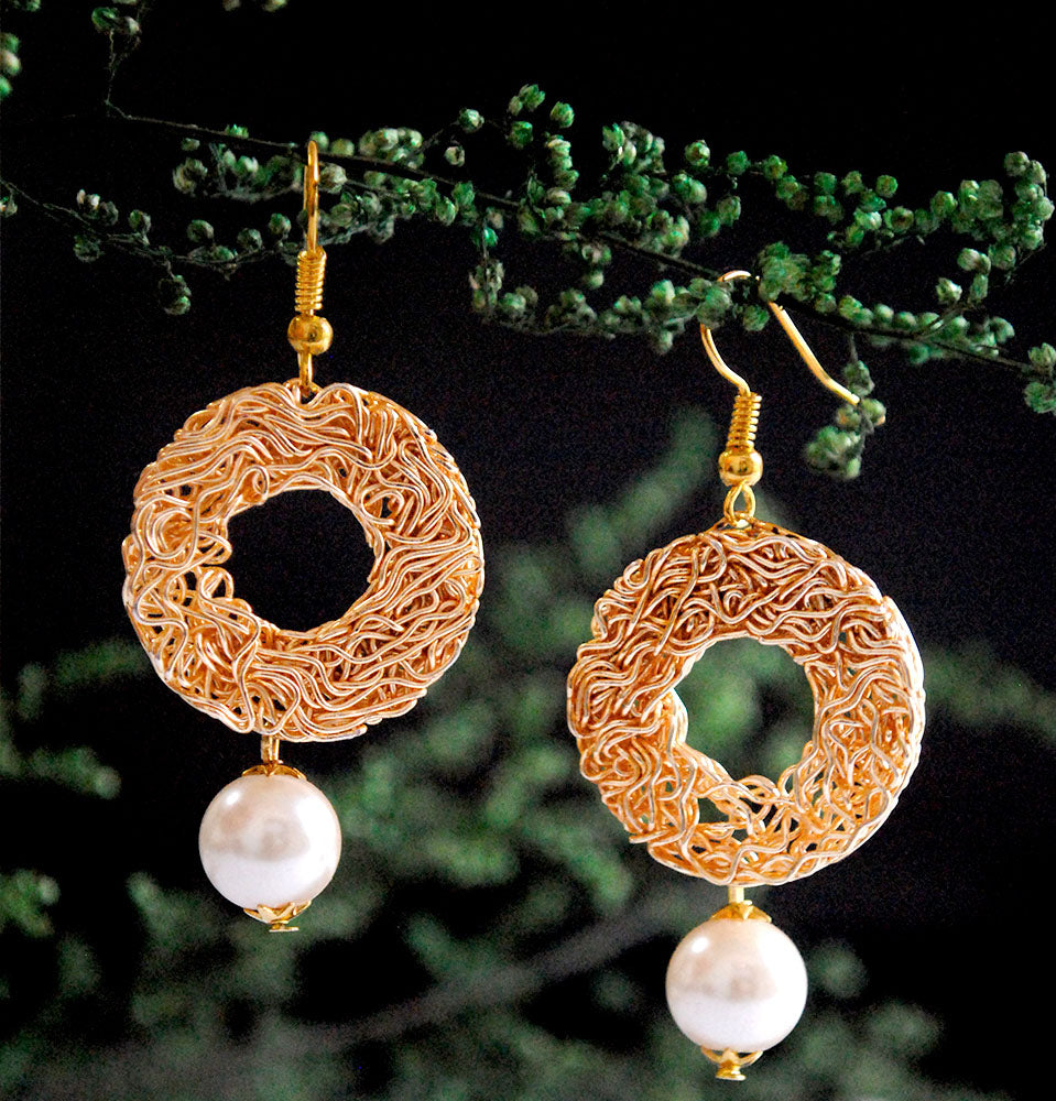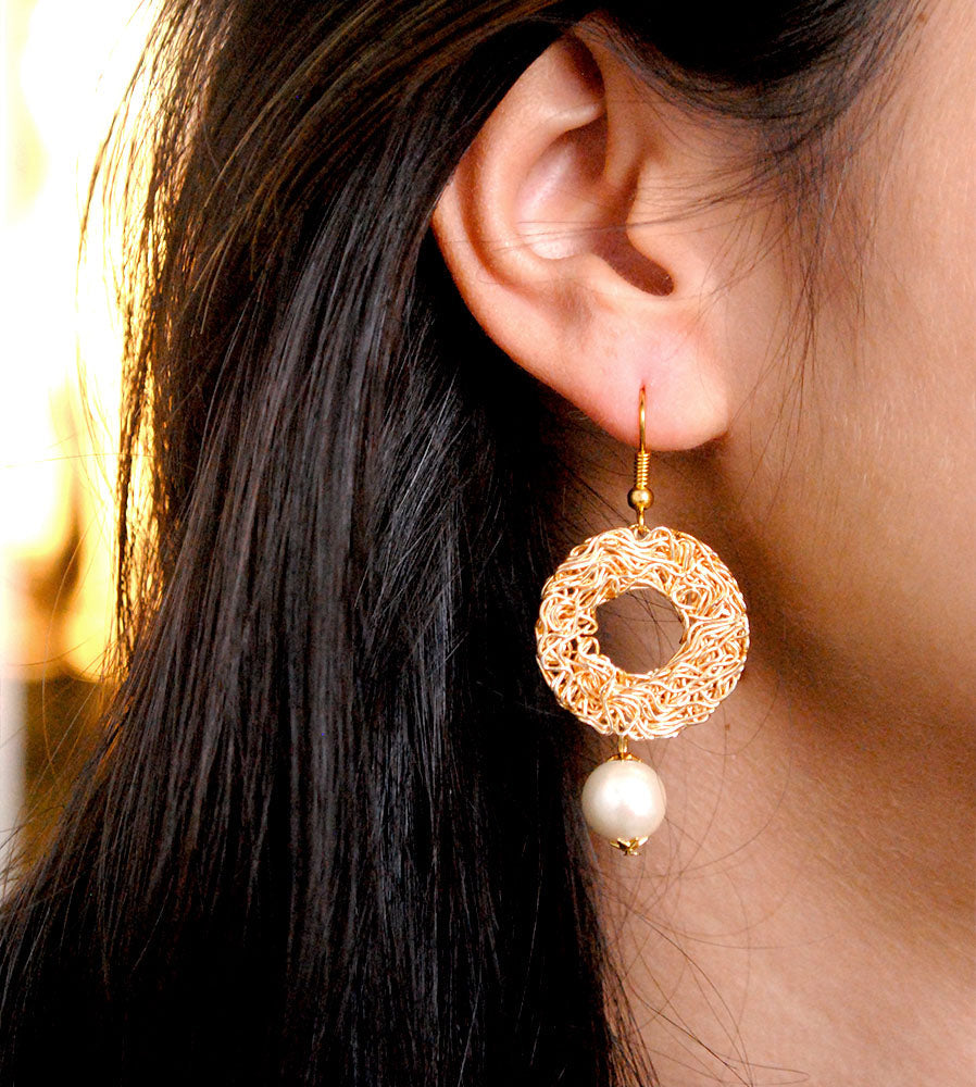 Fulfill Your Need For Contemporary Styling With These Flat Mesh And Dangling Pearl Earrings.