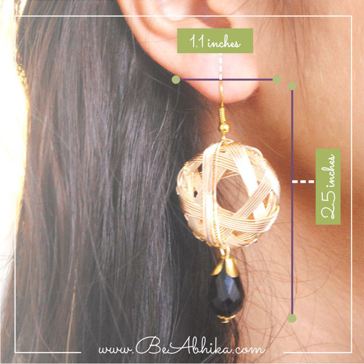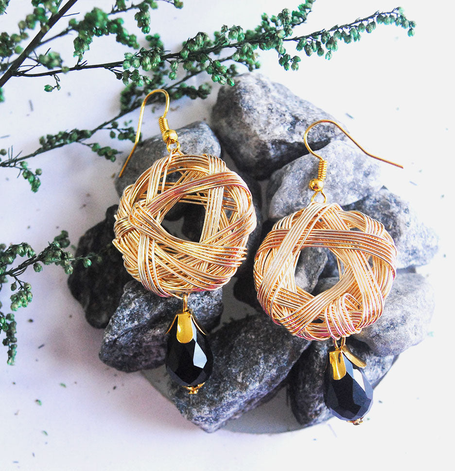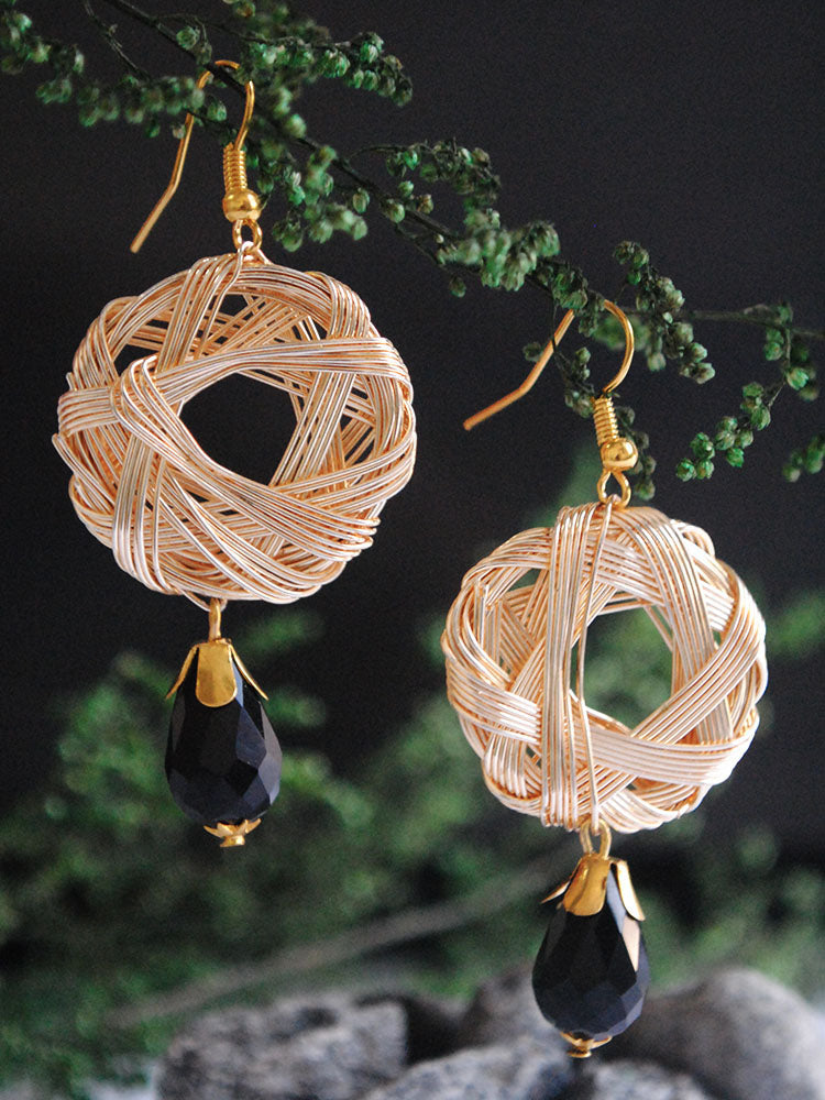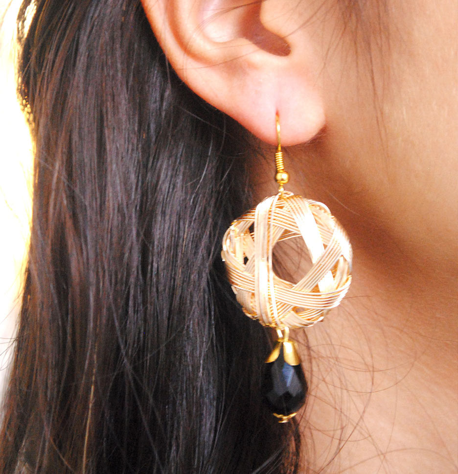 These Pair Of Earrings Are Simple Yet Stylish. Black Glass Briolette Is In Perfect Contrast With Wire Mesh Alloy Ensemble.