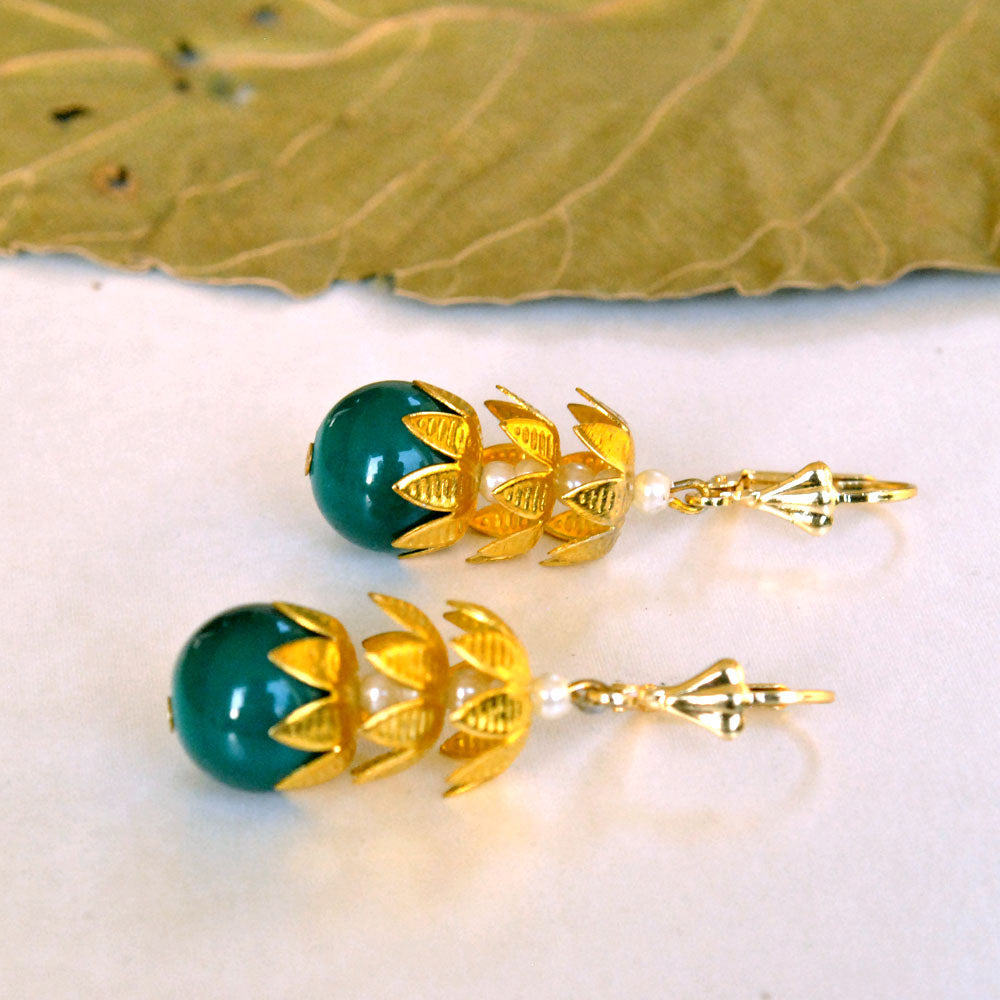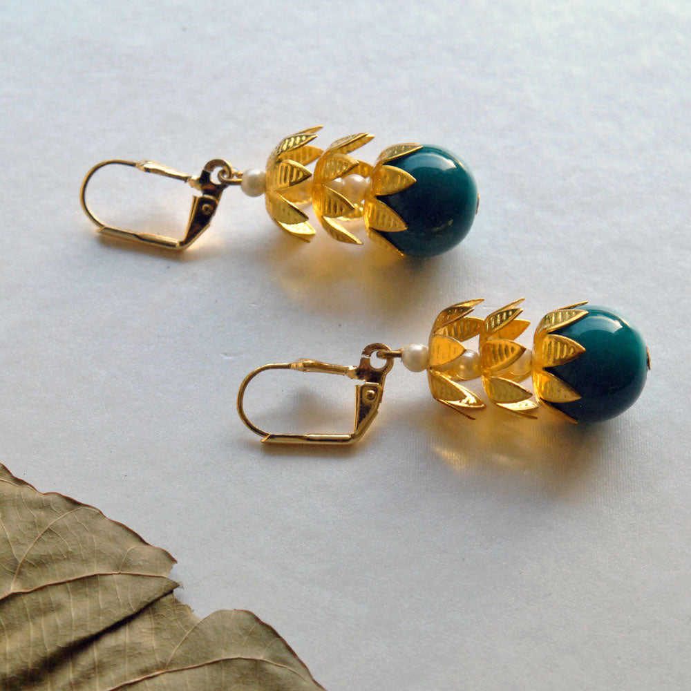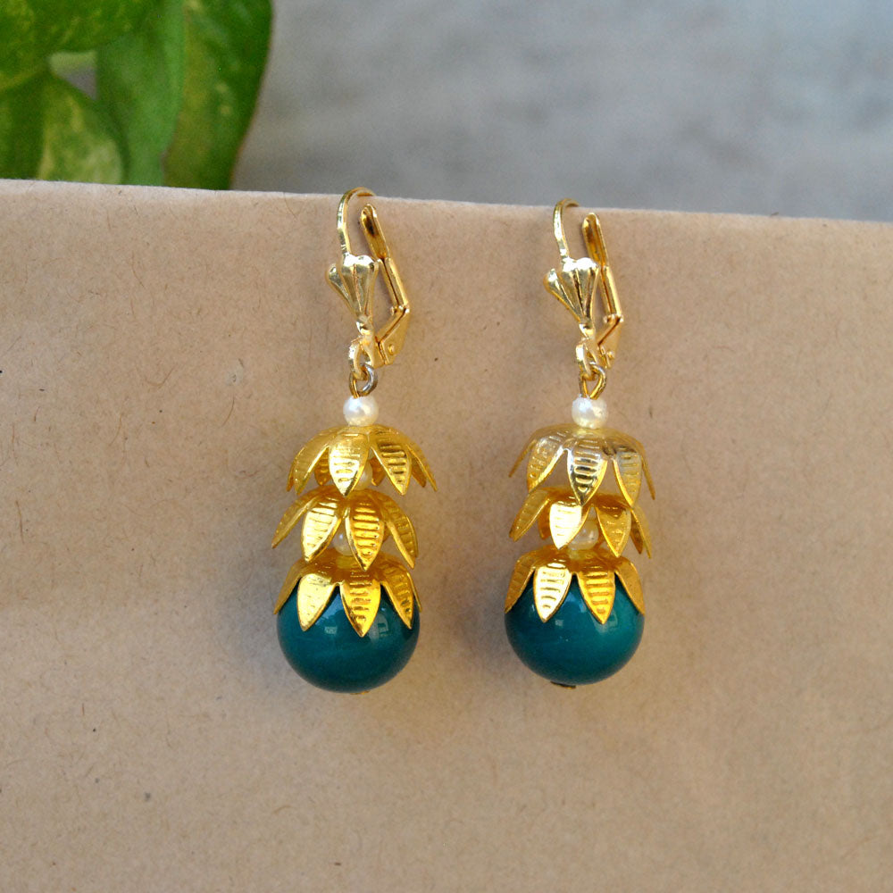 Colorful Cabochon Bead Is Truly Embraced With Multiple Layer Of Metal Caps Each Spaced With Small Synthetic Pearls Which Give A Much Cleaner And Fashionable Look.