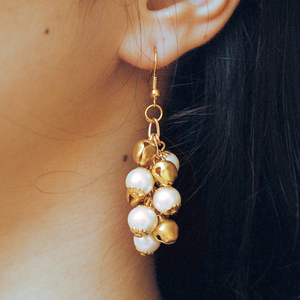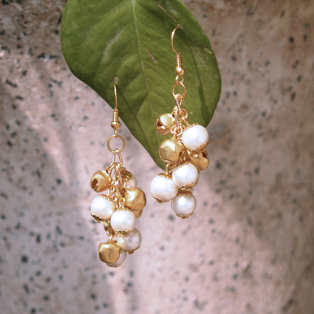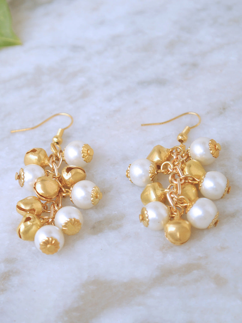 Add A Touch Of Royalty And Tradition To Your Contemporary Outfit With These Pearl And Ghungroo Danglers, Swaying Pearls Will Give Your Outfit The Rhytm It Needs.