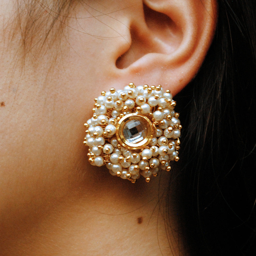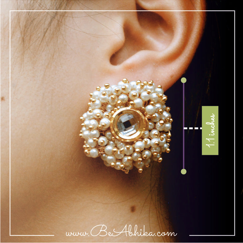 A Pretty Kundan Stone, Resting On A Garden Of Numerous Tiny Pearls, These Earrings Are A Gorgeous Accessory For All Your Traditional Attires.