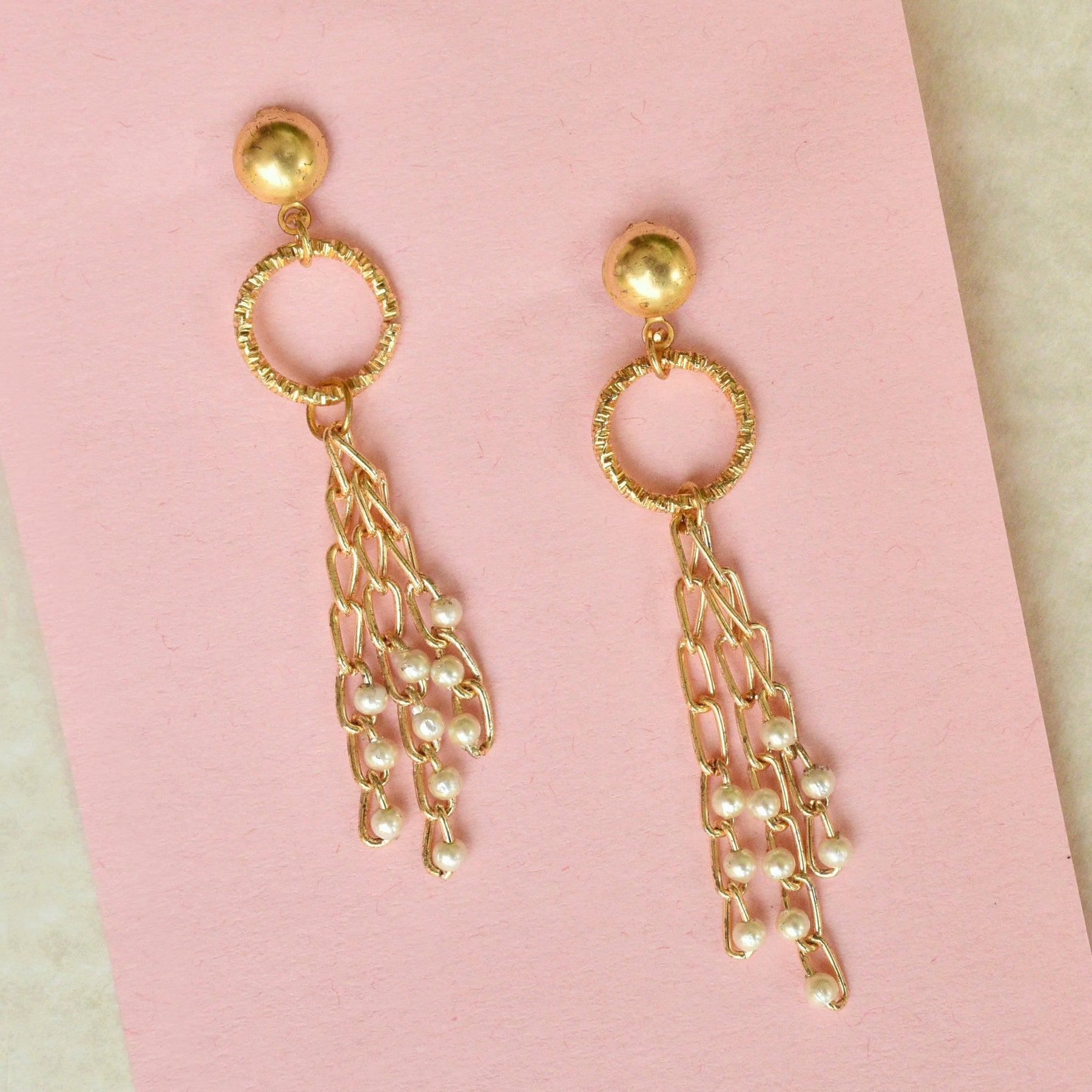 There'S Nothing More Classic Than Pearls! These Beautiful Drop Earrings With Twisted Chain Attached With A Cute Mini Ring; Are Great For A Night Out With The Girls Or Date Night! These Earrings Are Just What You Need To Go With Your Ensemble For That Perfect Romantic Look!