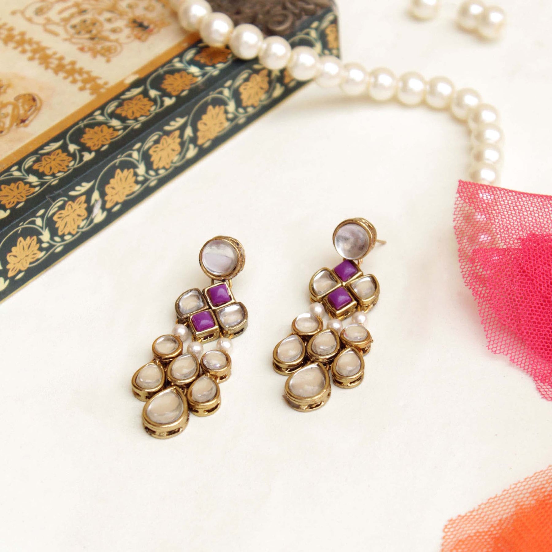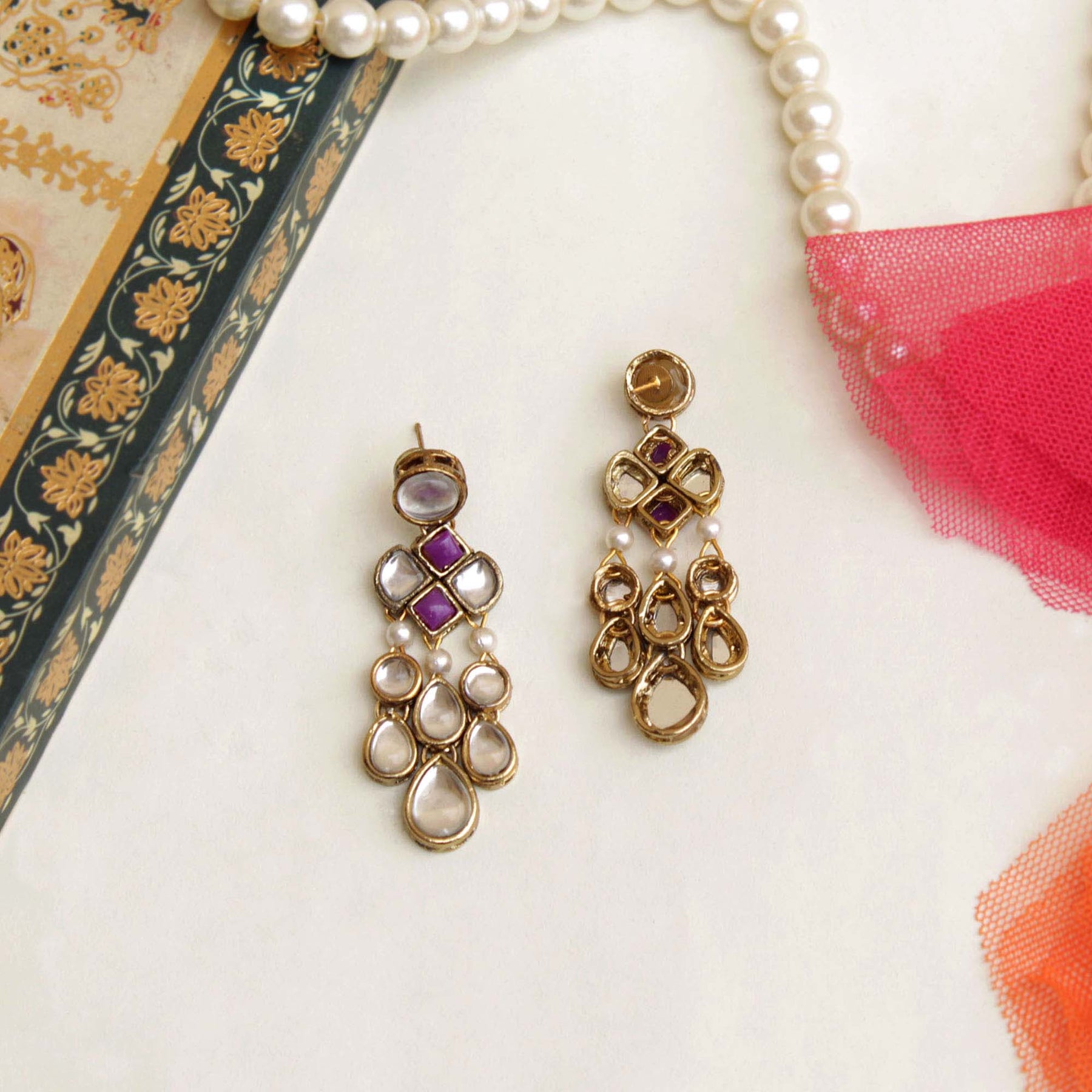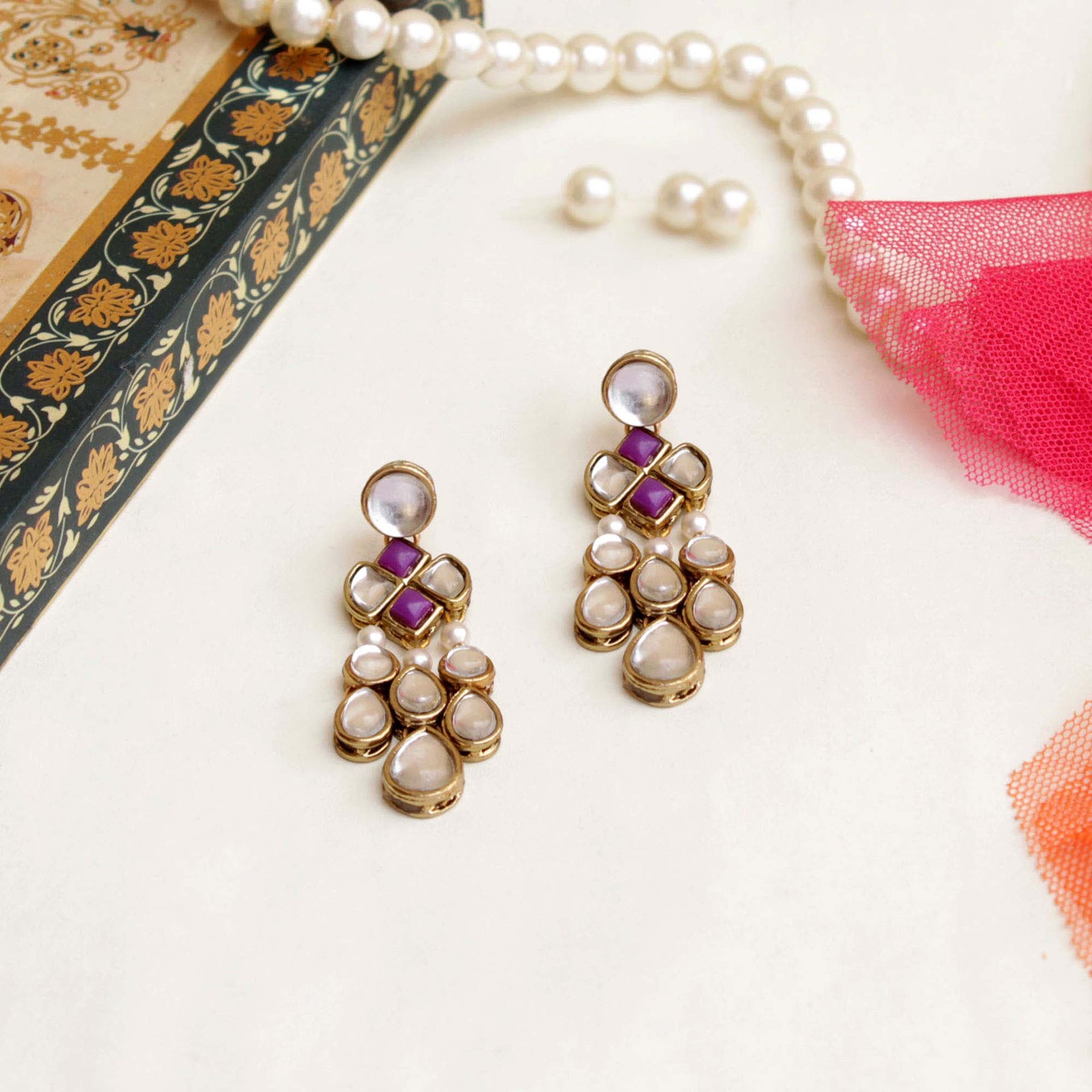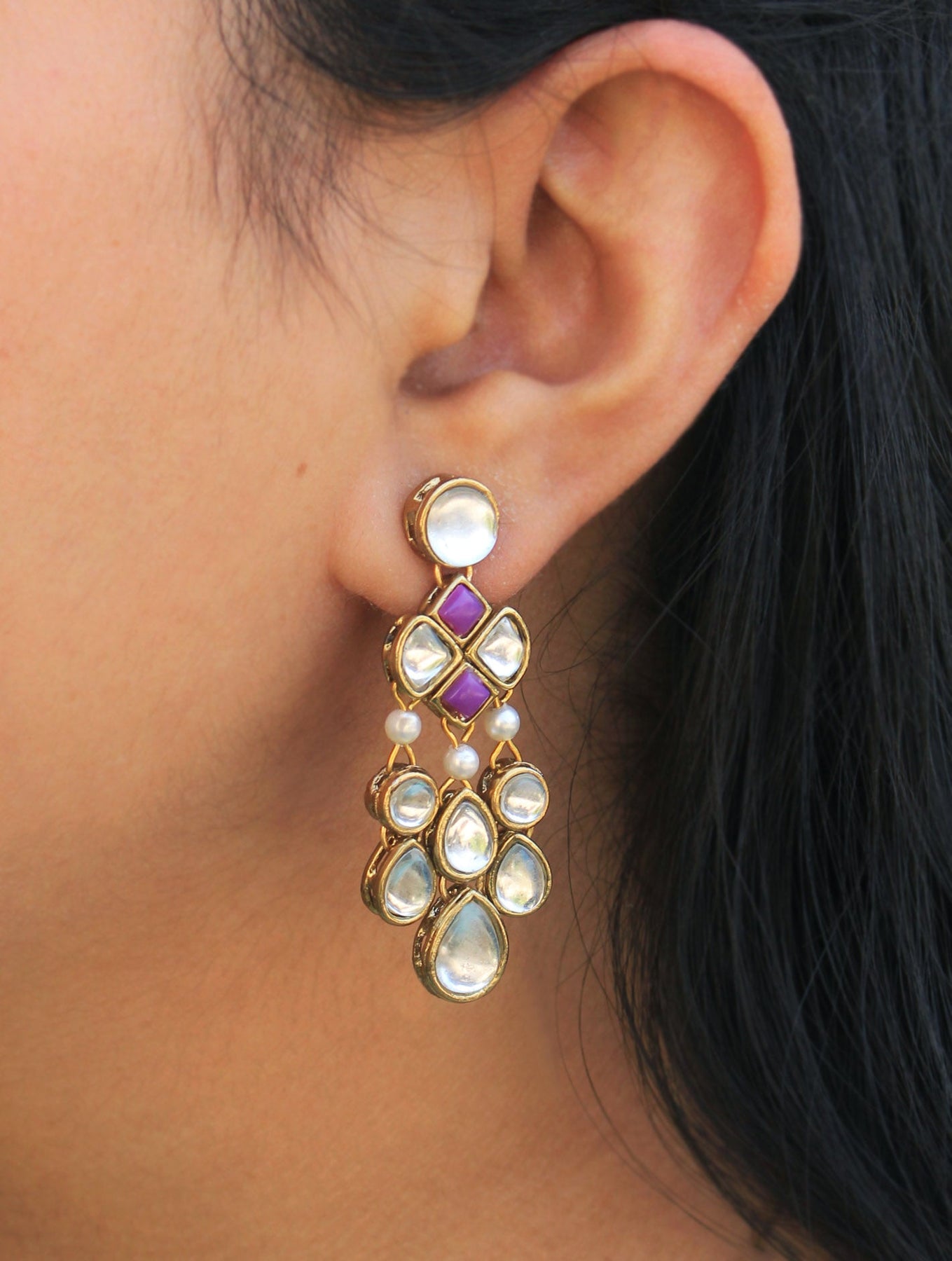 These Minimalistic Kundan Earrings Can Uplift Any Attire. This Classic Pair Of Earrings That Every Woman Must Have In Her Jewelry Case.