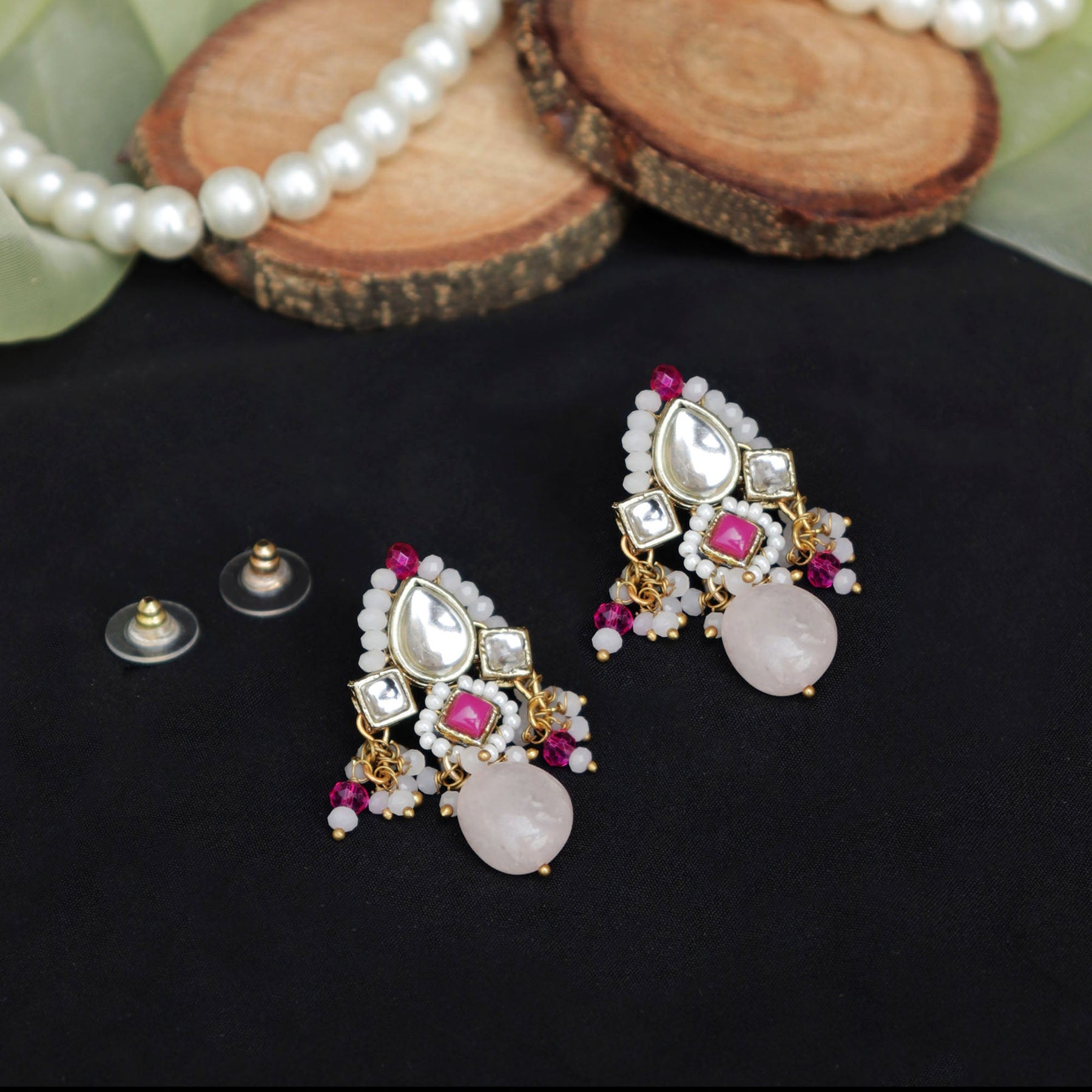 Stones :Semi-Precious Pink Stone, Glass Beads & Glass Kundan