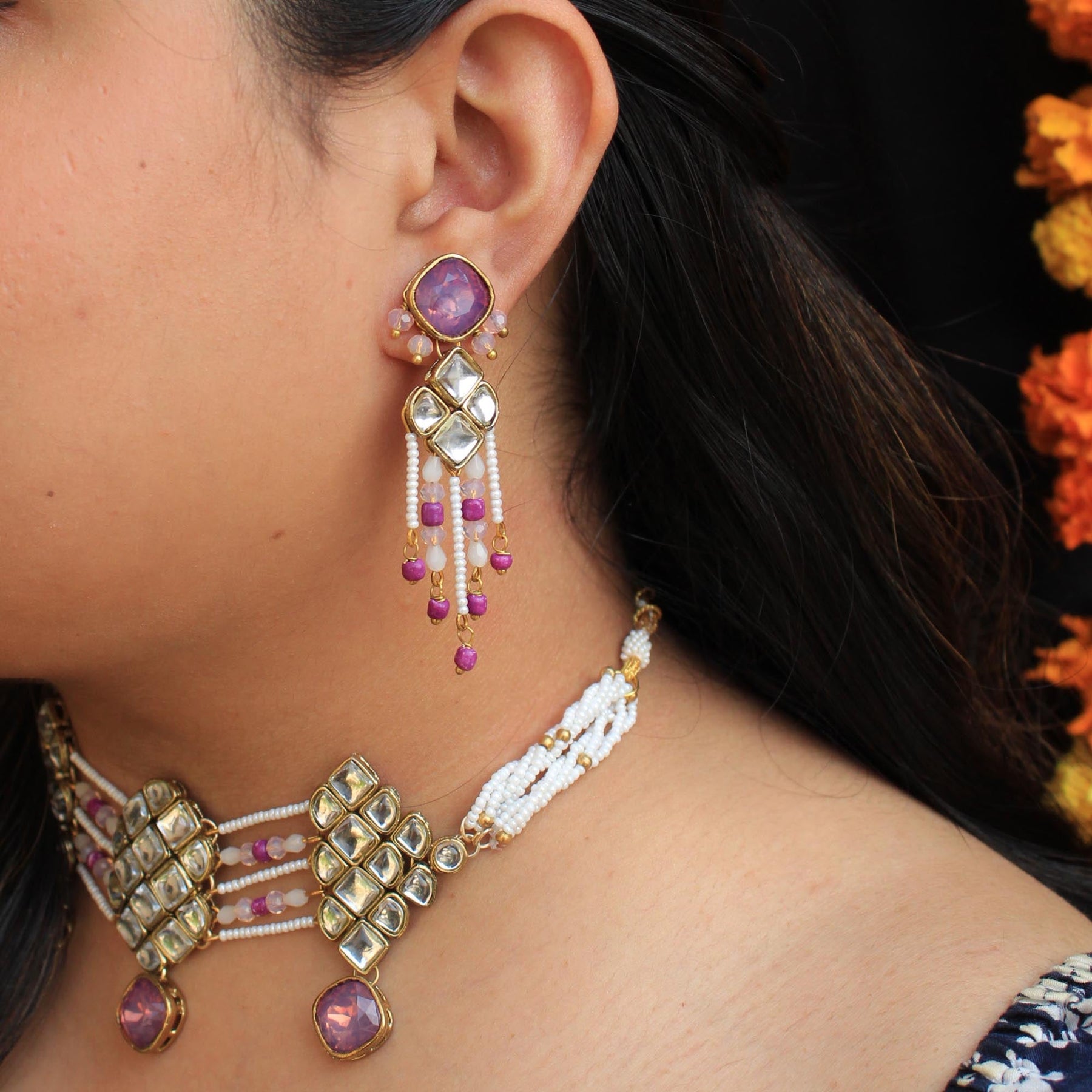 This Pair Of Earrings Gives A Stylish Edge To The Overall Ethnic Ensemble. Wear These Earrings Fused With Pearls Gives A Different Sense To This Evergreen Classic To Your Next Festive Event. Pair These Pair Of Earrings With Our Favourite Ethnic Outfit.