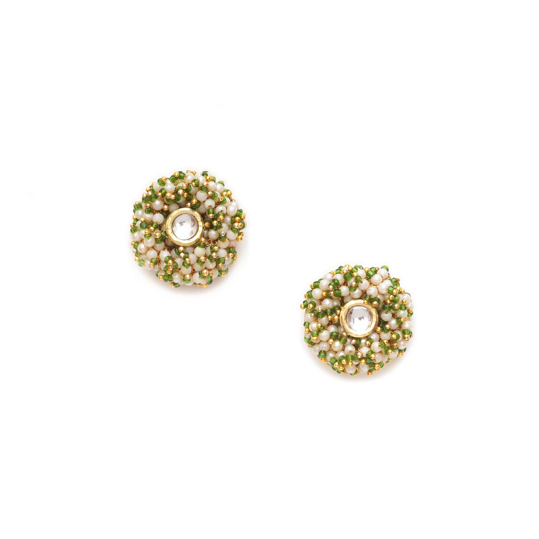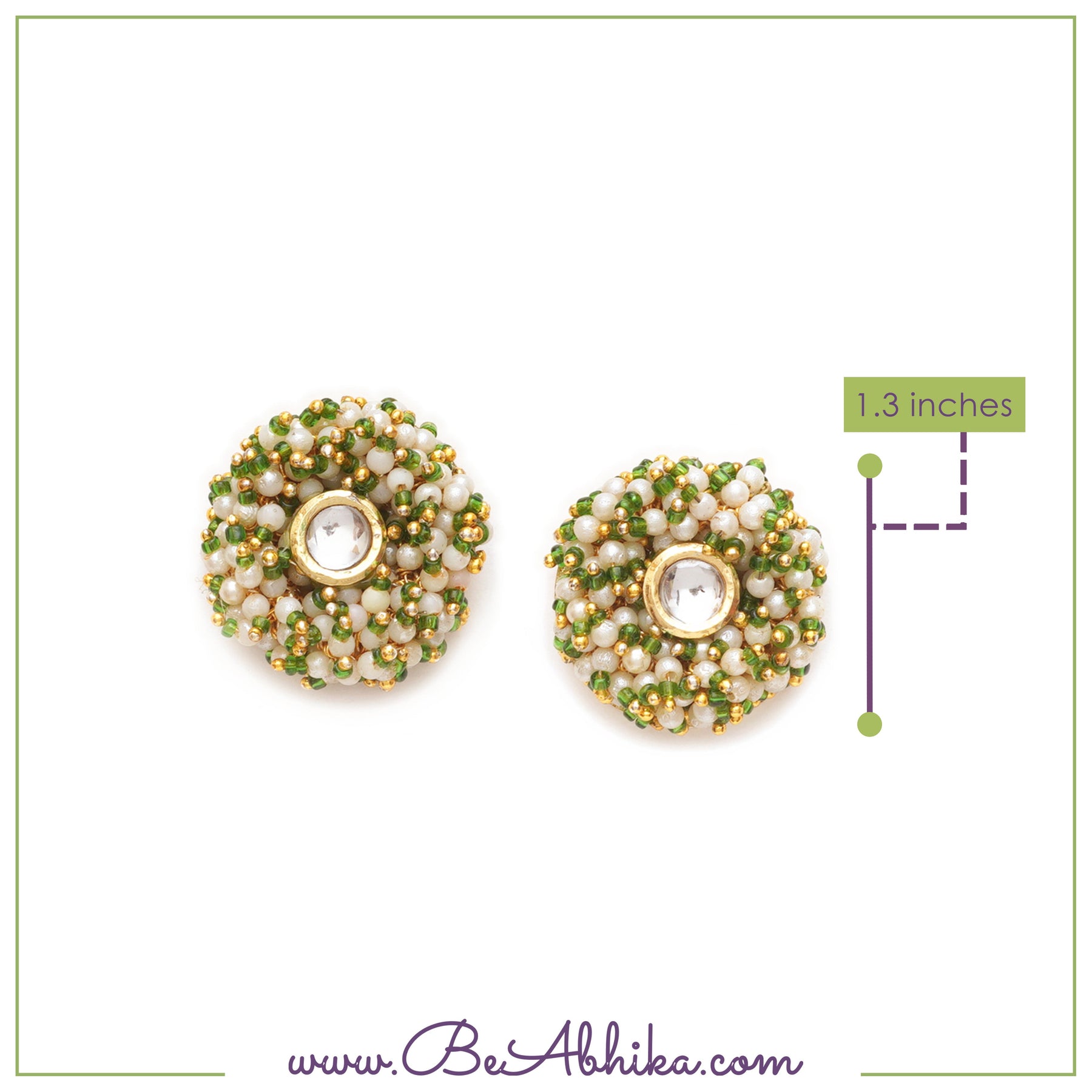 Immerse Yourself In The Beauty Of These Captivating Garden Of Pearl Kundan Studs. Featuring A Stunning Combination Of Lustrous White Pearls And Mesmerizing Green Gemstones, These Earrings Exude A Timeless Elegance That Will Surely Turn Heads. The Intricate Kundan Work Adds A Touch Of Sophistication, Making Them Perfect For Any Special Occasion.