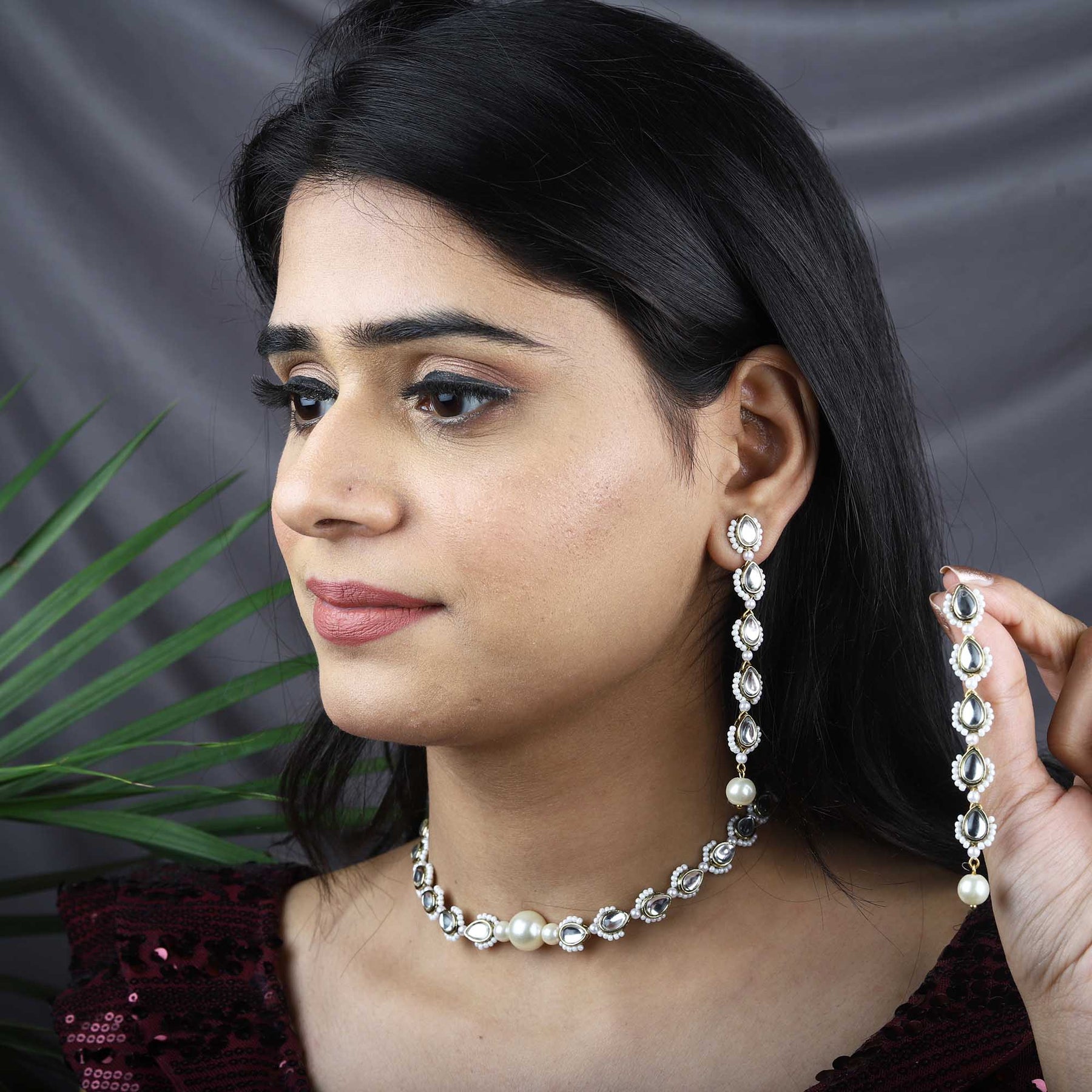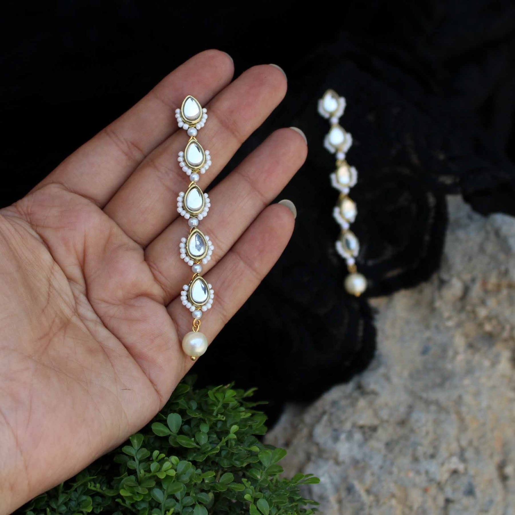 Elevate Your Accessory Game With The Serendipity Kundan Single Line Pear And Pearl Dangle Earrings. These Earrings Are The Perfect Blend Of Timeless Elegance And Contemporary Design. The Delicate And Modern Kundan Stones Make A Subtle Yet Powerful Statement, While The Single Line Dangle Design Adds A Touch Of Sophistication To Any Outfit. These Earrings Are Perfect For Any Occasion, Whether It'S A Formal Event Or A Casual Day Out. Add A Touch Of Fine Jewelry To Your Collection With The Serendipity Kundan Single Line Dangle Earrings.