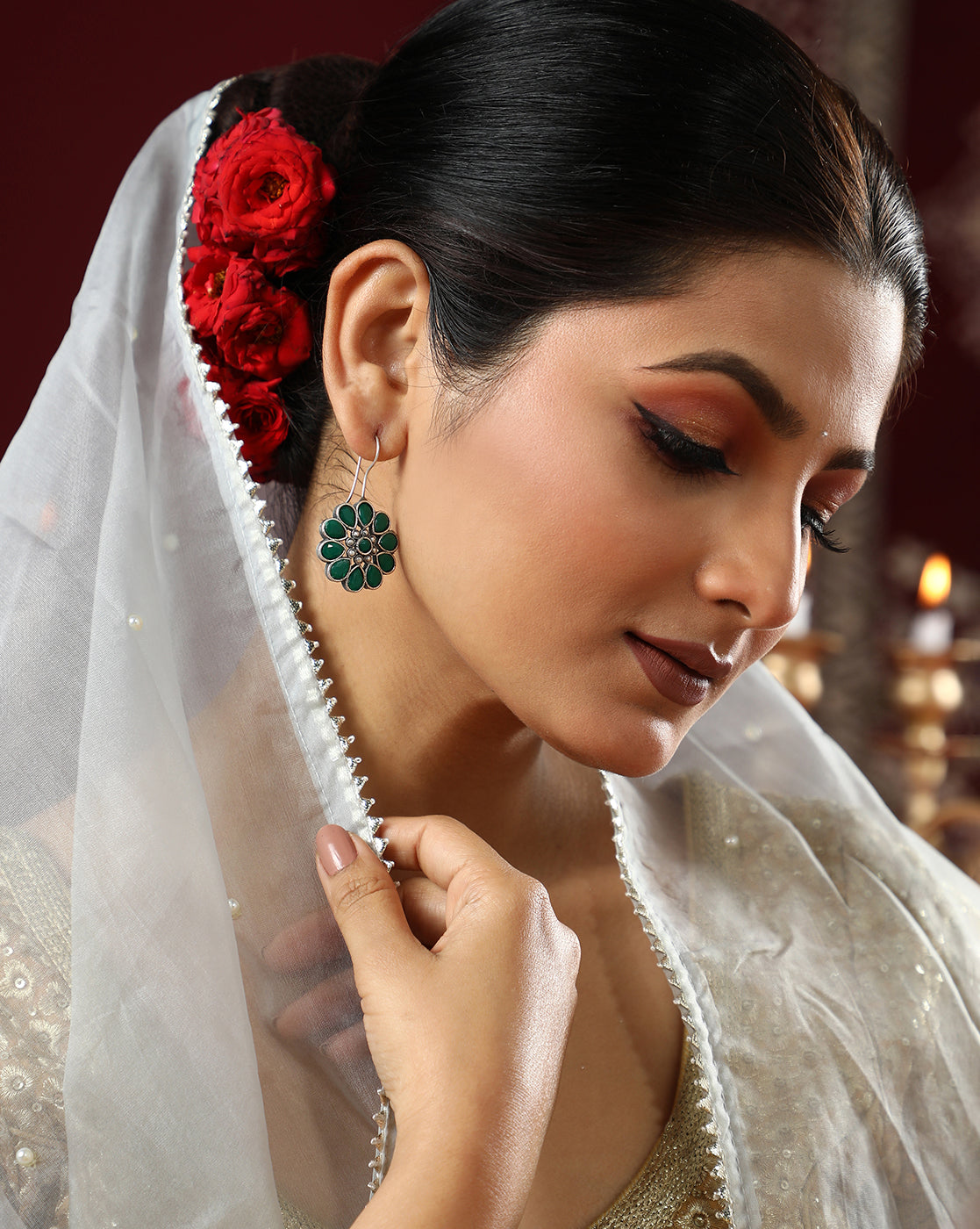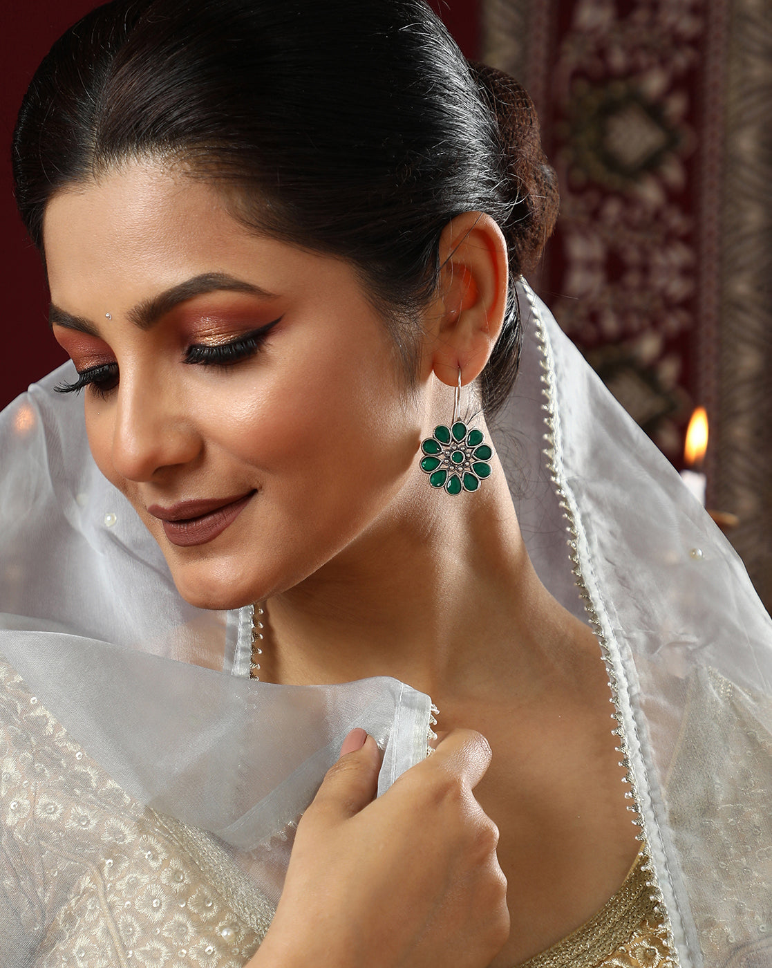Women's Emerald Green Plated Earrings - Sohi