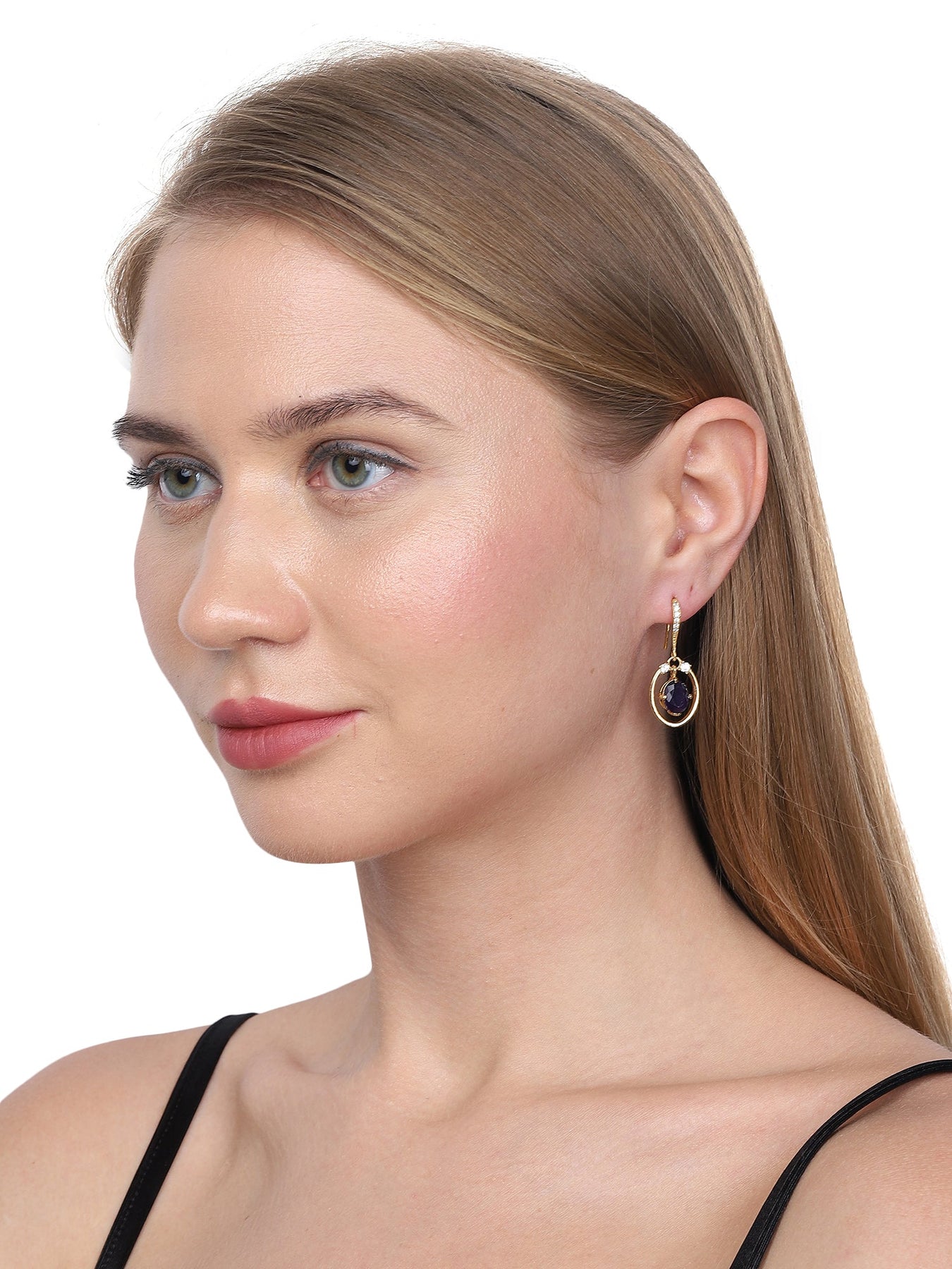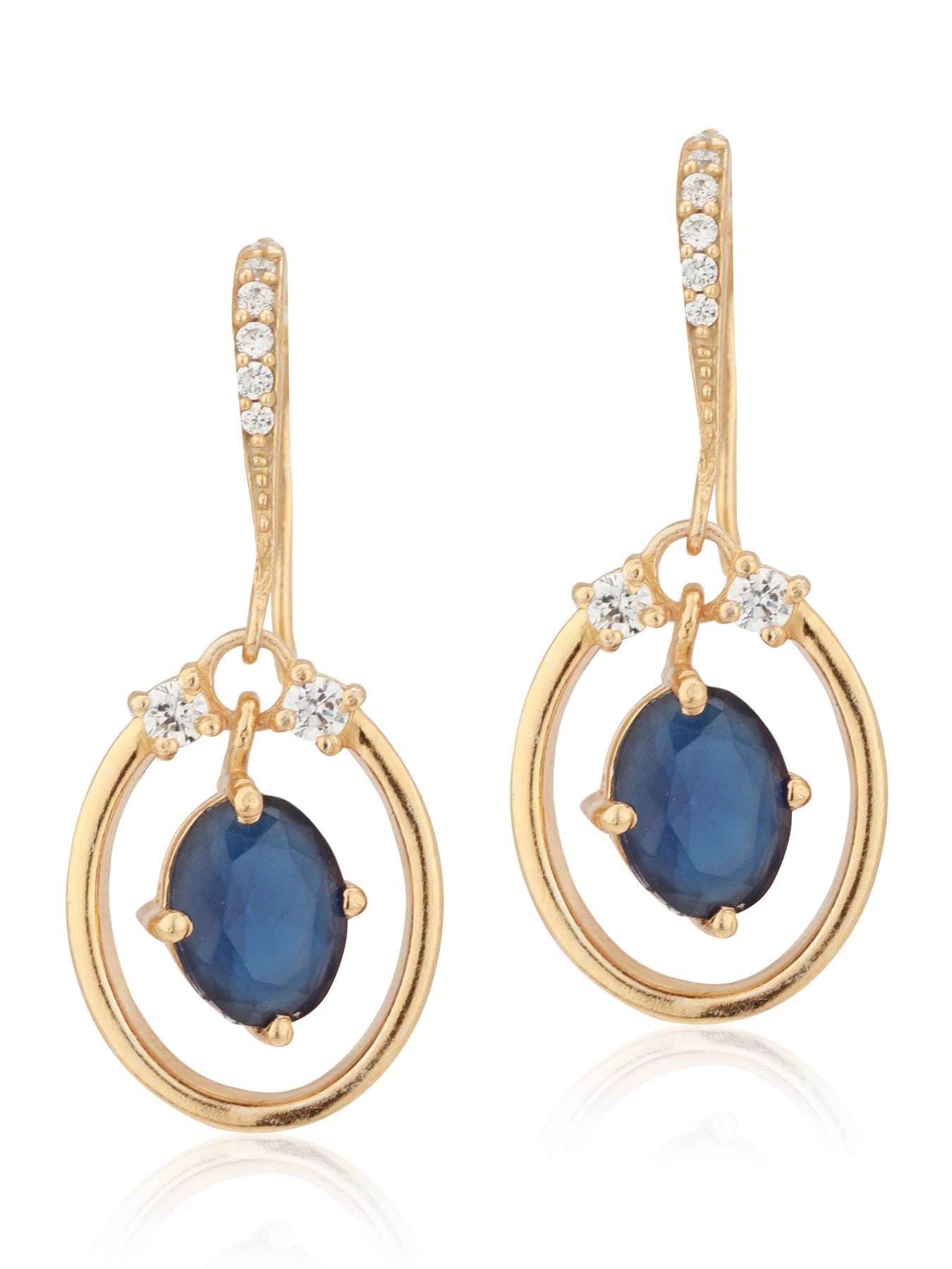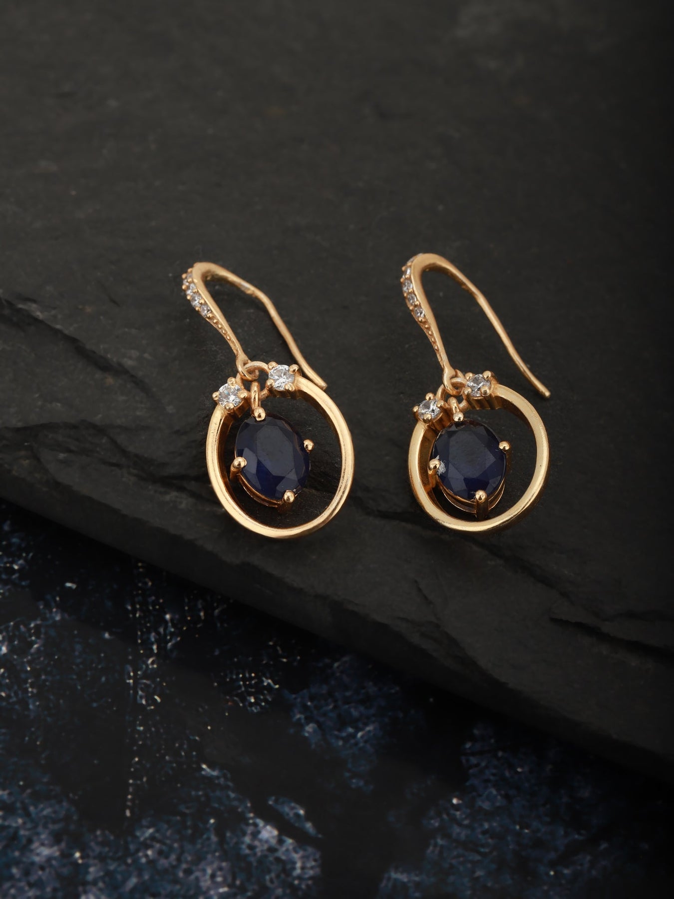 Navy Blue gold plated oval drop earrings, and has artificial stones