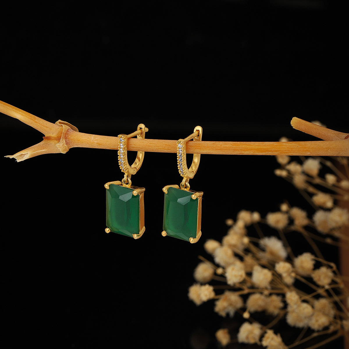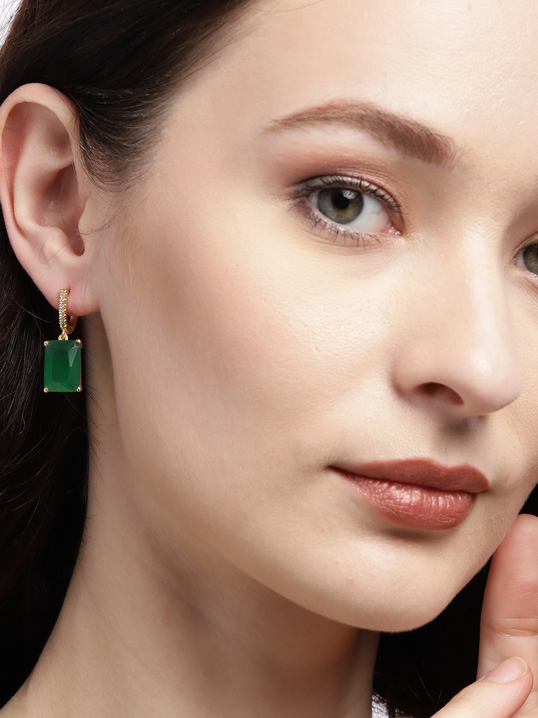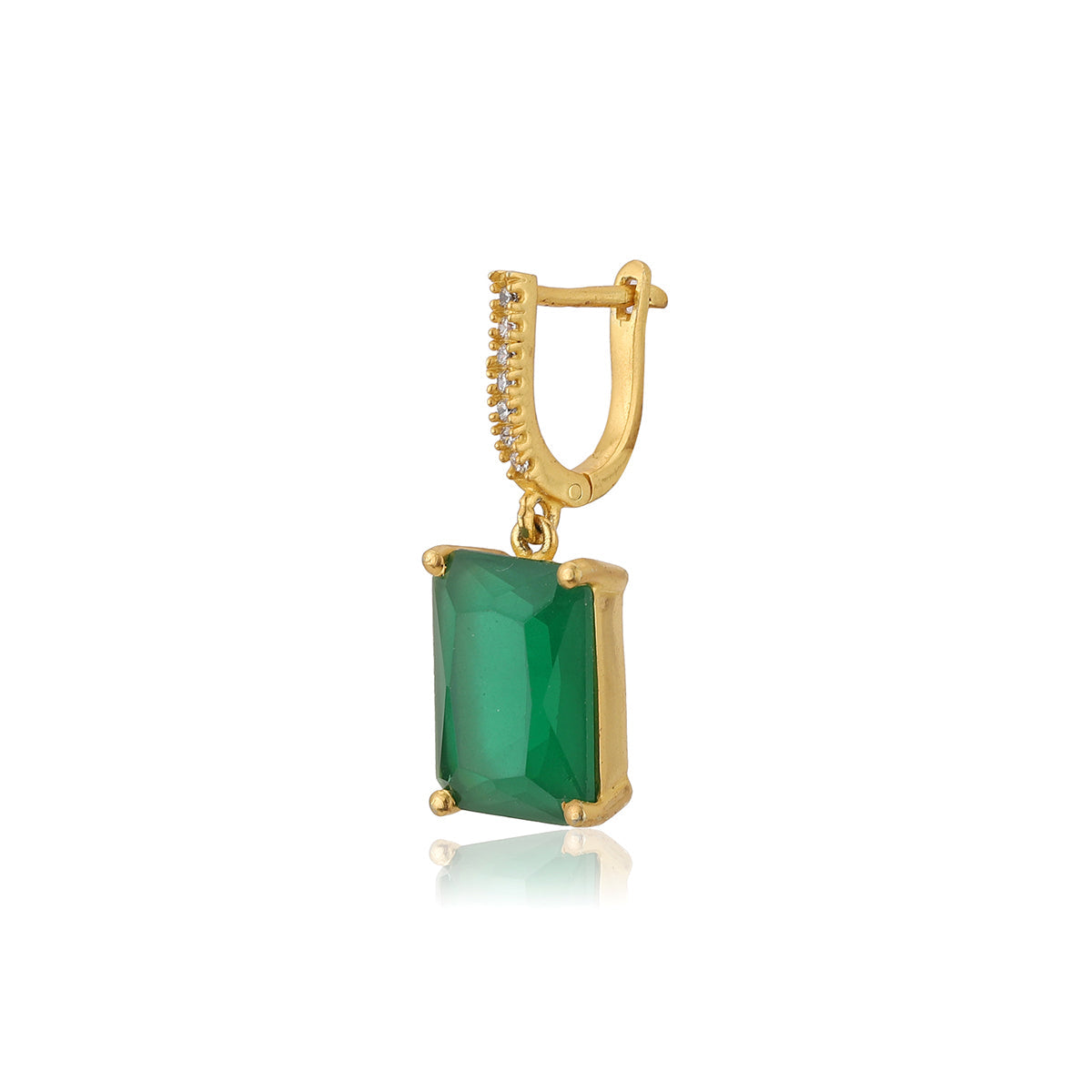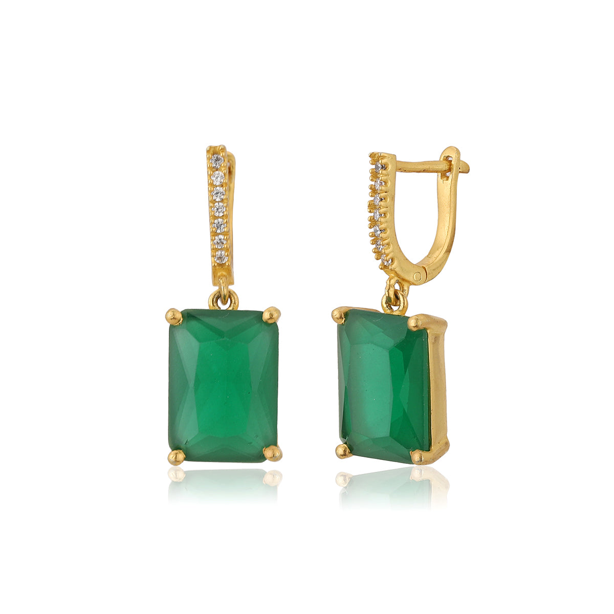 Green gold-plated cubic zirconia studded geometric drop earrings
