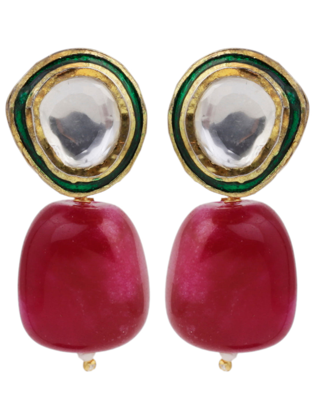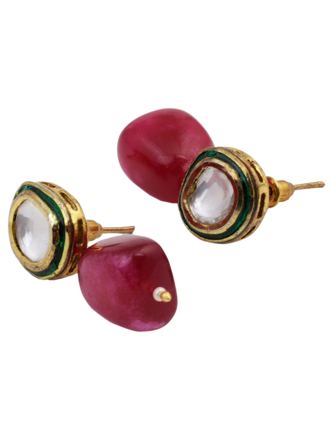 Red & Dangler Earring With Kundan &; Category Of Jewellery Is Earring; Sub Category Is Drop; Ideal For Women; Base Color Is Red; Gemstones Used - Kundan; Plating Is Gold-Plated; Base Metal Is Alloy; Other Material Used - ; Size Is Freesize; Adjustable - No; Weight Is 16 Gms; Mesaurements - Length Of Earring= 3 Cm; Width Of Earring =1 Cm ; Content