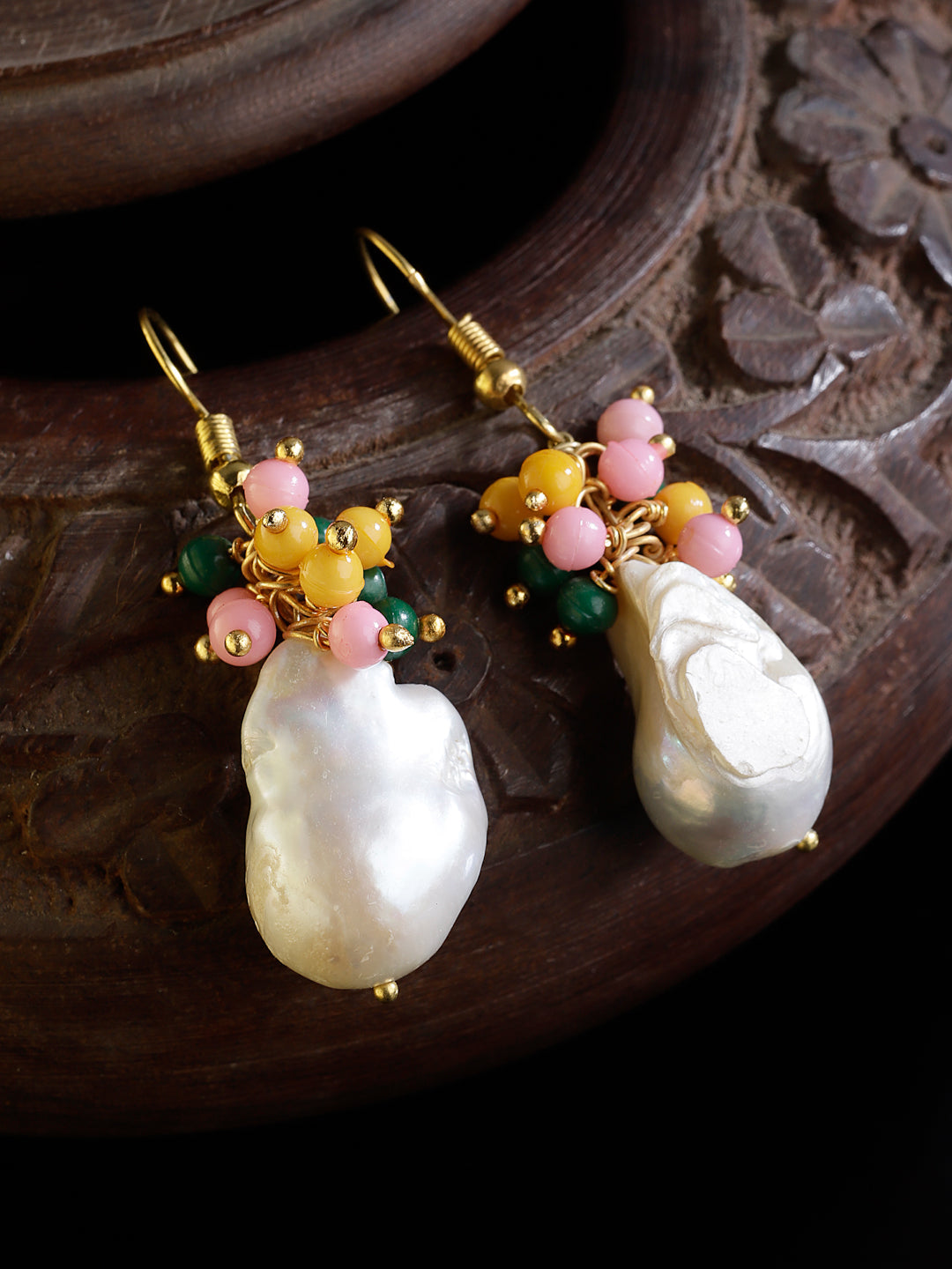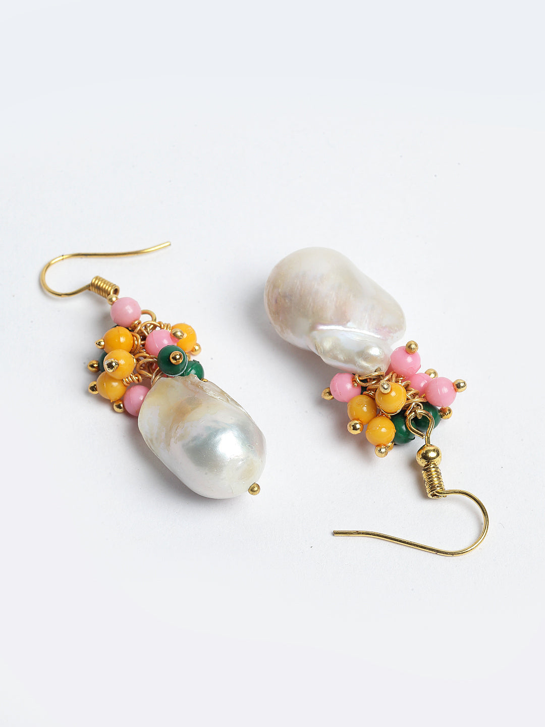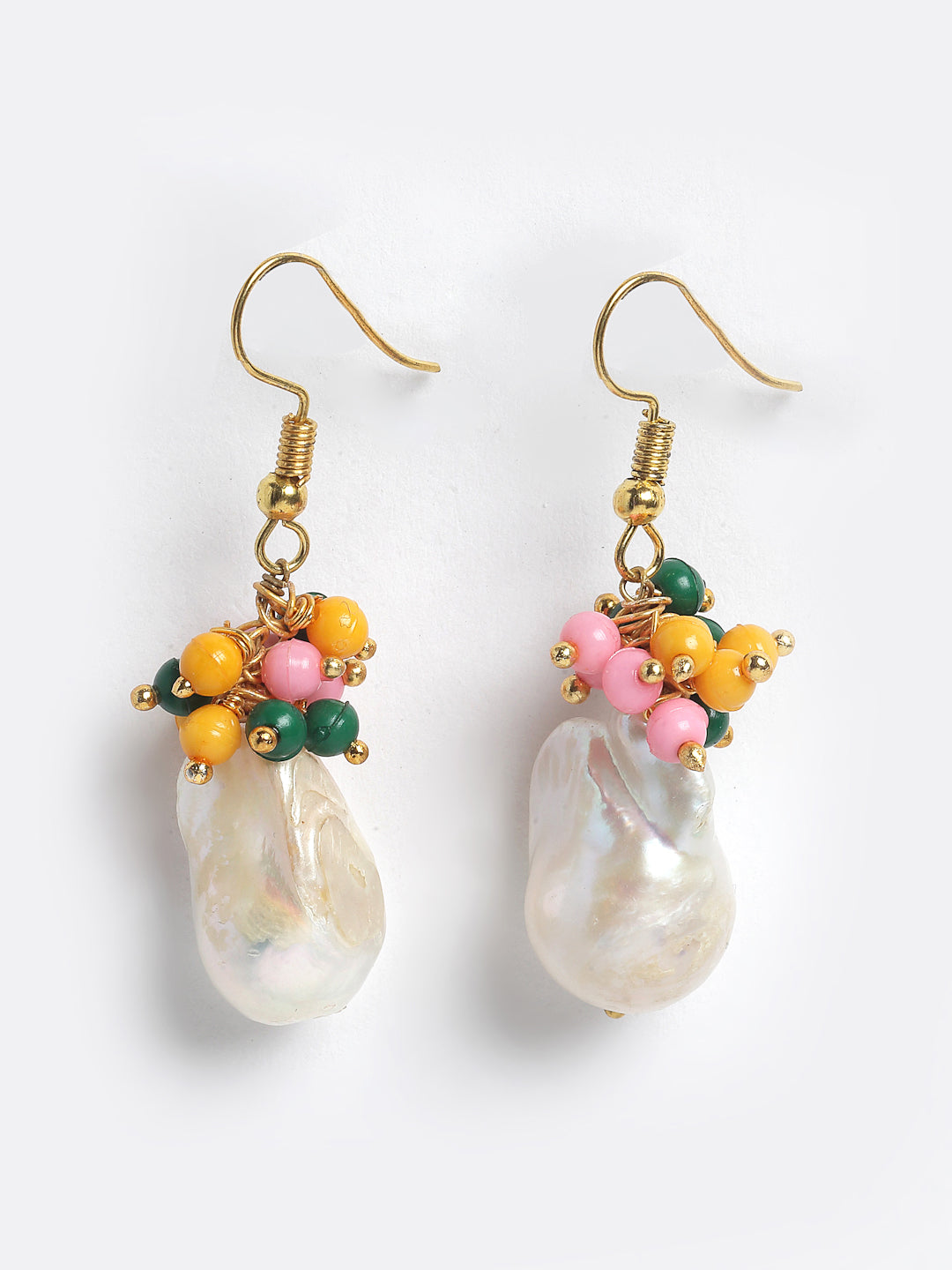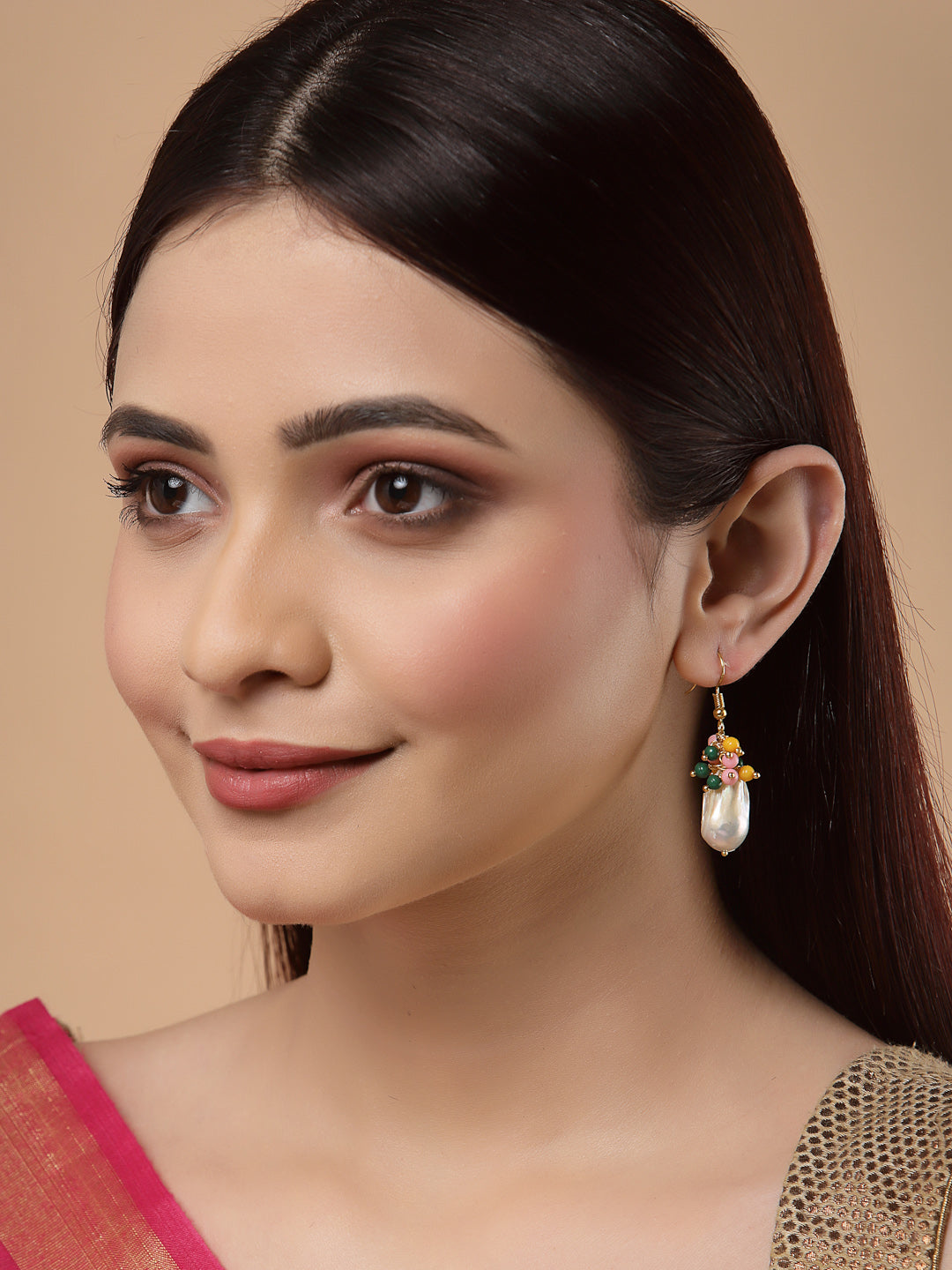 Real Baroque Paerl Earring Along With Colors Of Season Is What Makes It Super Light And Classy Office Wear Style Of All Girls.; Category Of Jewellery Is Earring; Sub Category Is Drop; Ideal For Women; Color Is Pink, Yellow, Green, White, Gold; Gemstones Used - Pearls, Natural Stones; Plating Is Gold-Plated; Base Metal Is Alloy; Other Material Used - None; Size Is Freesize; Adjustable - No; Weight Is 10 Gms; Mesaurements - Length Of Earring= 4 Cm; Width Of Earring =1 Cm; Adjustable - No; Content 1 Pair Earring