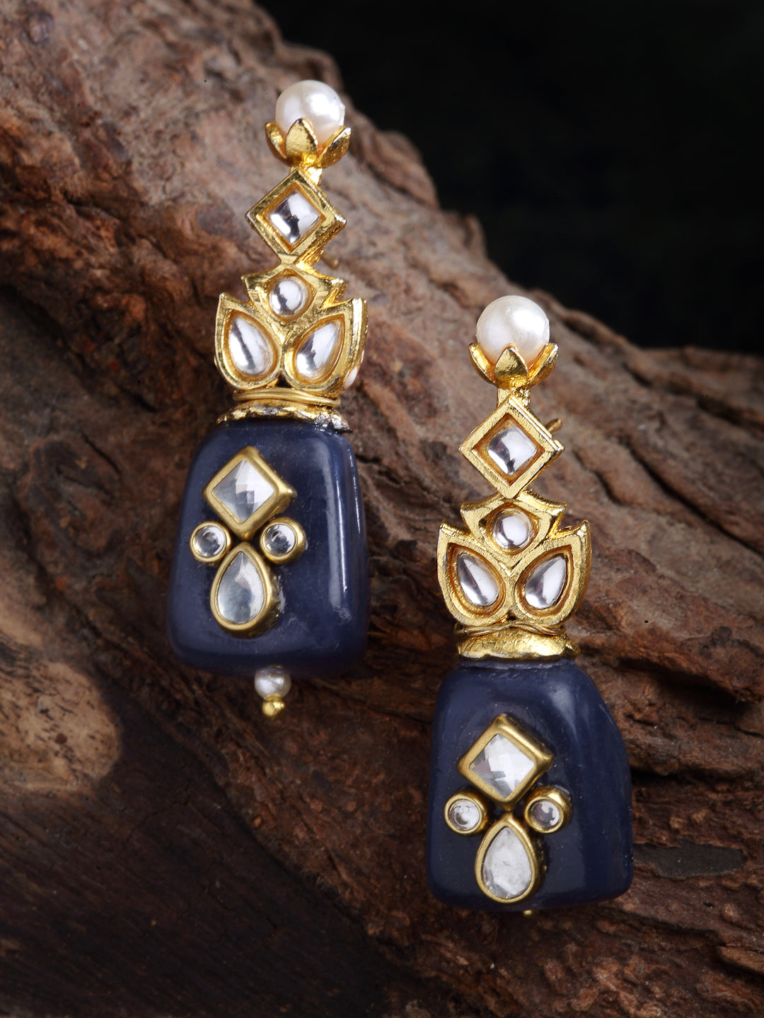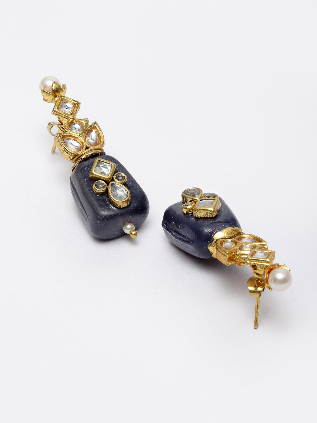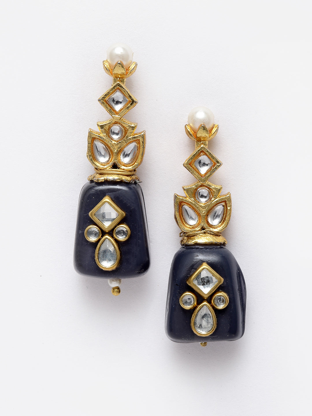 Handcrafted Obsidian Drop Earring Kundan Earring Amalgamation Of Various Different Kundan Tikda To Give U Classy And Elegant Look; Category Of Jewellery Is Earring; Sub Category Is Drop; Ideal For Women; Color Is Black, Gold, White; Gemstones Used - Kundan, Pearls, Natural Stones; Plating Is Gold-Plated; Base Metal Is Alloy; Other Material Used - Closure Stopper; Size Is Freesize; Adjustable - No; Weight Is 15 Gms; Mesaurements - Length Of Earring= 5.3 Cm; Width Of Earring =1.9 Cm; Adjustable - No; Content 1 Pair Earring