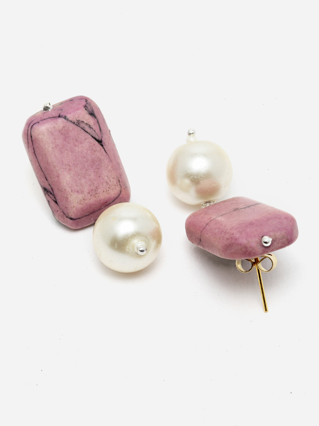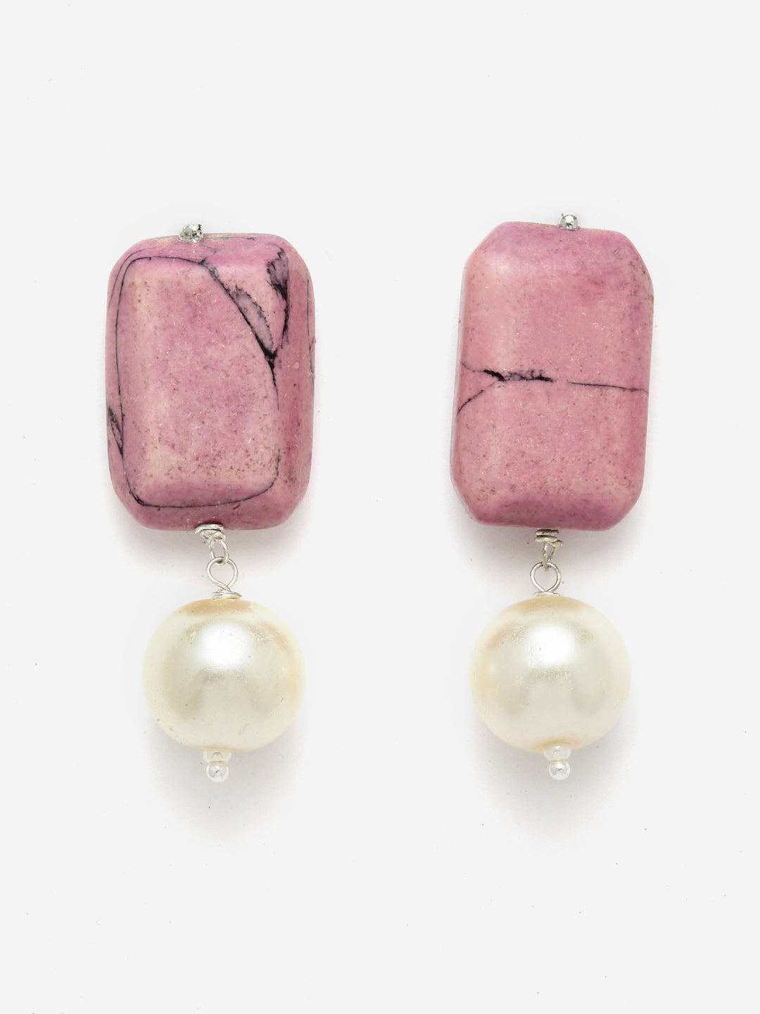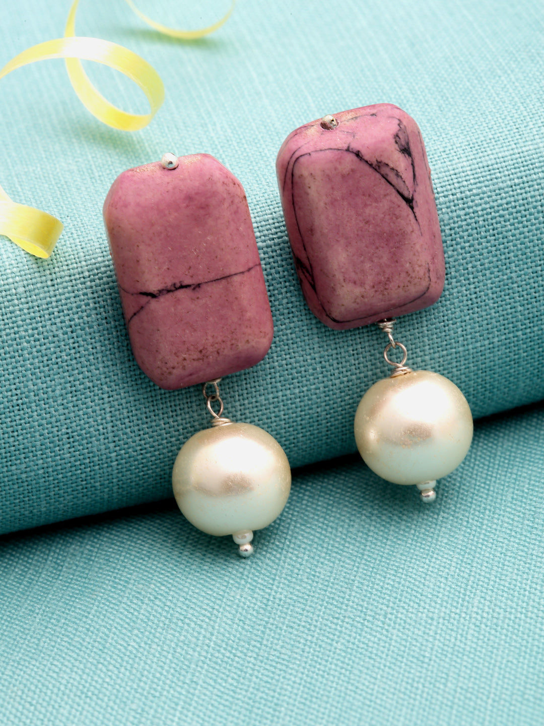 Square Ceramic Light Pink (Purplish) Side Stone Highligted With Pearl Is What Makes This Earring Super Light And Office Wear Jewellery.; Category Of Jewellery Is Earring; Sub Category Is Drop; Ideal For Women; Color Is Pink, Black, Gold, White; Gemstones Used - Pearls, Natural Stones; Plating Is Gold-Plated; Base Metal Is Alloy; Other Material Used - Closure Stopper And Kanchain; Size Is Freesize; Adjustable - No; Weight Is 11 Gms; Mesaurements - Length Of Earring= 4 Cm; Width Of Earring =2 Cm; Adjustable - No; Content 1 Pair Earring