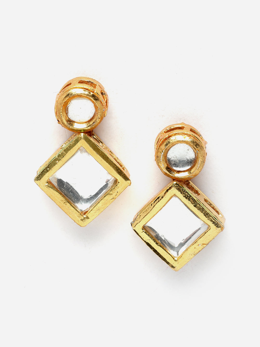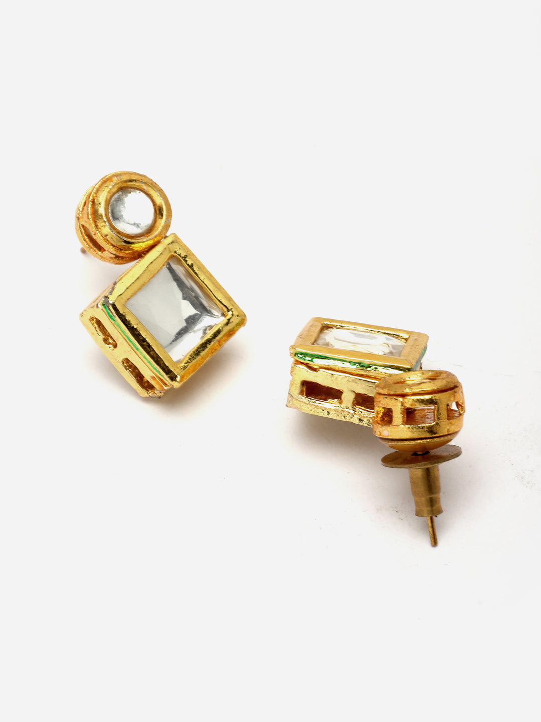 Simple Stud Earring; Category Of Jewellery Is Earring; Sub Category Is Drop; Ideal For Women; Color Is Gold, White; Gemstones Used - Kundan, Natural Stones; Plating Is Gold-Plated; Base Metal Is Alloy; Other Material Used - Closure Stopper; Size Is Freesize; Adjustable - No; Weight Is 8 Gms; Mesaurements - Length Of Earring= 3 Cm; Width Of Earring =1 Cm; Adjustable - No; Content 1 Pair Earring