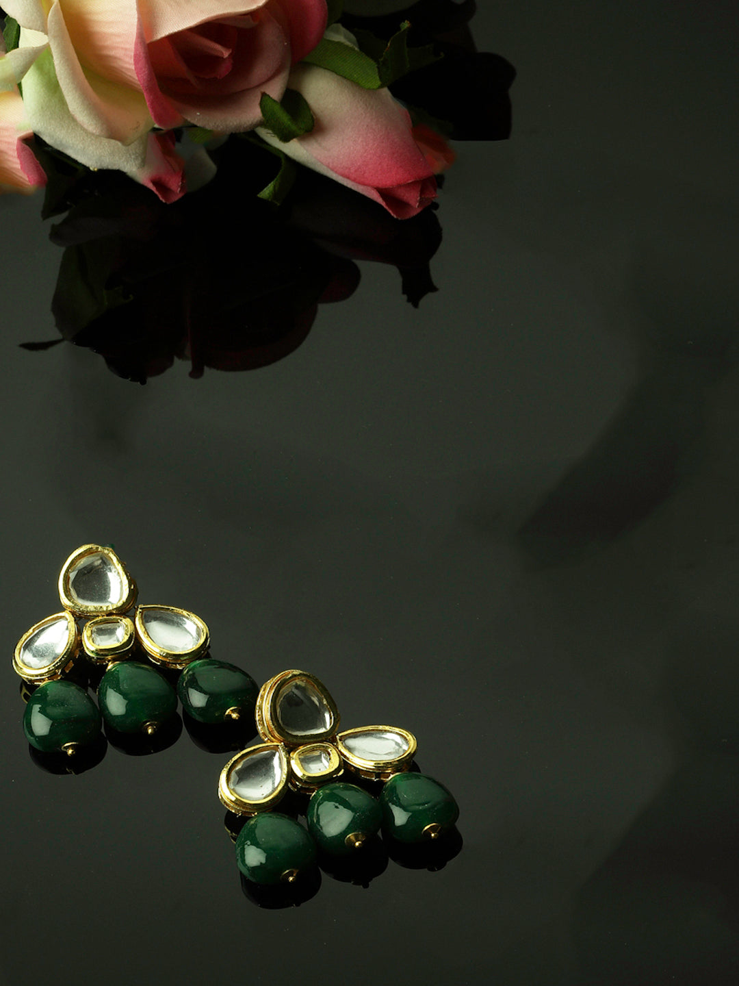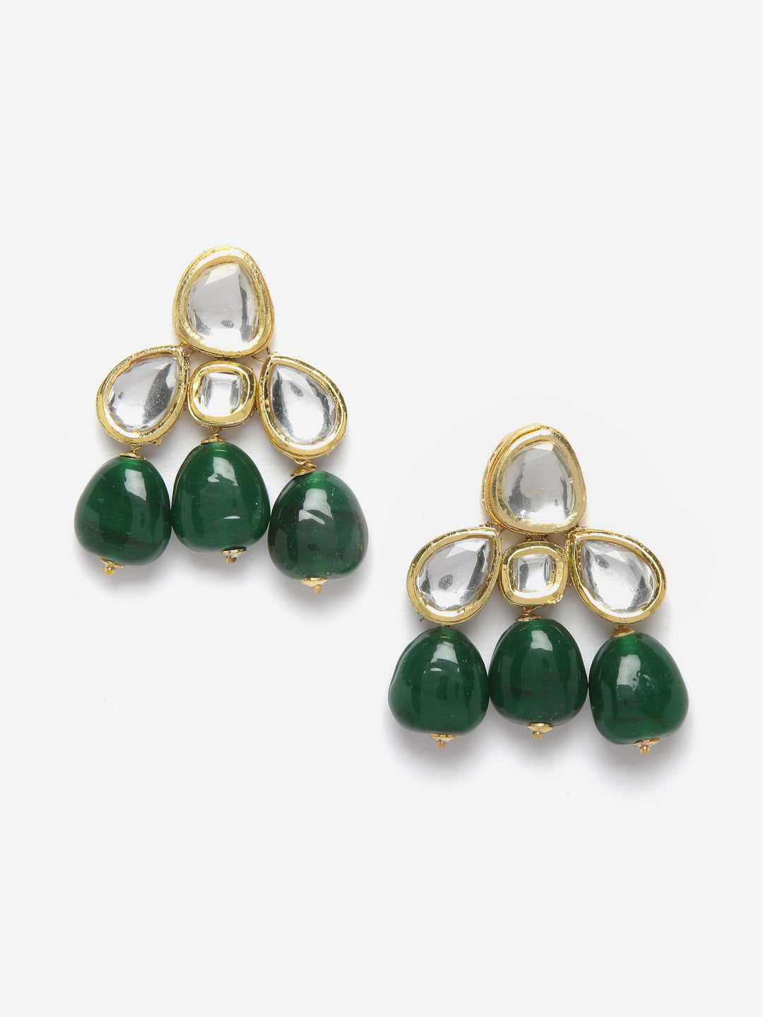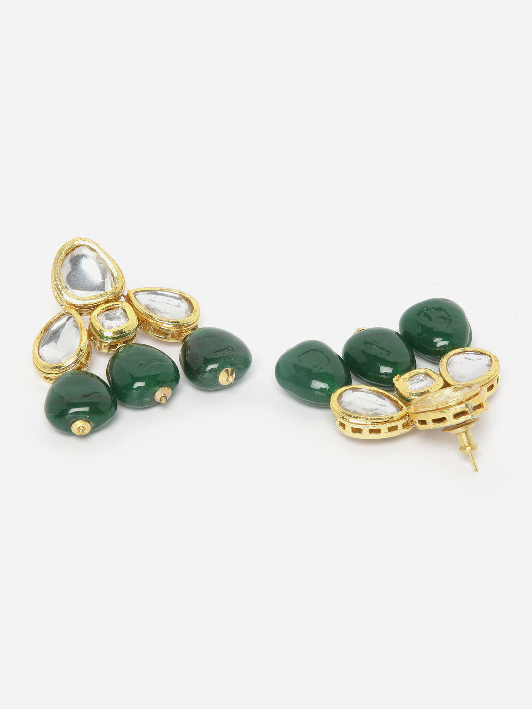 Kundan Earing With Emerld Stone; Category Of Jewellery Is Earring; Sub Category Is Drop; Ideal For Women; Color Is Green, Gold, White, Cream; Gemstones Used - Kundan, Pearls, Natural Stones, Faux Emerald; Plating Is Gold-Plated; Base Metal Is Alloy; Other Material Used - Closure Stopper; Size Is Freesize; Adjustable - No; Weight Is 30 Gms; Mesaurements - Length Of Earring= 5.2 Cm; Width Of Earring =4.2 Cm; Adjustable - No; Content 1 Pair Earring