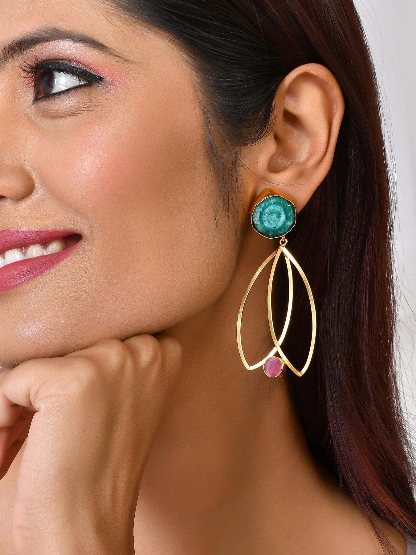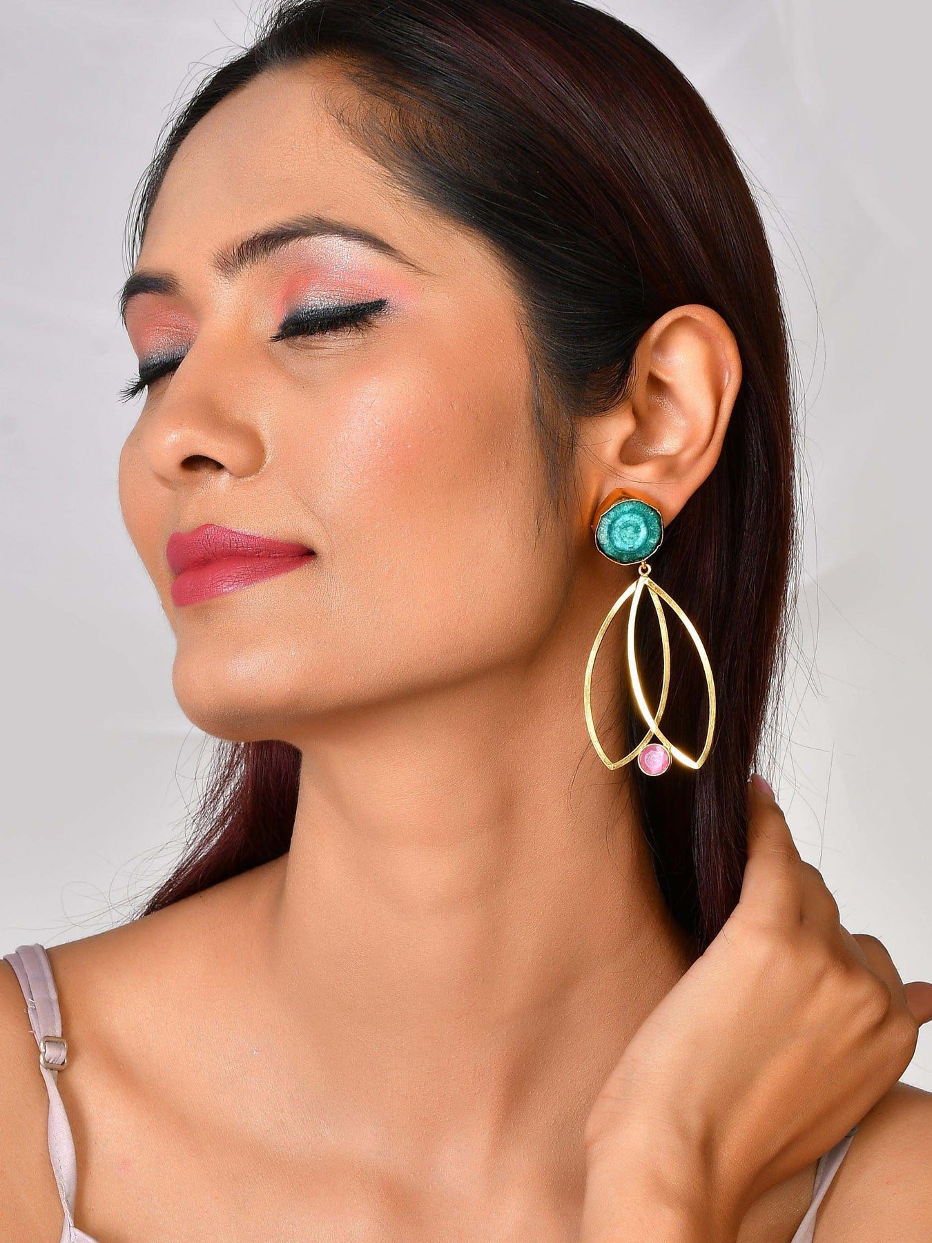 Double Petel Hanging Earring Color :Gold Material :Brass Closure :Hoop Care Instructions :Keep Away From Moisture Weight :0.5G