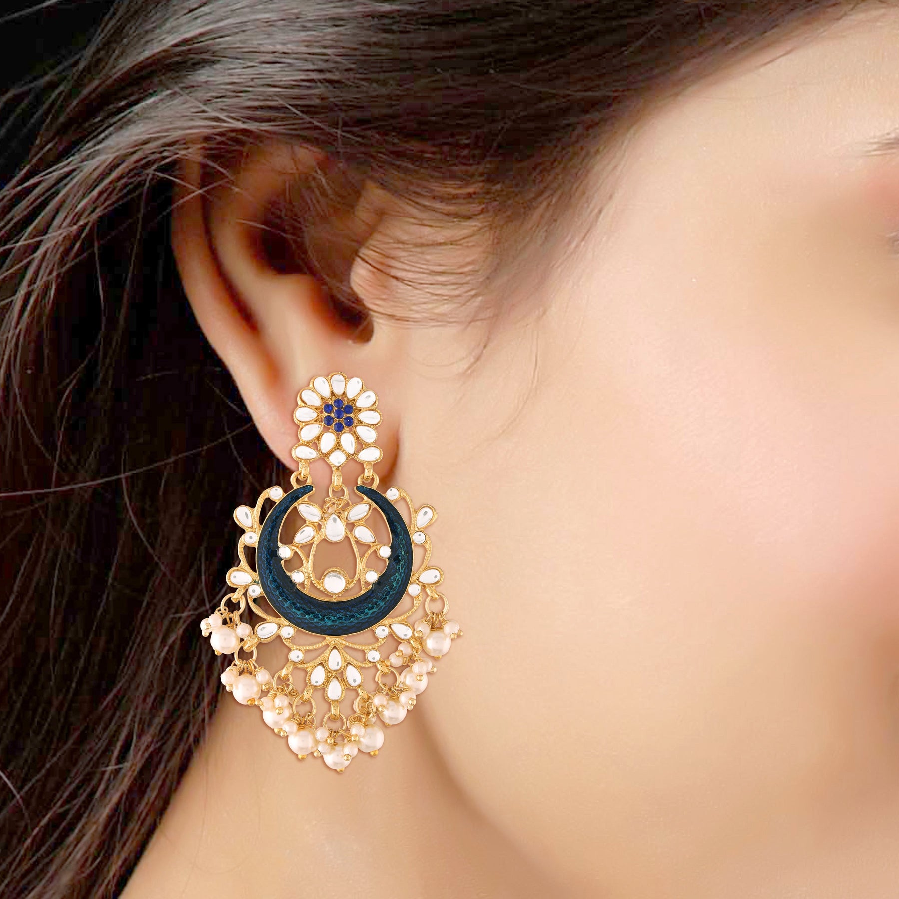 This Earring Set Is Crafted In Gold Plated Finish With Meenakari Work- These Earrings Are Really Special .The Earrings Feature Kundan & Pearl Studded. Be Stylish And Smart With These Golden Earring Perfectly Crafted. Wear It With A Suit Or A Saree, And Lehenga For An Ethnic Yet Classy Look. This Earring Set Is A Great Option And A Perfect Pick For Your Wedding Functions. Be Assured To Find A Variety Of Contemporary And Traditional Designs In The Mesmerizing Collection That We Offer