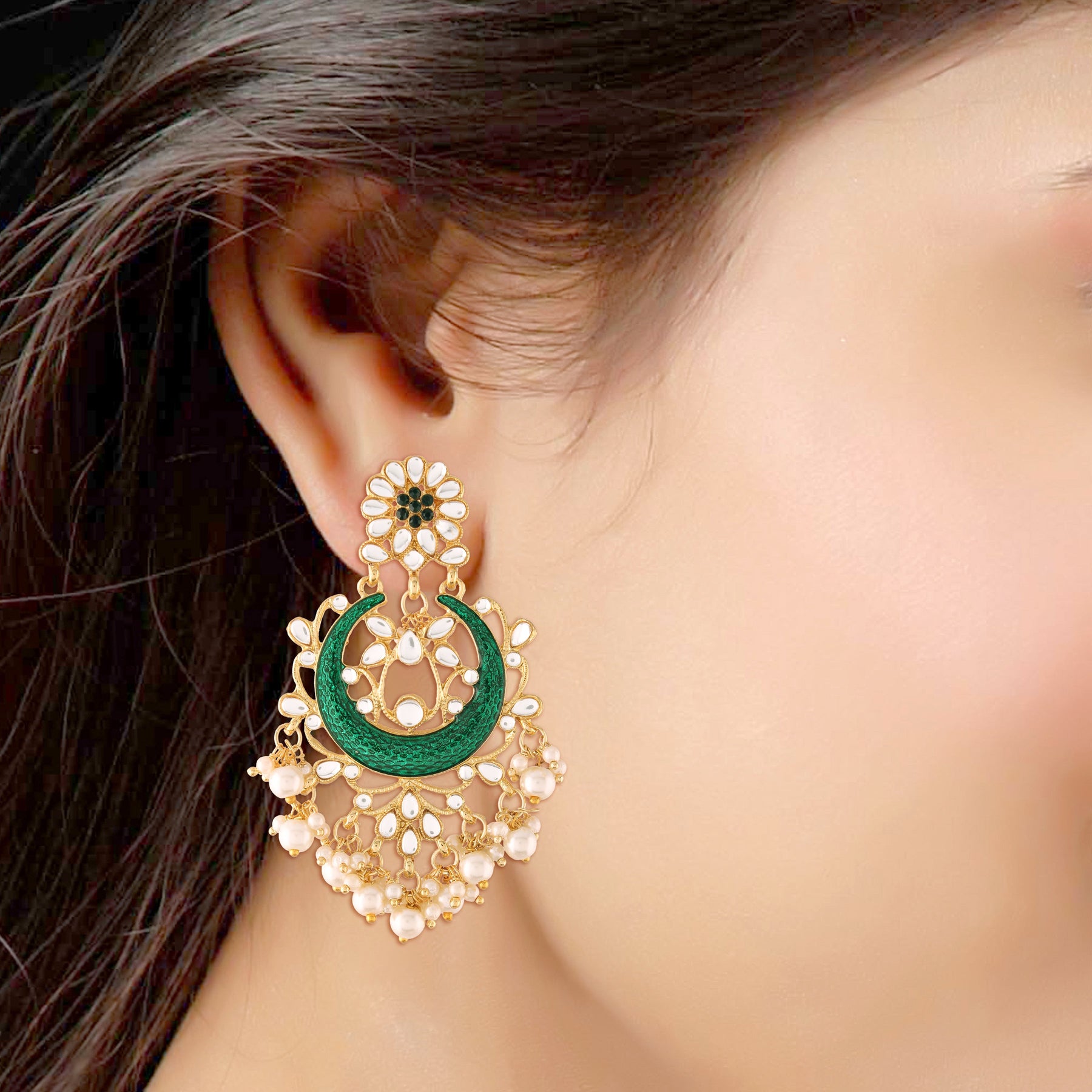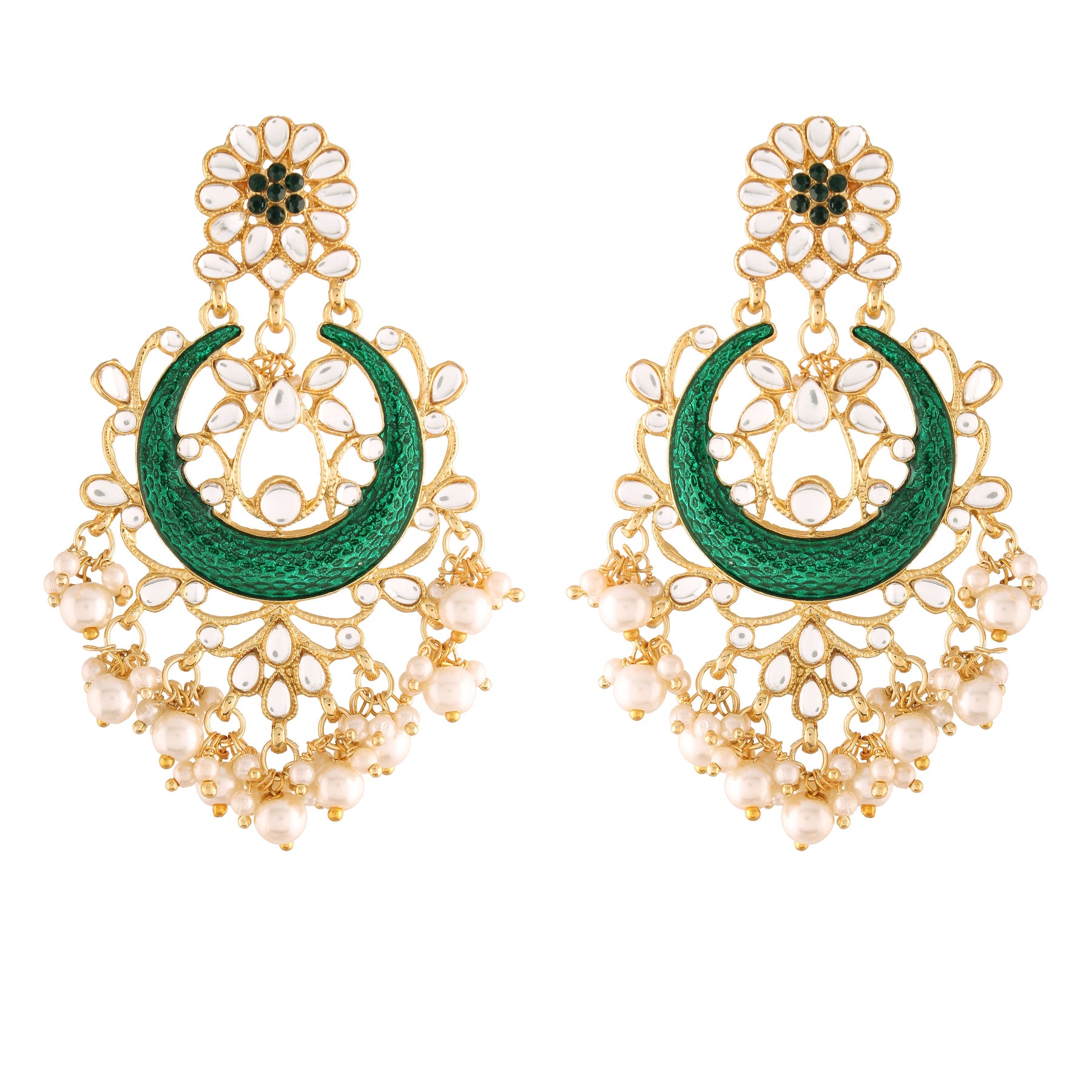 This Earring Set Is Crafted In Gold Plated Finish With Meenakari Work- These Earrings Are Really Special .The Earrings Feature Kundan & Pearl Studded. Be Stylish And Smart With These Golden Earring Perfectly Crafted. Wear It With A Suit Or A Saree, And Lehenga For An Ethnic Yet Classy Look. This Earring Set Is A Great Option And A Perfect Pick For Your Wedding Functions. Be Assured To Find A Variety Of Contemporary And Traditional Designs In The Mesmerizing Collection That We Offer