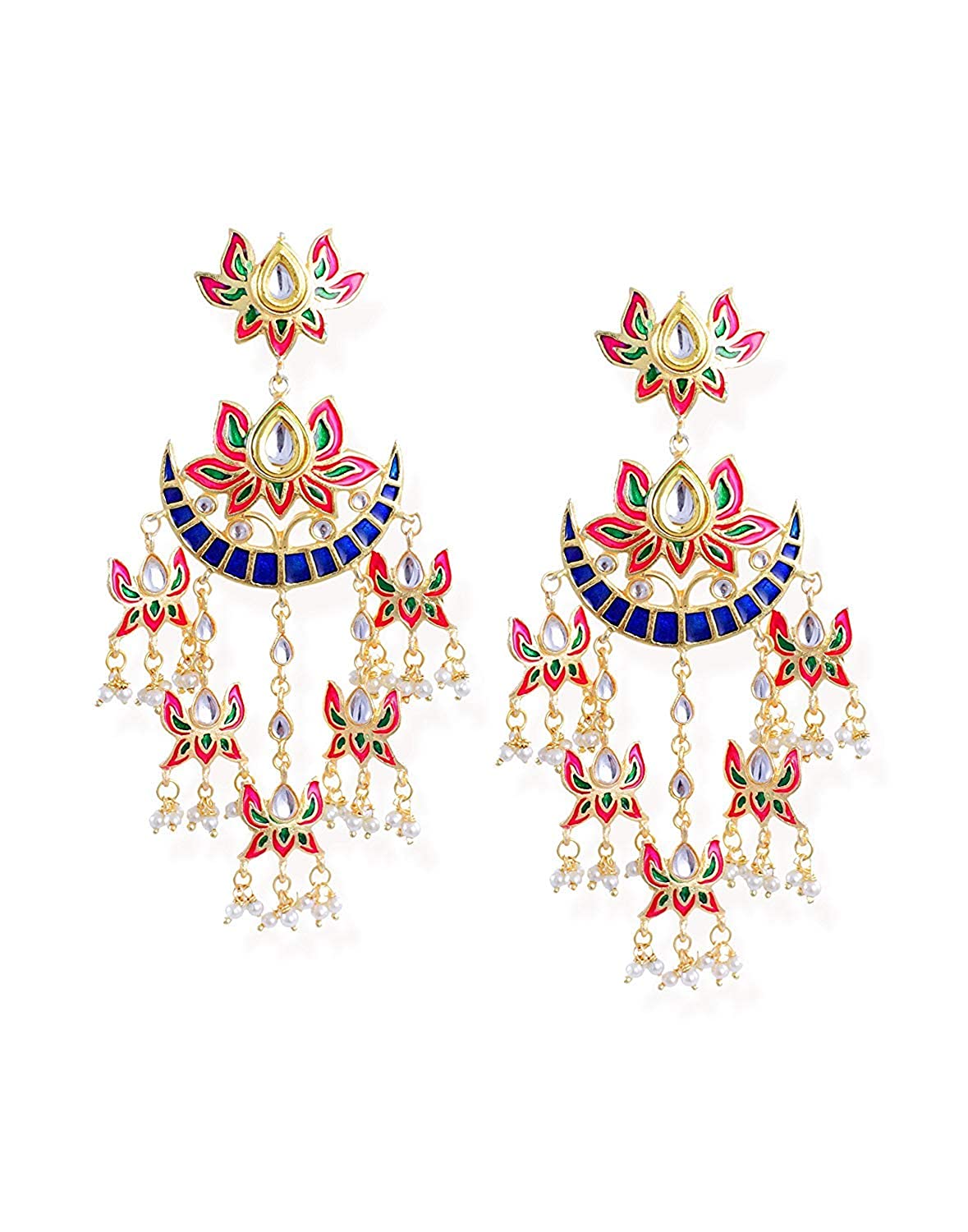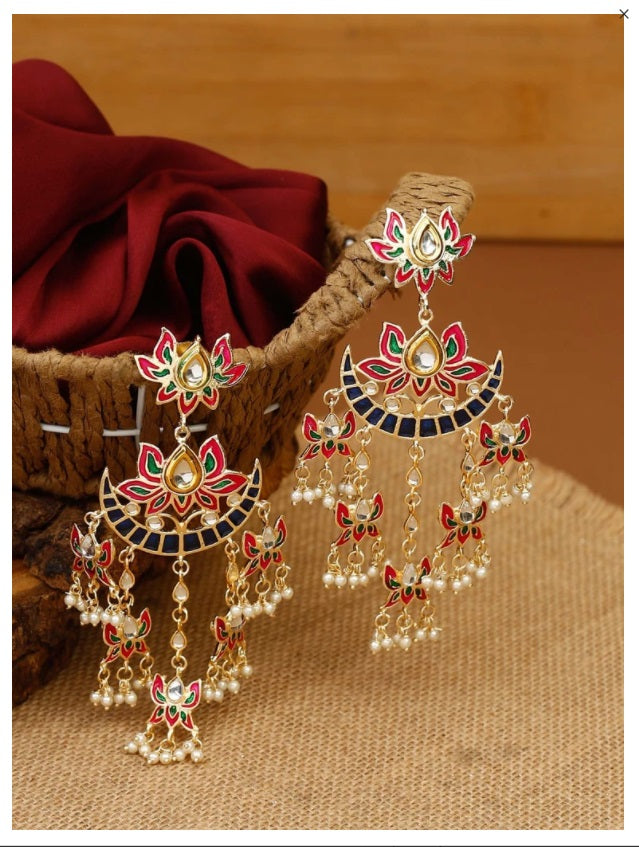 The Enamel Jhumka Earrings Are A Must-Have For Anyone Looking To Add A Touch Of Unique And Colorful Style To Their Jewelry Collection. The Earrings Are Lightweight And Comfortable, Making Them Perfect For All-Day Wear. The Enamel Detailing On The Earrings Is A Standout Feature, With Its Bold And Vibrant Colors Adding A Pop Of Interest To The Design. This Makes The Earrings Versatile And Suitable For Pairing With A Range Of Outfits, Whether You Want To Dress Up A Casual Look Or Add Some Bohemian Chic To Your Style. The High-Quality Materials Used In The Construction Of These Earrings Ensure Their Durability And Longevity, Making Them A Practical And Long-Lasting Addition To Any Jewelry Collection. The Enamel Detailing Is Also Crafted With Precision And Care, Ensuring That It Will Not Fade Or Wear Off Easily. Whether You'Re Attending A Special Occasion Or Just Want To Add Some Flair To Your Everyday Style, These Enamel Jhumka Earrings Are A Perfect Choice. They Make A Great Gift For Anyone Who Appreciates Unique And Beautiful Jewelry, And Their Versatility And Durability Ensure That They Will Be Treasured For Years To Come.