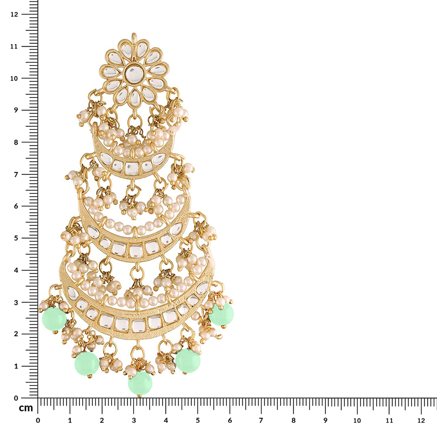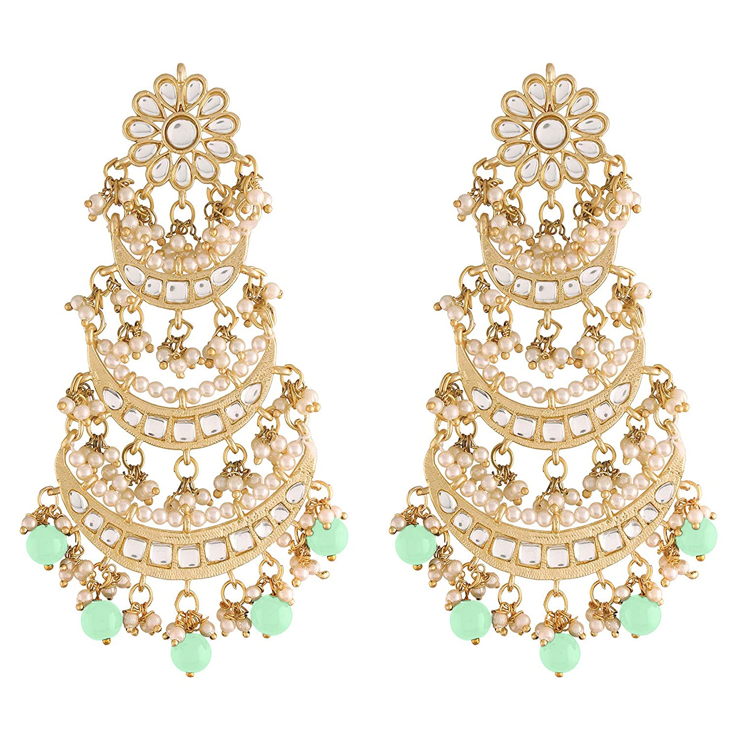 The 18K Gold Plated 3 Layered Beaded Chandbali Earrings With Kundan And Pearl Work For Women Are A Beautiful And Elegant Pair Of Earrings That Are Designed To Add A Touch Of Glamour And Sophistication To Any Outfit. The Earrings Are Made From High-Quality Materials, Including 18K Gold Plating, Kundan Stones, And Pearls. The 3 Layered Design Of The Earrings Gives Them A Luxurious And Ornate Look, While The Chandbali Style Adds A Traditional Indian Touch To The Overall Design. The Kundan Stones And Pearls Are Intricately Arranged On The Earrings To Create A Stunning Floral Pattern That Adds Depth And Dimension To The Overall Design. The Use Of Different Colors And Textures Of Beads And Stones In The Earrings Further Enhances Their Beauty And Makes Them Stand Out. These Earrings Are Perfect For Special Occasions Such As Weddings, Parties, And Festivals, And Can Be Paired With A Variety Of Indian And Western Outfits. They Are Also Lightweight And Comfortable To Wear For Long Periods, Making Them Ideal For All-Day Events.