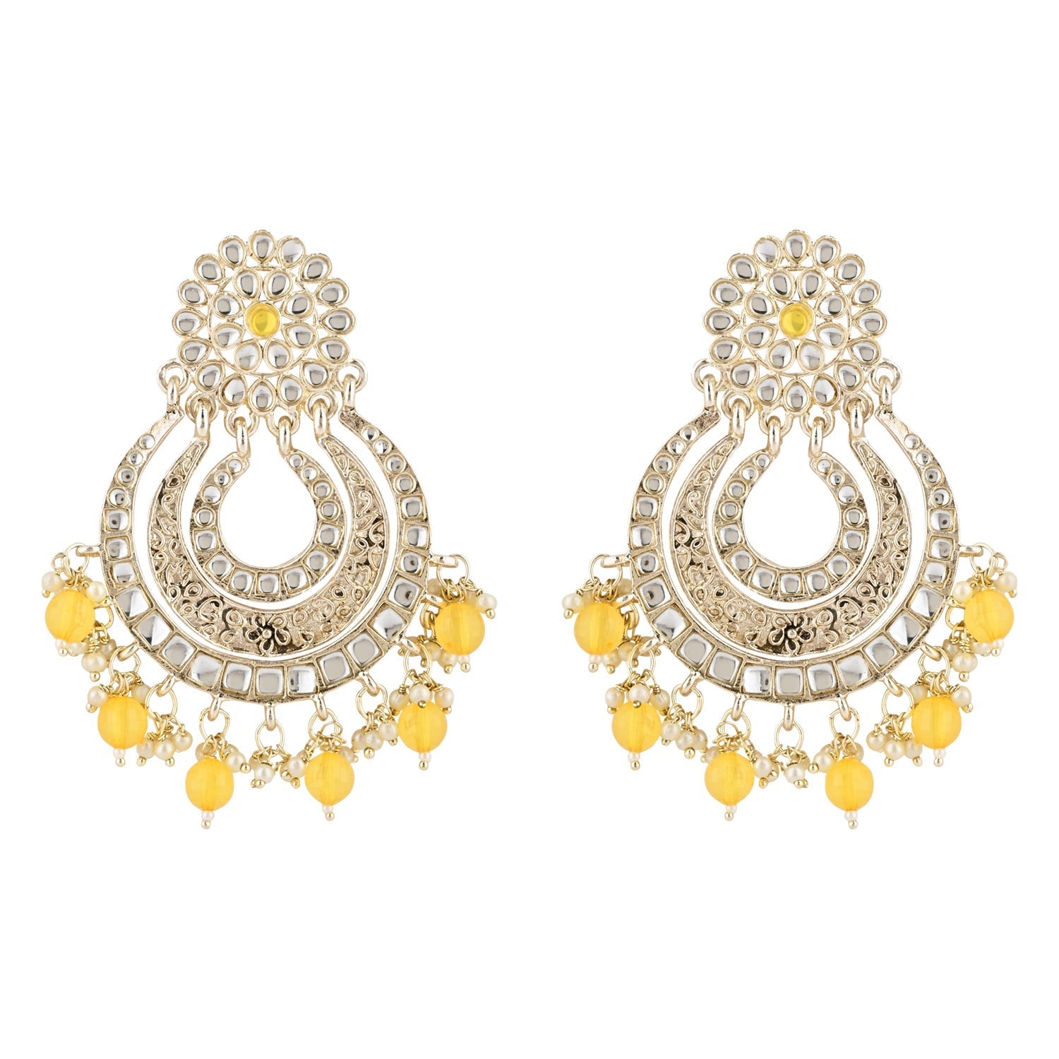 This Earring set is crafted in gold plated finish with stunning antique finish - these earrings are really special .The Earrings feature Kundan-studded. Be stylish and smart with these Golden Earring. Perfectly crafted. Wear it with a suit or a saree, and lehenga for an ethnic yet classy look. This earring set is a great option and a perfect pick for your wedding functions. Be assured to find a variety of contemporary and traditional designs in the mesmerising collection that we offer