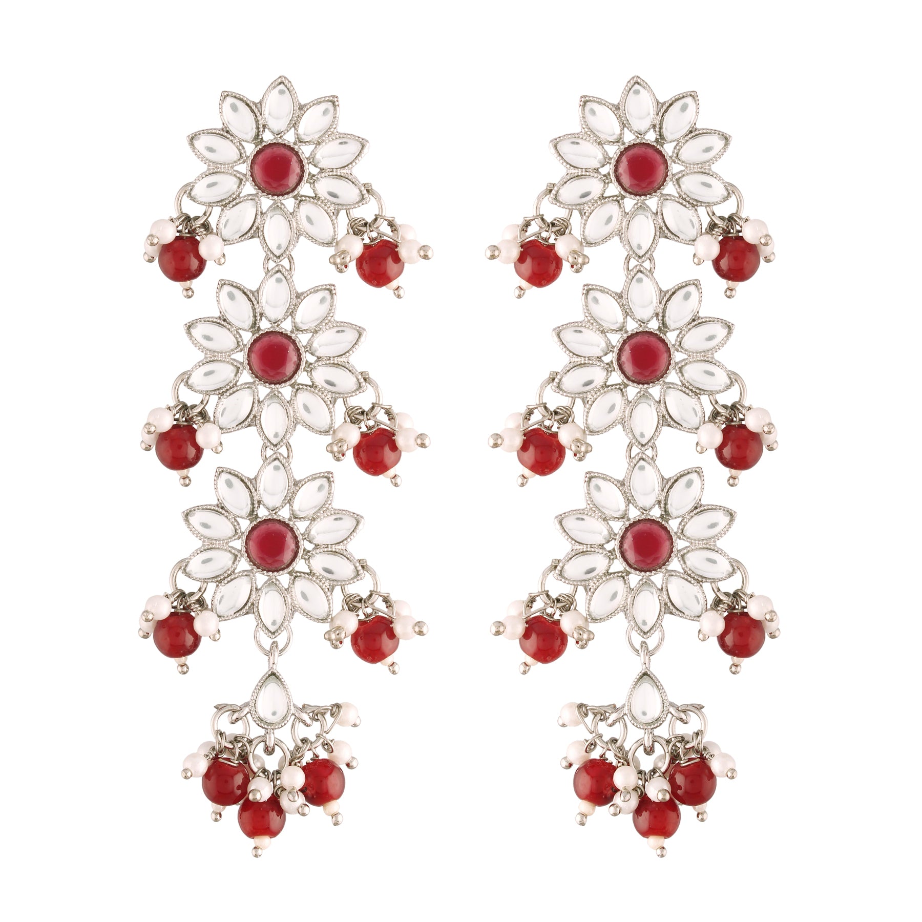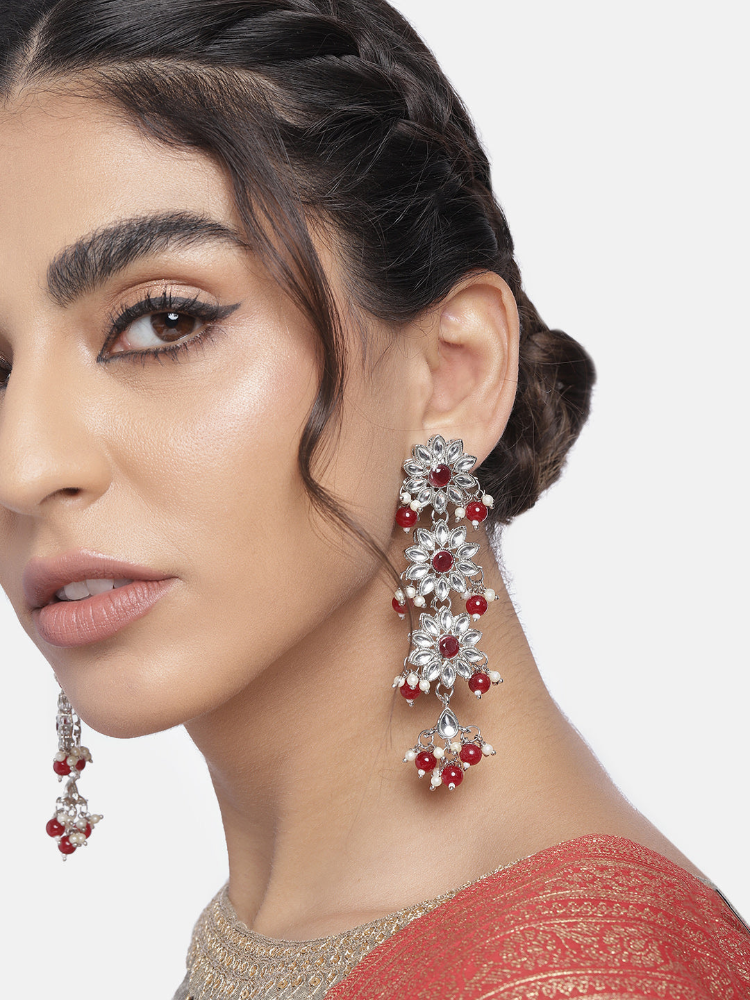 This Earring Set Is Crafted In Silver Plated Finish With Stunning Antique Finish - These Earrings Are Really Special .The Earrings Feature Kundan-Studded. Be Stylish And Smart With These Silver Earring. Perfectly Crafted. Wear It With A Suit Or A Saree, And Lehenga For An Ethnic Yet Classy Look. This Earring Set Is A Great Option And A Perfect Pick For Your Wedding Functions. Be Assured To Find A Variety Of Contemporary And Traditional Designs In The Mesmerising Collection That We Offer