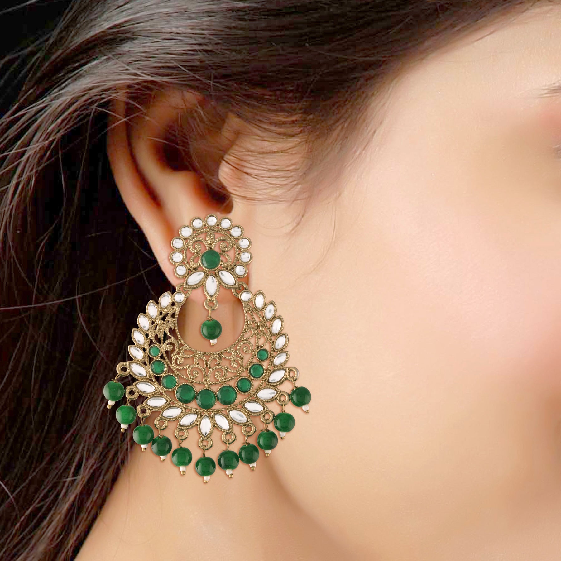 This Earring Set Is Crafted In Gold Plated Finish With Stunning Antique Finish - These Earrings Are Really Special .The Earrings Feature Kundan-Studded.Be Stylish And Smart With These Golden Earring. Perfectly Crafted. Wear It With A Suit Or A Saree, And Lehenga For An Ethnic Yet Classy Look. This Earring Set Is A Great Option And A Perfect Pick For Your Wedding Functions. Be Assured To Find A Variety Of Contemporary And Traditional Designs In The Mesmerising Collection That We Offer