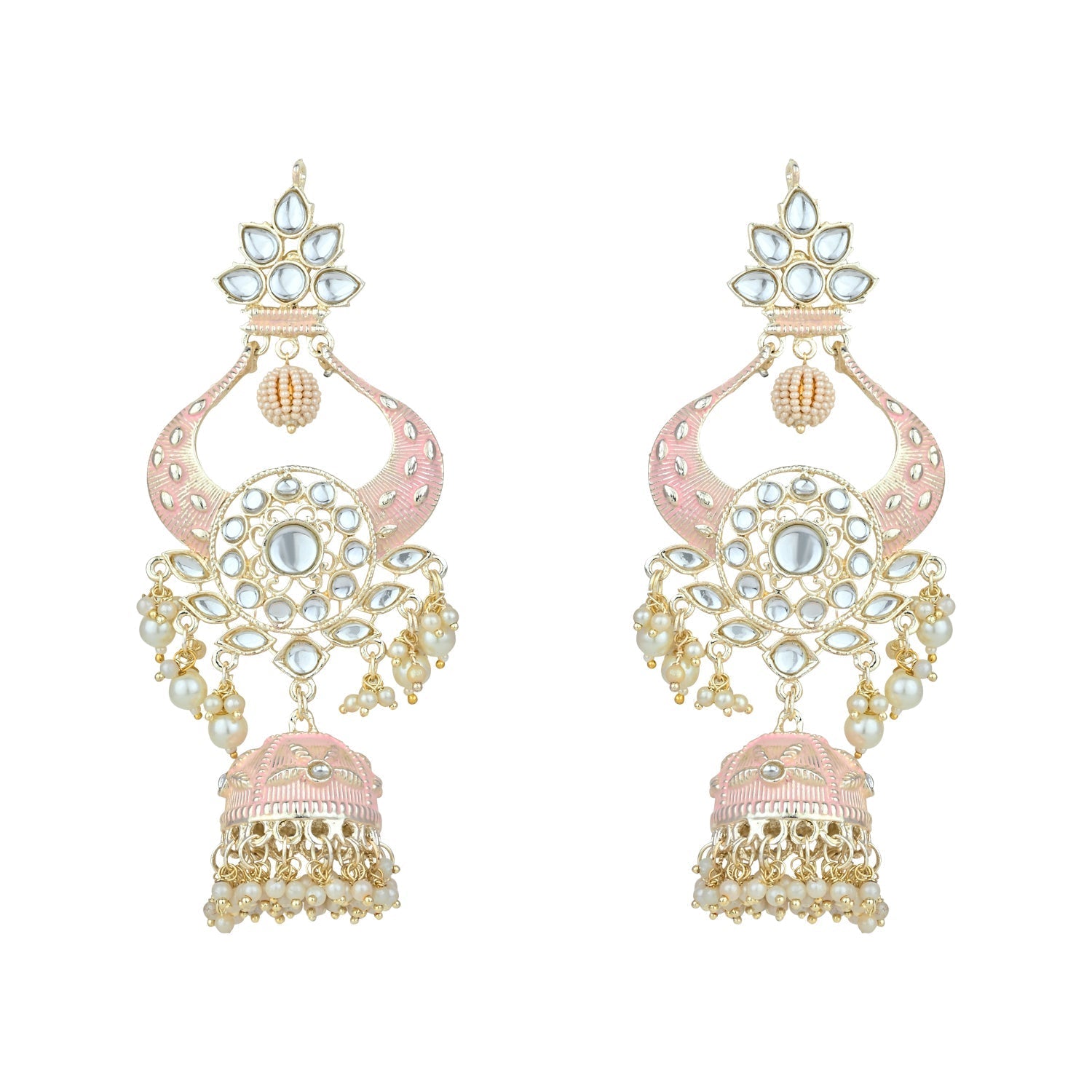 DIMENSION: Earring Height - 12 Cm x Width - 4.5 cm. Introducing our exquisite meenakari jhumka earrings, a timeless blend of elegance and tradition for the modern woman. Crafted with meticulous attention to detail, these earrings are a testament to the rich heritage of Indian jewelry. Inspired by the vibrant art of Meenakari, our artisans have skillfully hand-painted intricate enamel designs on these earrings, adding a burst of color and character to the lustrous gold-plated base. The meenakari work not only enhances the visual appeal but also preserves the age-old craftsmanship. Each Kundan is carefully selected and placed, ensuring the highest quality and radiance. To complete the regal look, delicate pearl drops gracefully dangle from the bottom of the jhumka, adding a touch of grace and femininity to your attire. The pearls symbolize purity and elegance, making these earrings a perfect choice for weddings, festivals, or any special occasion.