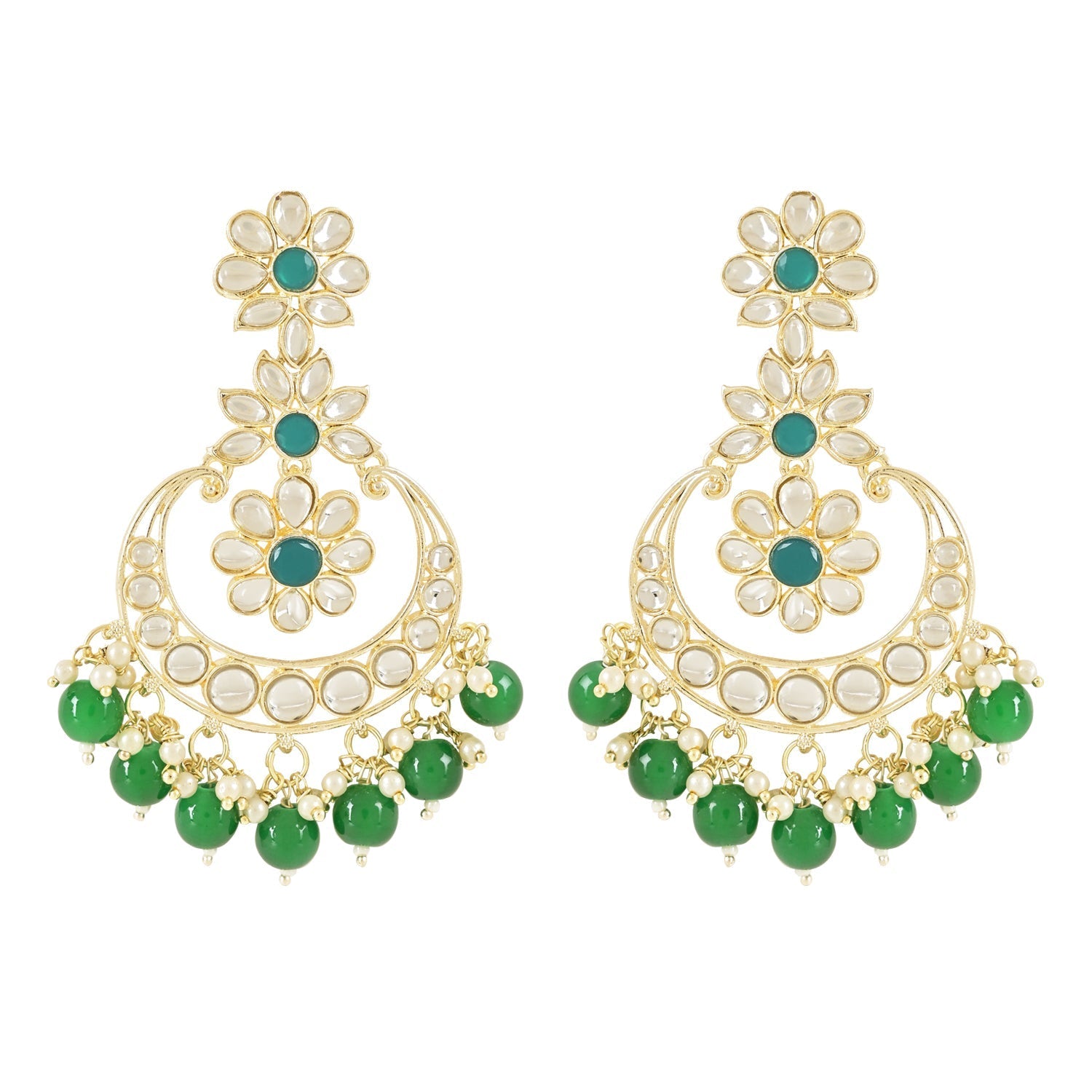 Gold Plated Traditional Handcrafted Kundan Earrings, adorned with lustrous pearls. Crafted with meticulous attention to detail, these earrings are a true testament to the beauty of traditional Indian jewelry.Each earring showcases a delicate arrangement of intricately crafted Kundan stones, known for their captivating sparkle and unmatched brilliance.The pearls effortlessly complement the rich golden tones and enhance the overall charm of the design, making them a perfect choice for women and girls who appreciate classic elegance.Whether worn on special occasions, weddings, festivals, or as an everyday accessory, these Gold Plated Traditional Handcrafted Kundan Earrings adorned with pearls are sure to make a statement.Let their timeless beauty and intricate craftsmanship captivate your senses and add a touch of opulence to your ensemble.