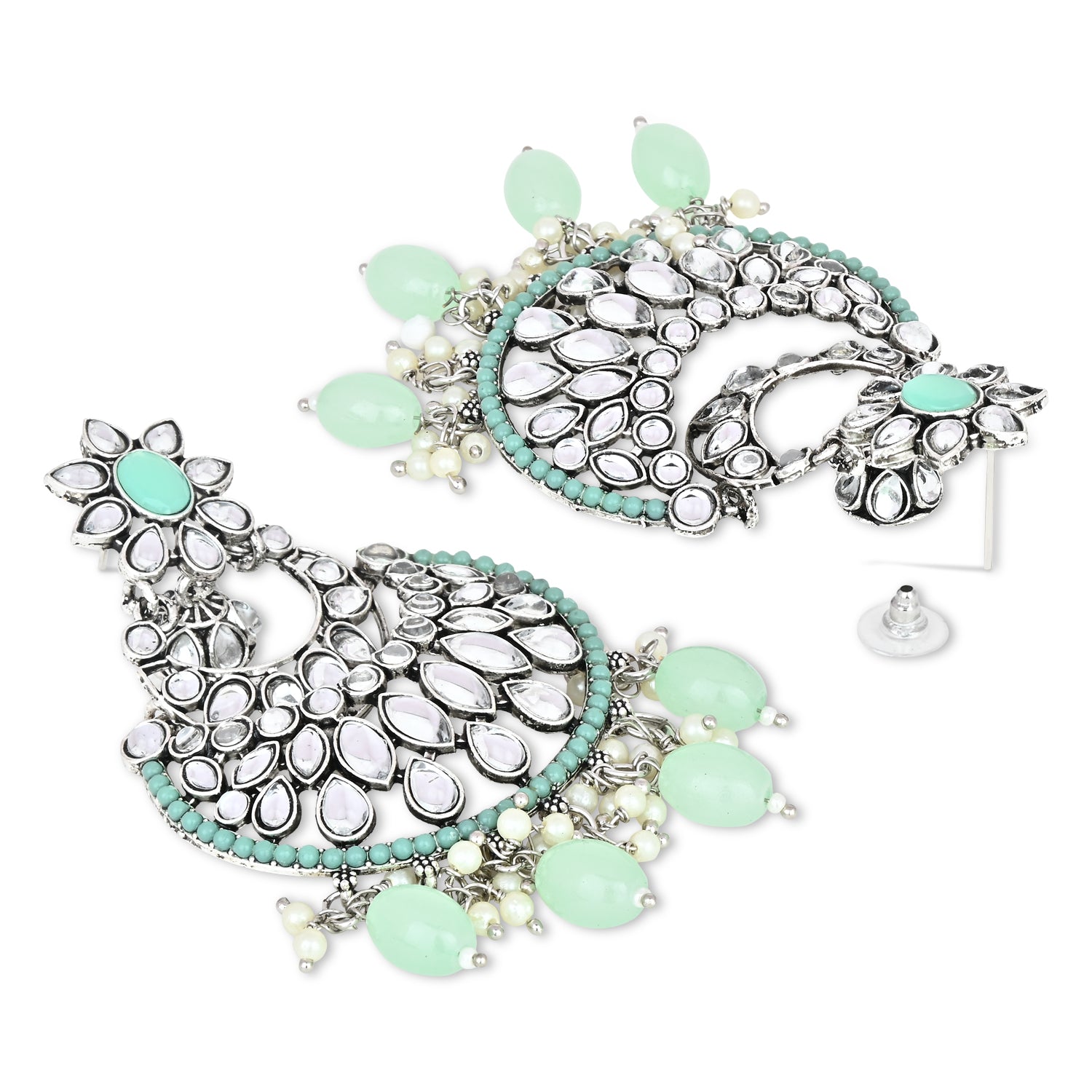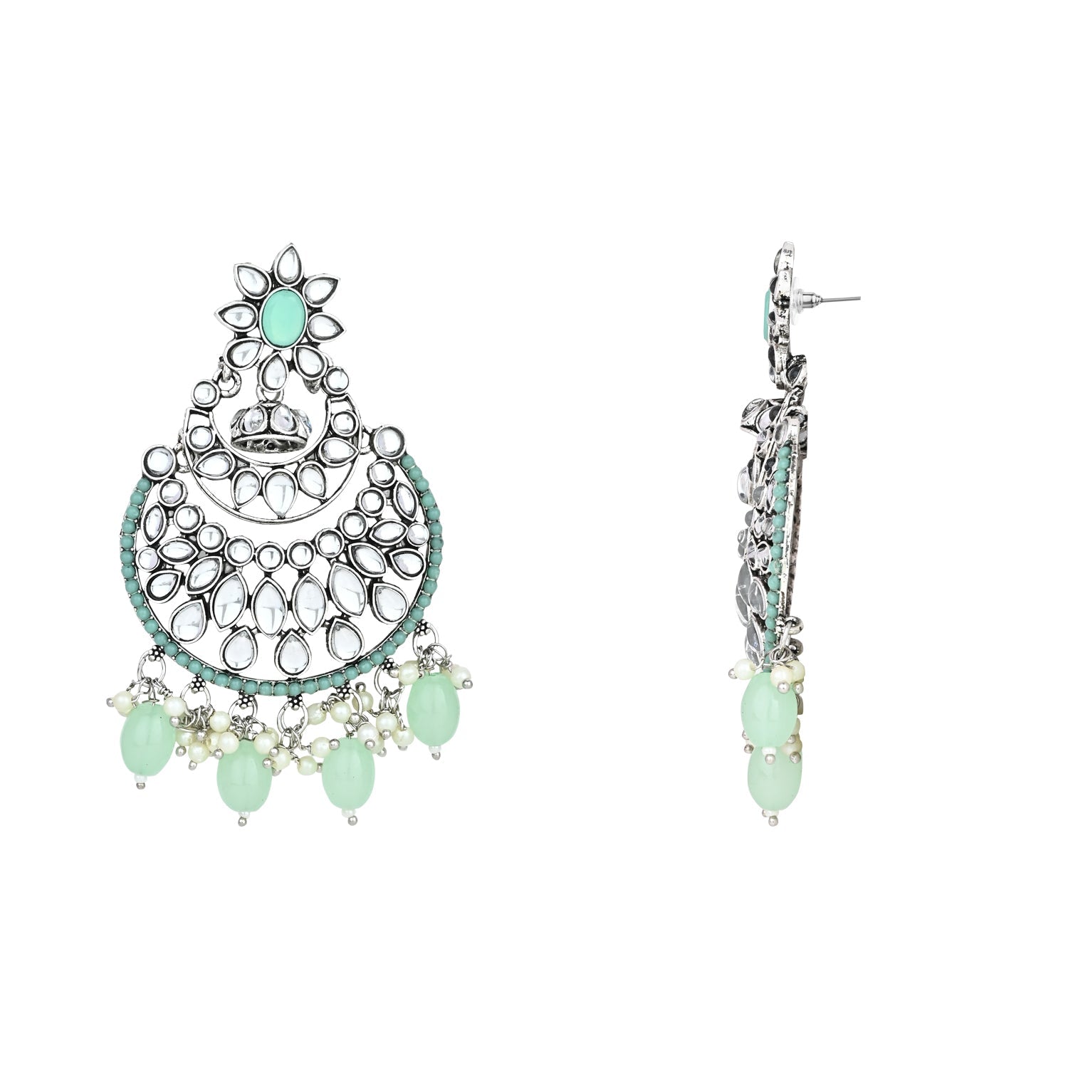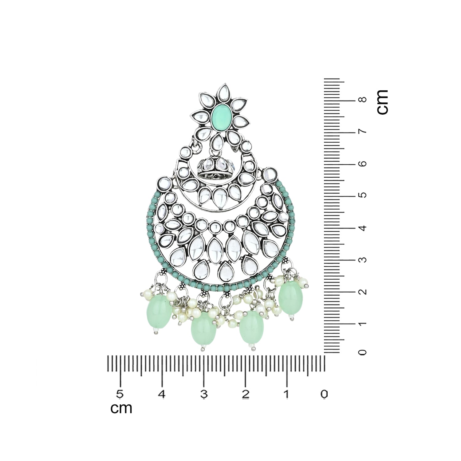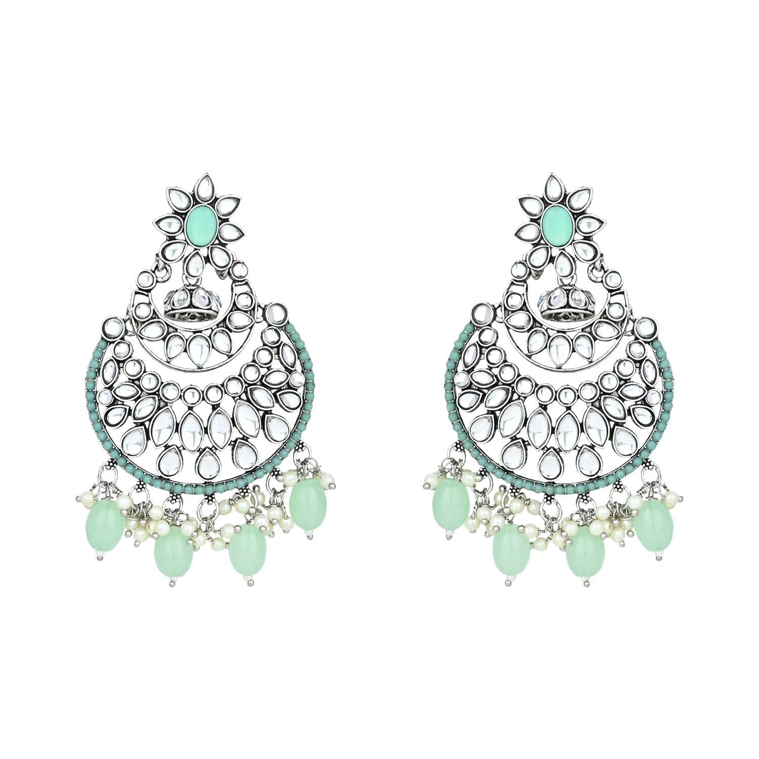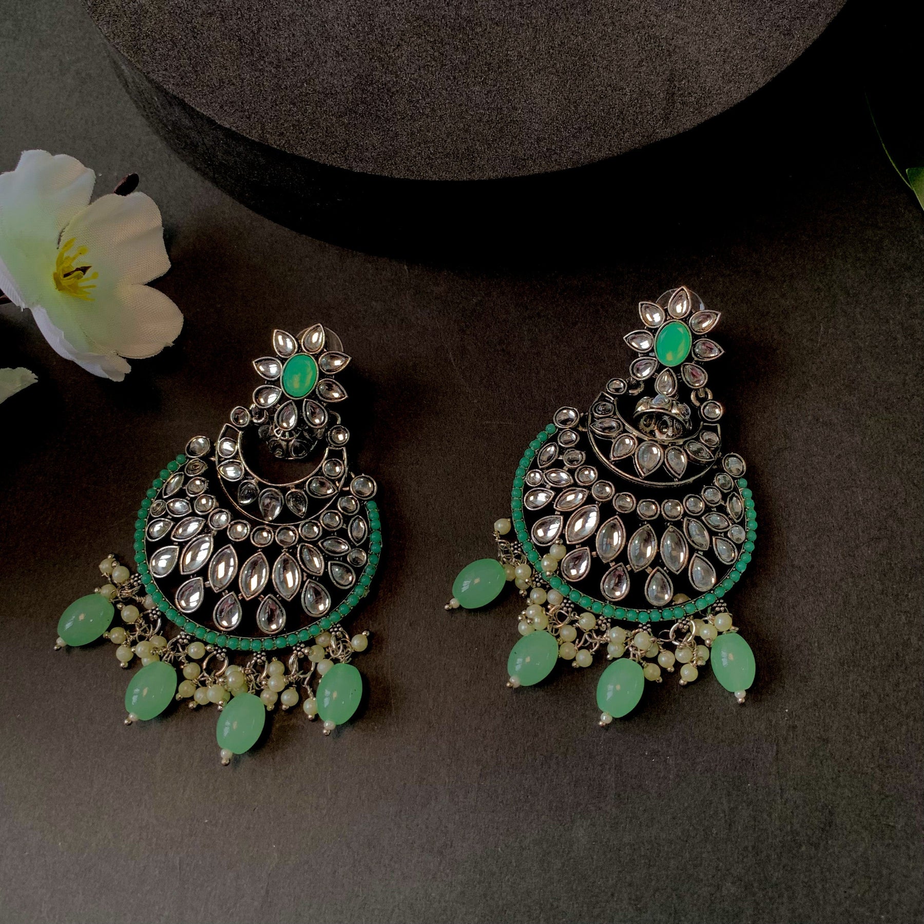 Silver Plated Traditional Handcrafted Pearl Kundan Beaded Chandbali Earrings, a timeless fusion of elegance and cultural heritage. These finely crafted earrings are designed to add a touch of regal charm to any occasion, making them the perfect accessory for women and girls who appreciate the beauty of traditional Indian jewelry. These chandbali earrings boast an intricate and alluring design that draws inspiration from traditional Indian jewelry. The intricate patterns and detailed craftsmanship make them a captivating statement piece.