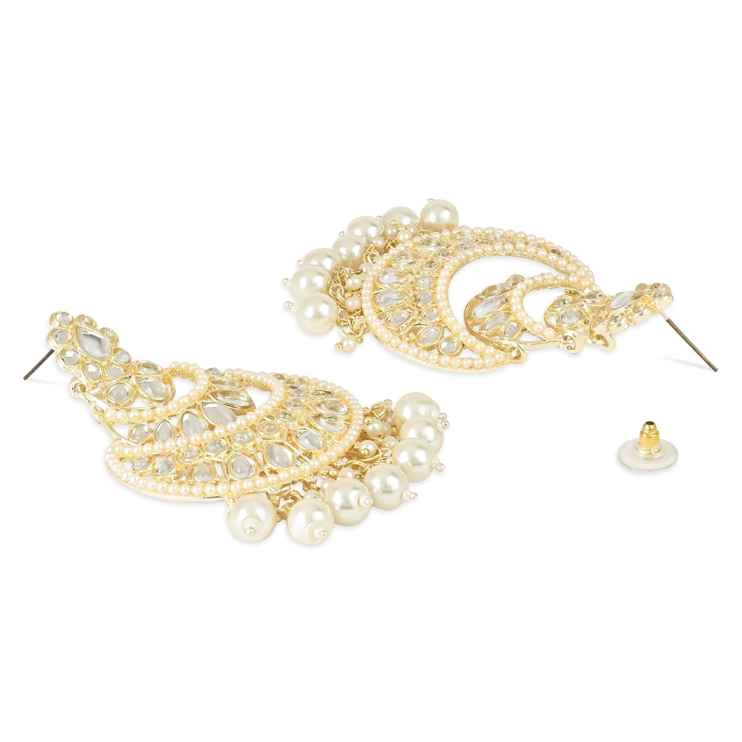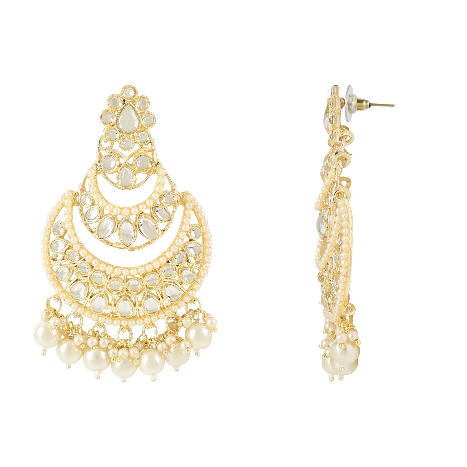 Women's Gold Plated Traditional Handcrafted Pearl Kundan Beaded Chandbali Earrings