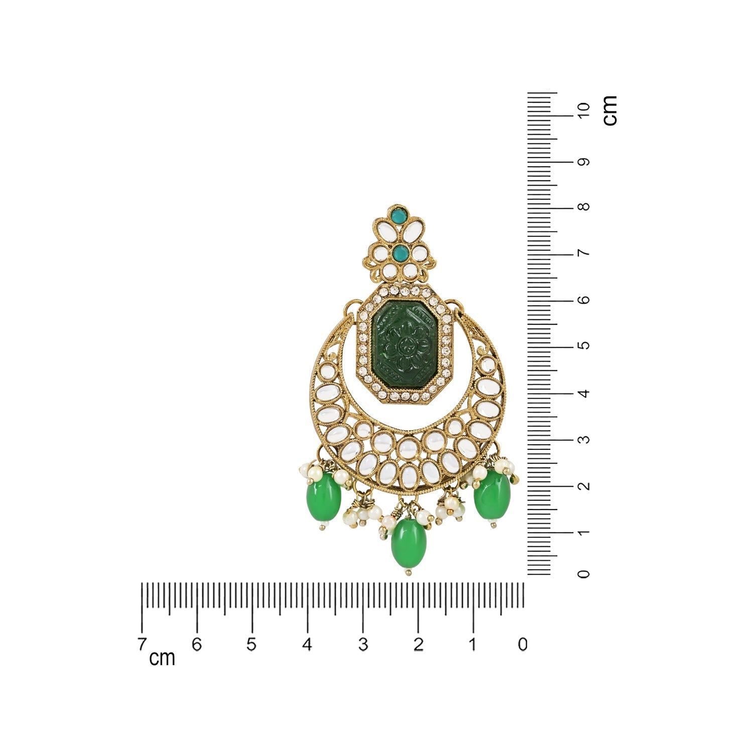 Crafted With Utmost Precision, These Earrings Showcase A Stunning Blend Of Traditional And Contemporary Elements. The Base Of The Earrings Is Made From High-Quality Metal, Expertly Plated With Lustrous Gold To Exude A Regal Charm. The Gold Plating Adds A Touch Of Opulence And Enhances The Overall Beauty Of The Earrings.The Centerpiece Of These Earrings Is The Exquisite Kundan Stones, Meticulously Hand-Set In A Captivating Design. Kundan Stones Are Renowned For Their Rich, Vibrant Colors And Impeccable Shine, And They Beautifully Complement The Gold Plating. The Stones Are Strategically Placed To Create An Enchanting Pattern That Catches The Light From Every Angle, Adding A Glamorous Touch To Your Ensemble.
