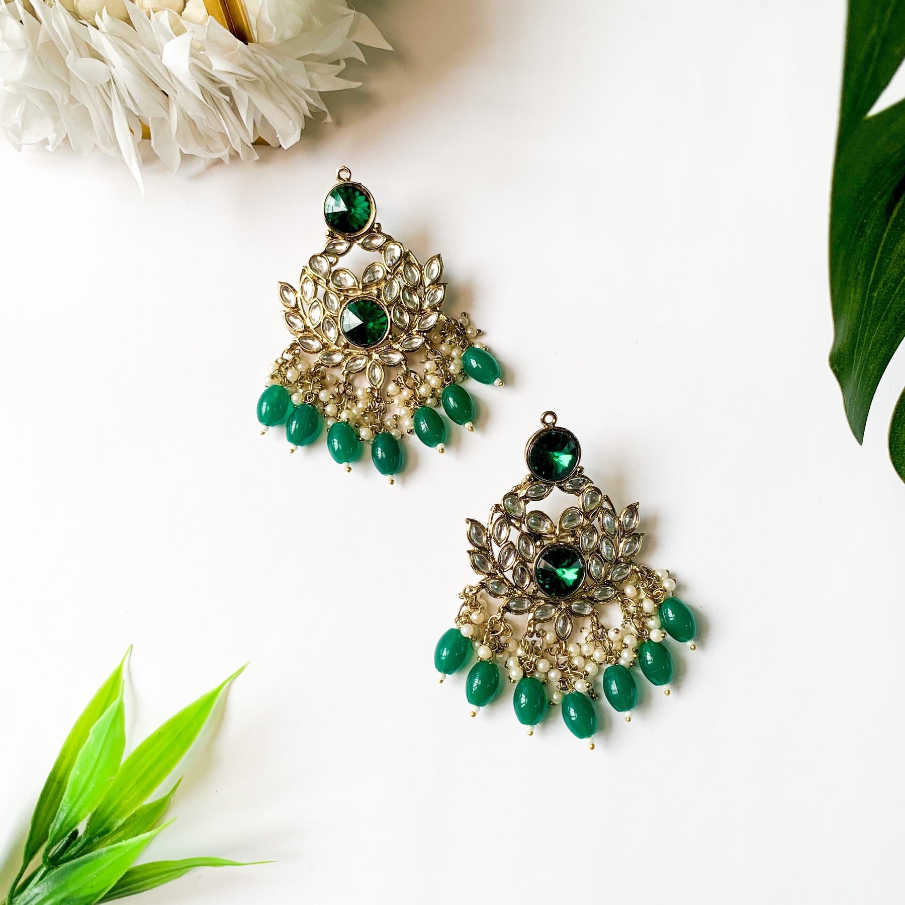 Gold plated traditional white Kundan studded pearl handcrafted dangle chandbali earrings are a type of ethnic jewelry that is intricately designed and crafted to be worn on the ears. The earrings feature a gold-plated metal base that is embellished with white Kundan stones and pearls. The pearls used in the earrings add a touch of elegance and sophistication to the overall design. These earrings are perfect for special occasions such as weddings, festivals, or formal events, where they can be worn to complement traditional Indian outfits such as sarees, lehengas, or salwar kameez. They can also be paired with western outfits for a fusion look. To maintain their shine and luster, it is recommended to store them in a dry and cool place when not in use and to avoid exposing them to moisture or chemicals such as perfumes or hairspray.