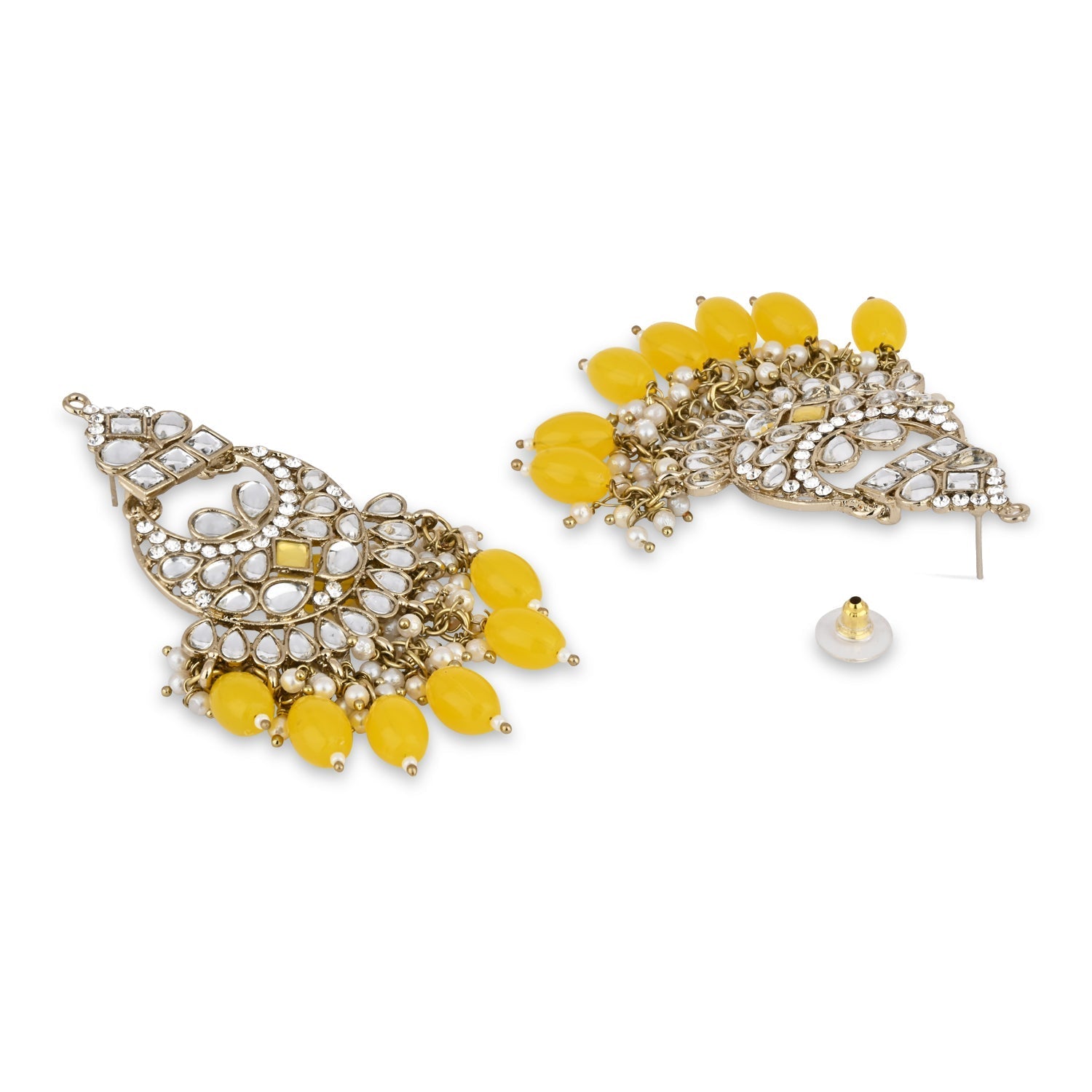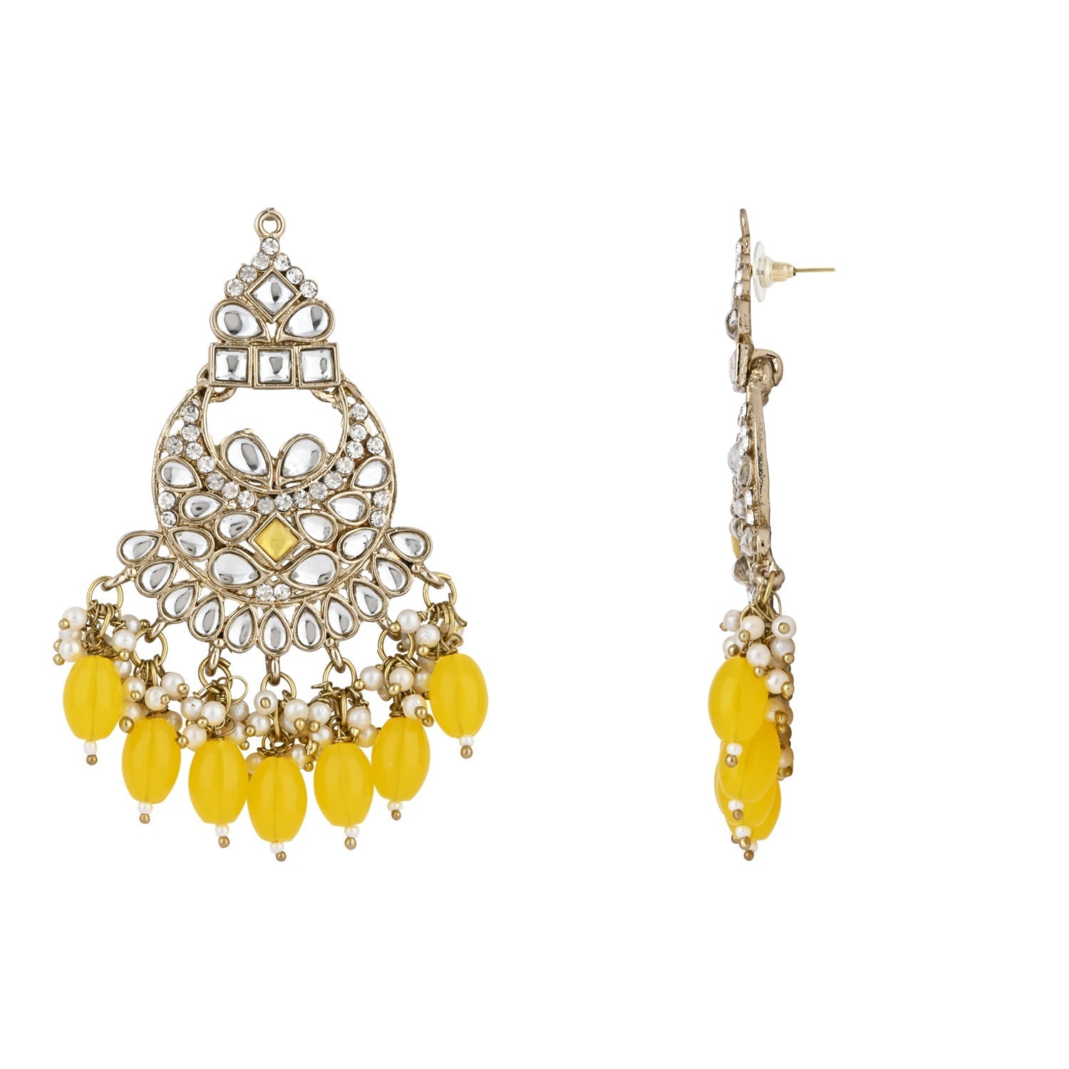 Women's Gold Plated Traditional Kundan Pearl Chandbali Earrings