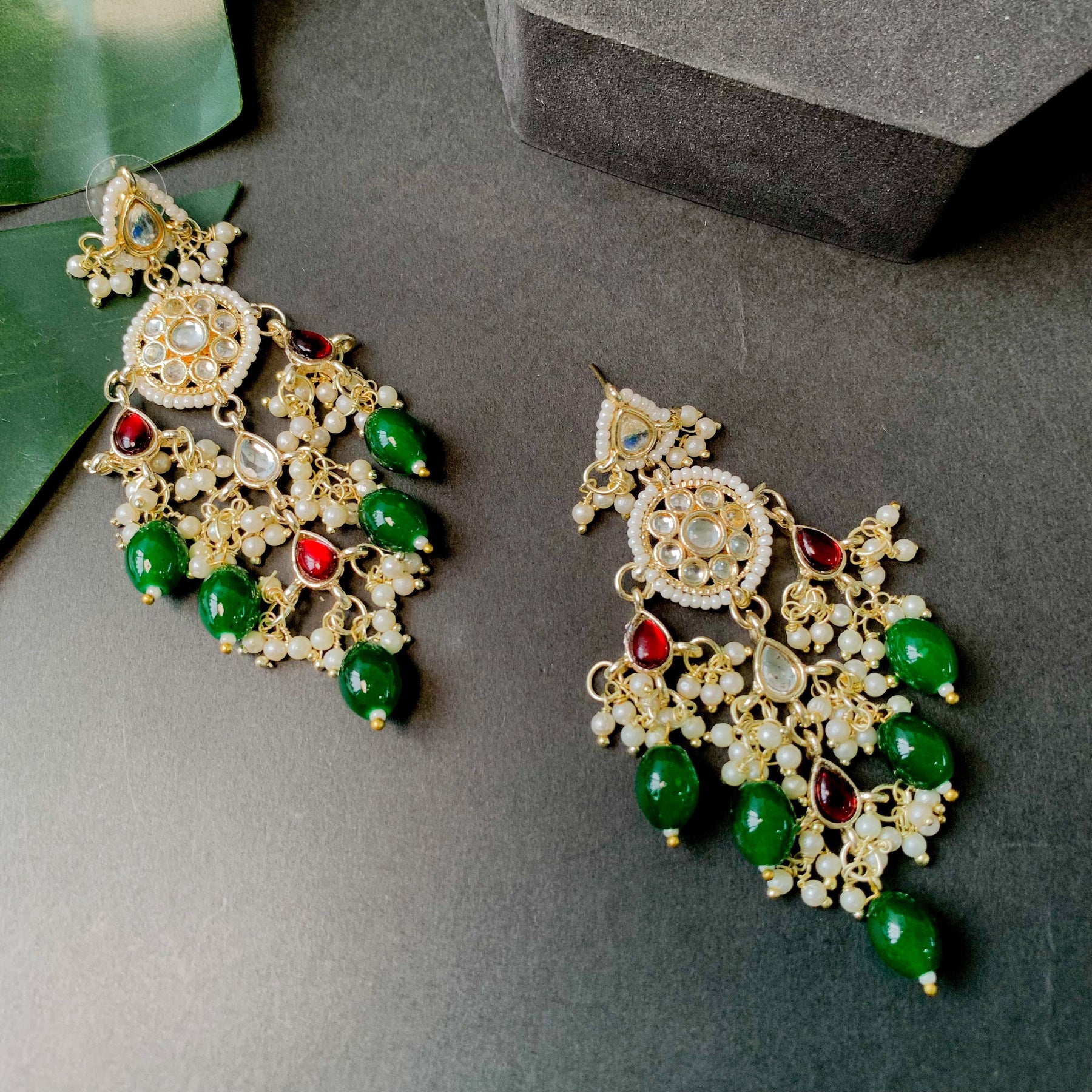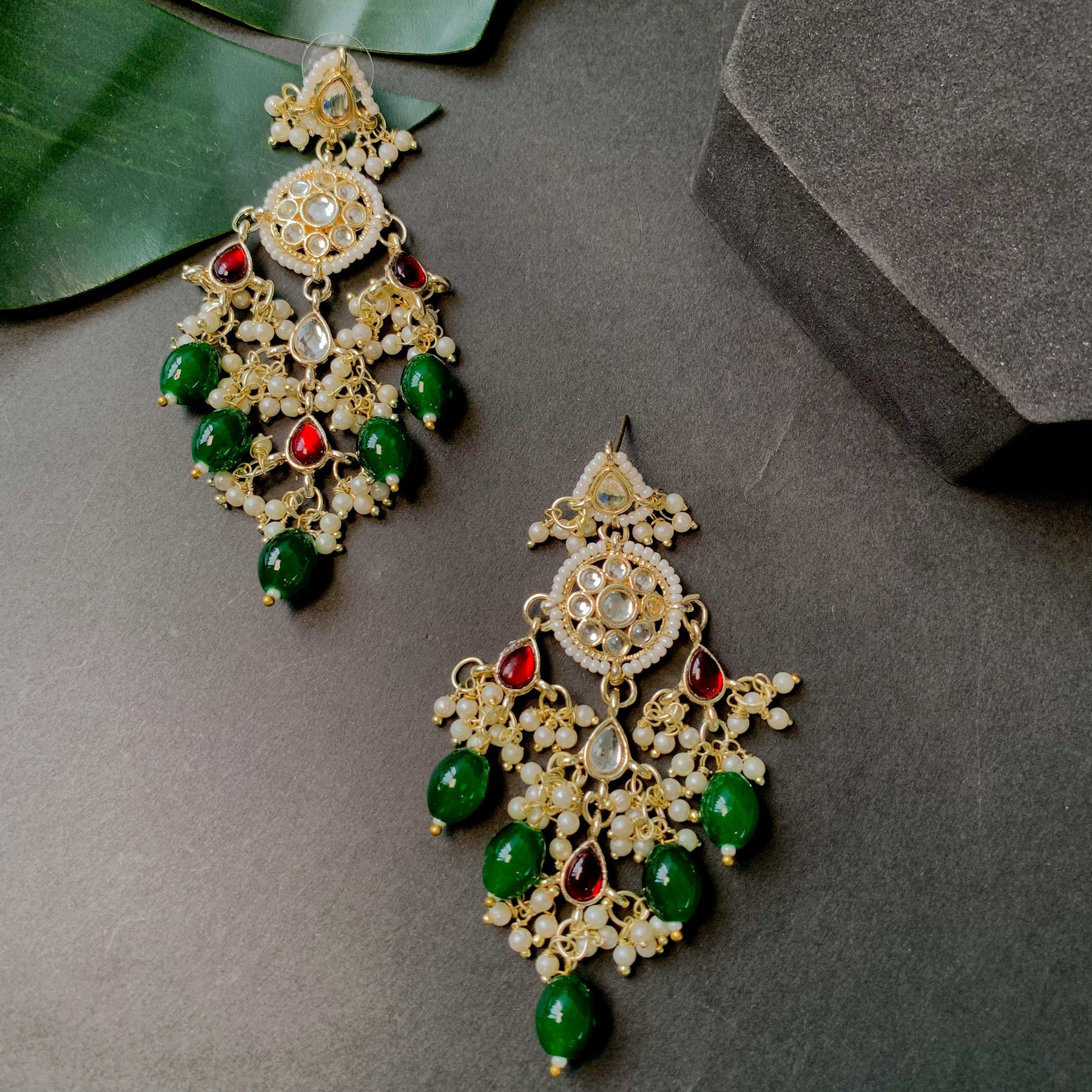Gold plated traditional white Kundan studded pearl handcrafted dangle chandbali earrings are a type of ethnic jewelry that is intricately designed and crafted to be worn on the ears. The earrings feature a gold-plated metal base that is embellished with white Kundan stones and pearls. The pearls used in the earrings add a touch of elegance and sophistication to the overall design. These earrings are perfect for special occasions such as weddings, festivals, or formal events, where they can be worn to complement traditional Indian outfits such as sarees, lehengas, or salwar kameez. They can also be paired with western outfits for a fusion look. To maintain their shine and luster, it is recommended to store them in a dry and cool place when not in use and to avoid exposing them to moisture or chemicals such as perfumes or hairspray.