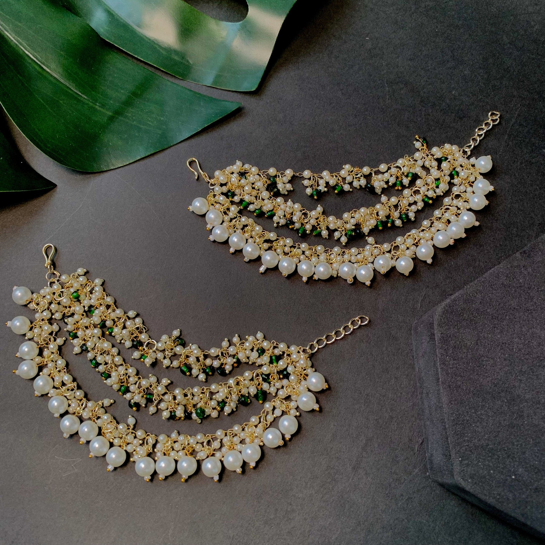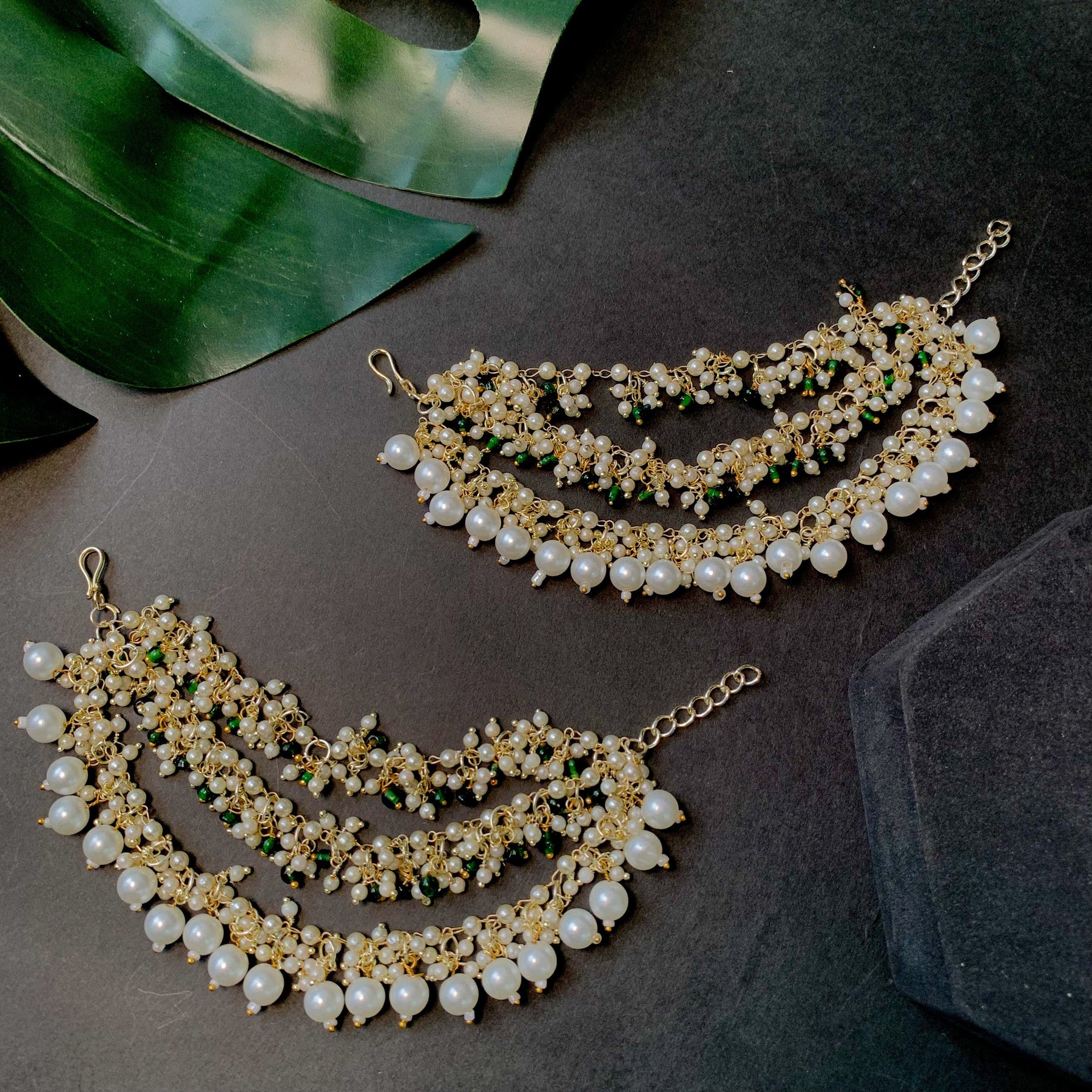 Gold plated traditional white Kundan studded pearl handcrafted dangle chandbali earrings are a type of ethnic jewelry that is intricately designed and crafted to be worn on the ears. The earrings feature a gold-plated metal base that is embellished with white Kundan stones and pearls. The pearls used in the earrings add a touch of elegance and sophistication to the overall design. These earrings are perfect for special occasions such as weddings, festivals, or formal events, where they can be worn to complement traditional Indian outfits such as sarees, lehengas, or salwar kameez. They can also be paired with western outfits for a fusion look. To maintain their shine and luster, it is recommended to store them in a dry and cool place when not in use and to avoid exposing them to moisture or chemicals such as perfumes or hairspray.