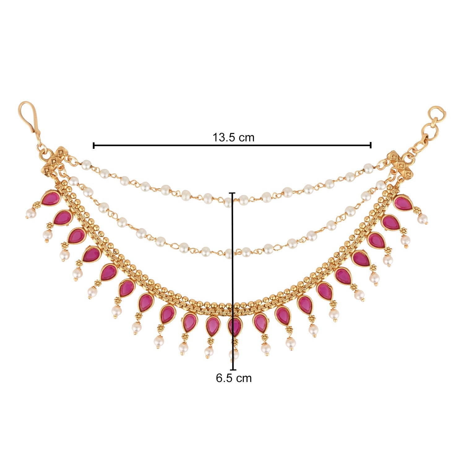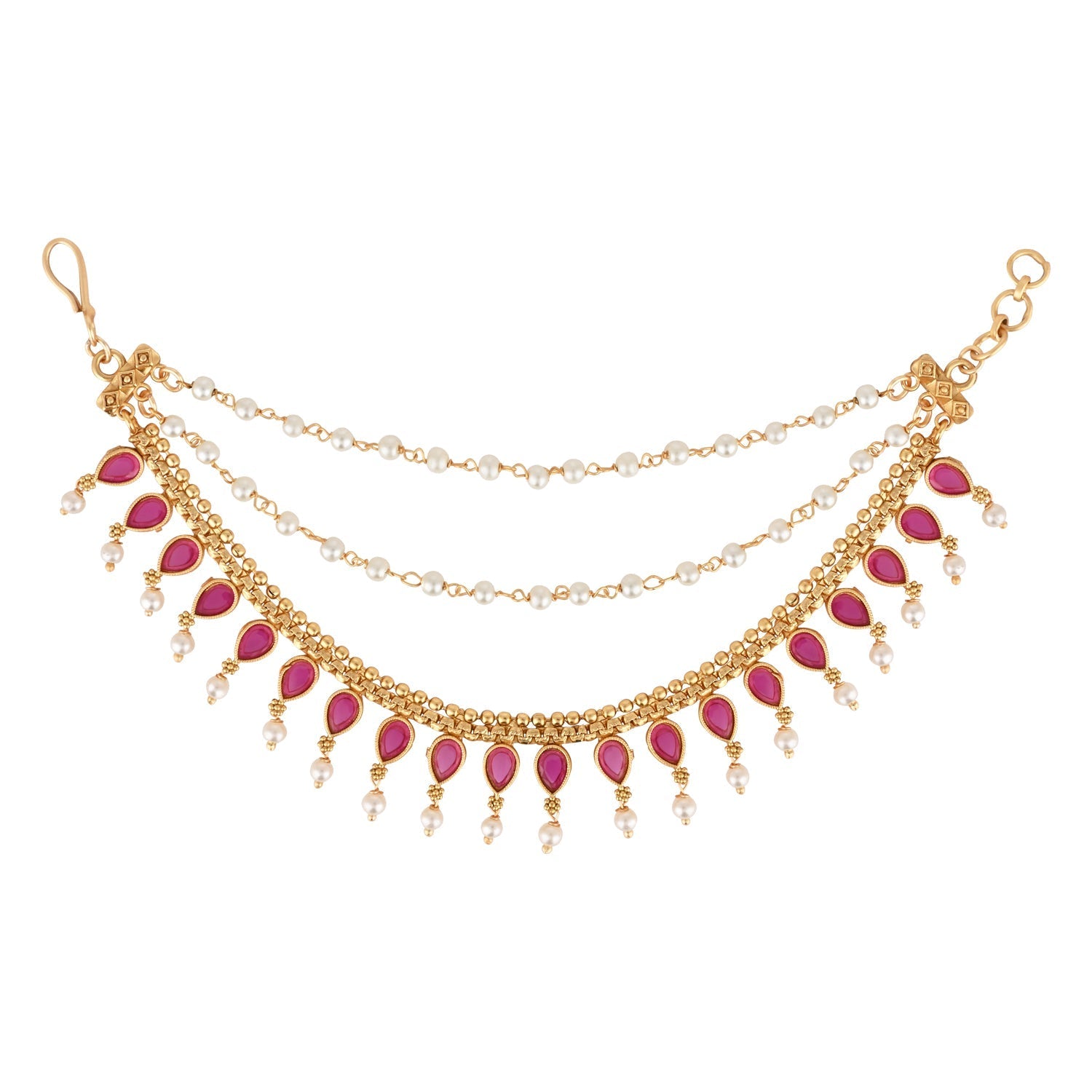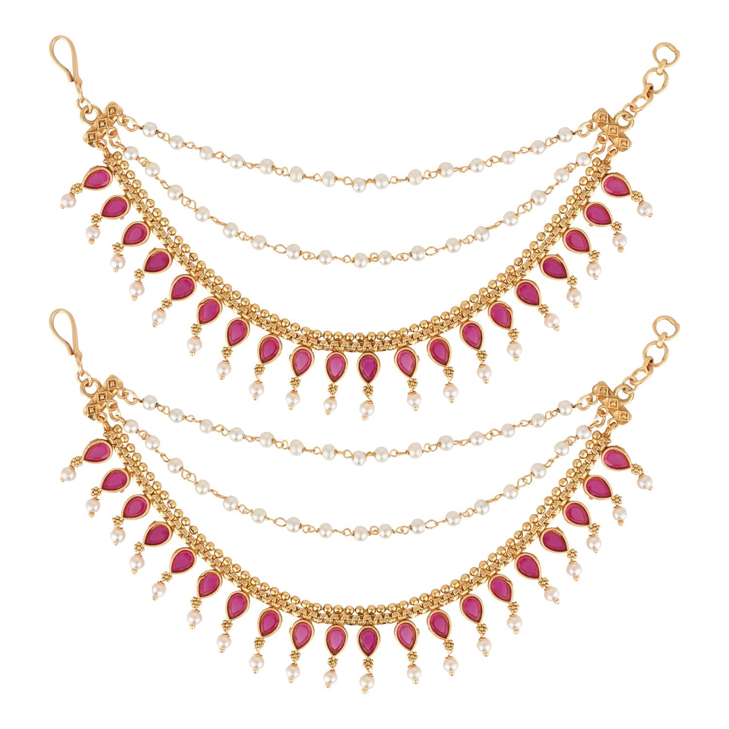 A beautiful piece that adds a touch of elegance to any outfit. With its intricate design, it makes your look feel special, whether you're heading to a fancy event or just adding some sparkle to your everyday wear. It's comfy enough to wear all day and fits both dressy and casual styles. Made to last with high-quality materials, the Earchain will keep its charm for a long time. Try the Jigyasa Earchain and see how it adds a bit of magic to your style!