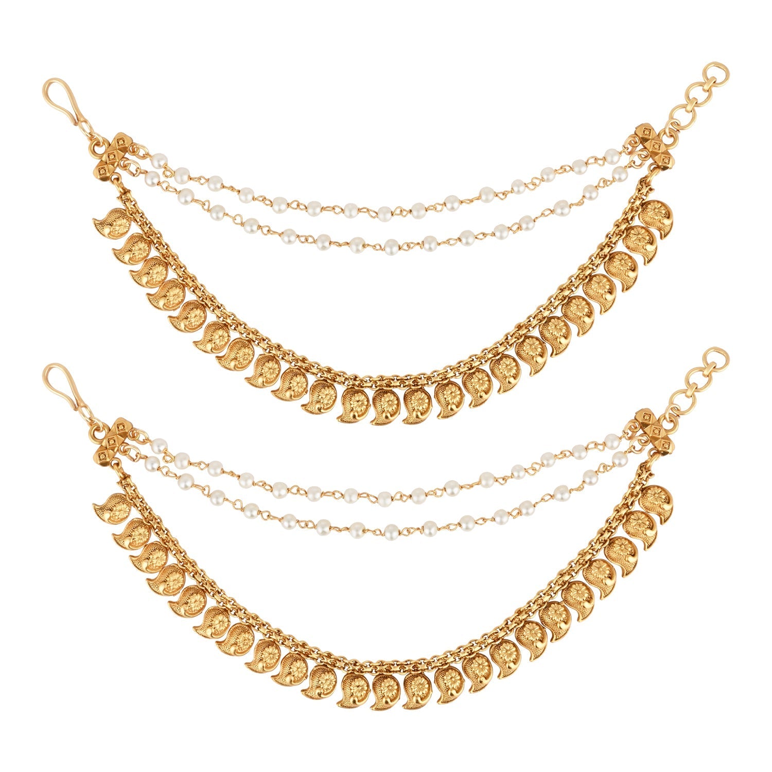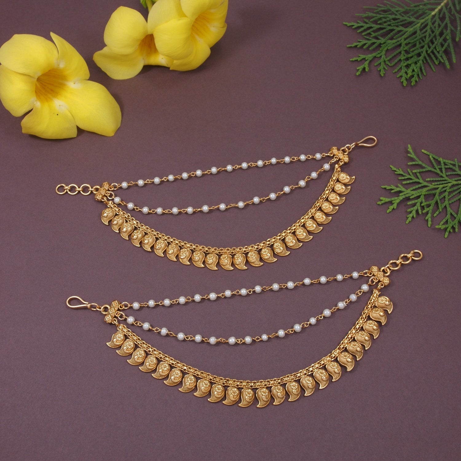 A beautiful piece that adds a touch of elegance to any outfit. With its intricate design, it makes your look feel special, whether you're heading to a fancy event or just adding some sparkle to your everyday wear. It's comfy enough to wear all day and fits both dressy and casual styles. Made to last with high-quality materials, the Earchain will keep its charm for a long time. Try the Jigyasa Earchain and see how it adds a bit of magic to your style!