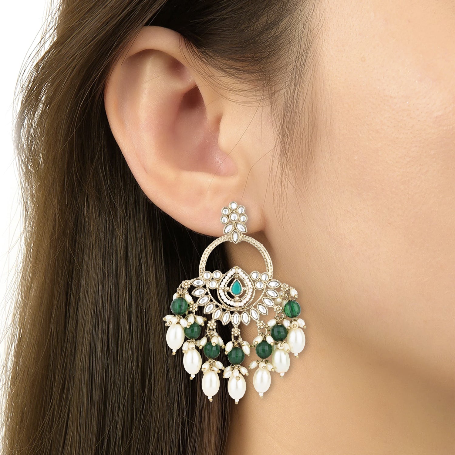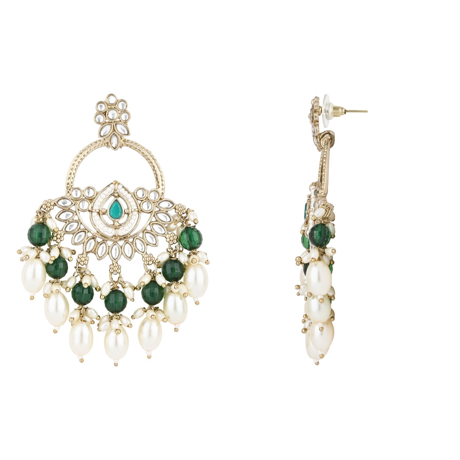 Women's Gold Plated Traditional Handcrafted Kundan Pearl Chandbali Dangle Earrings