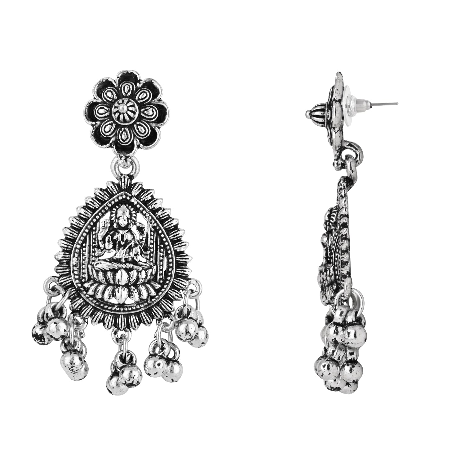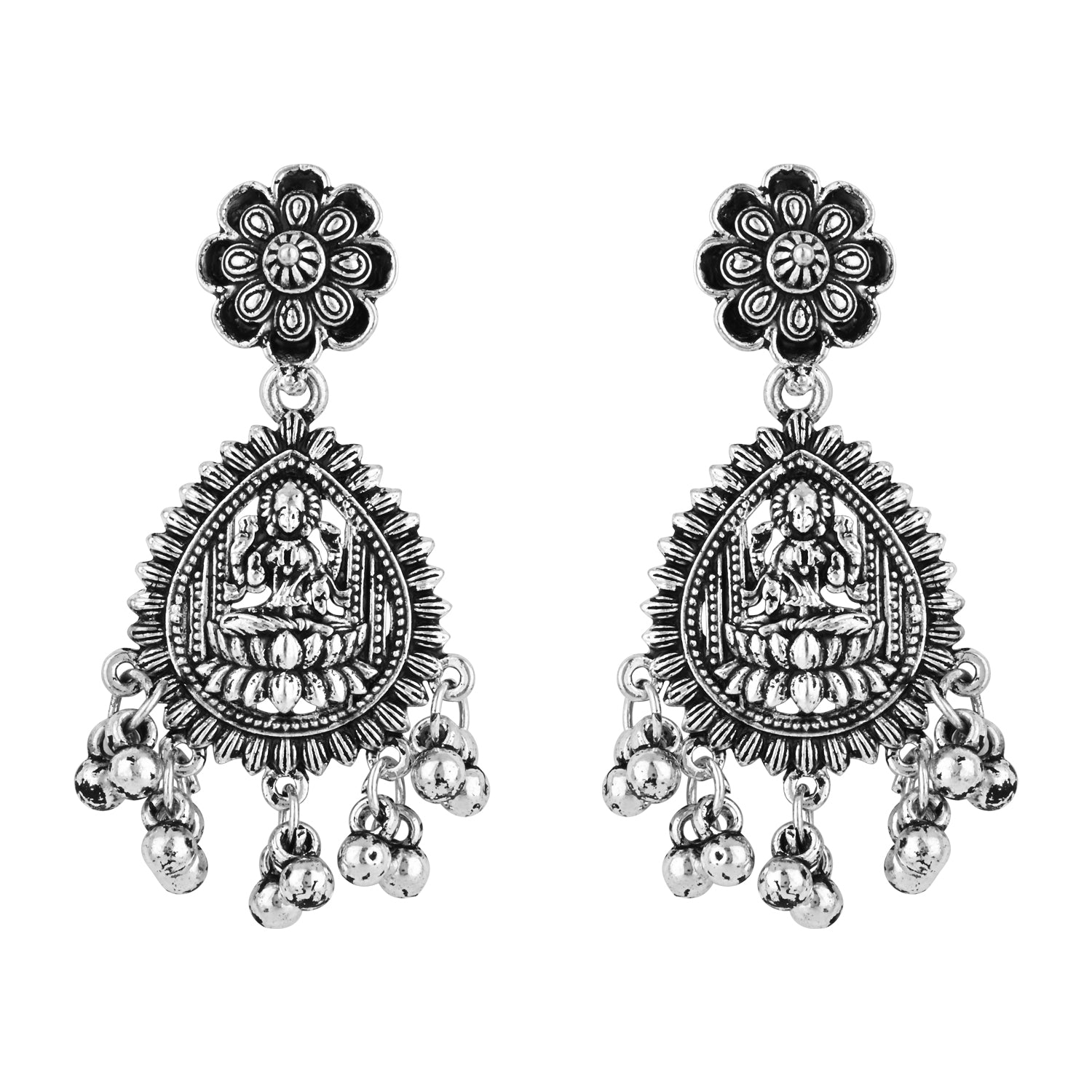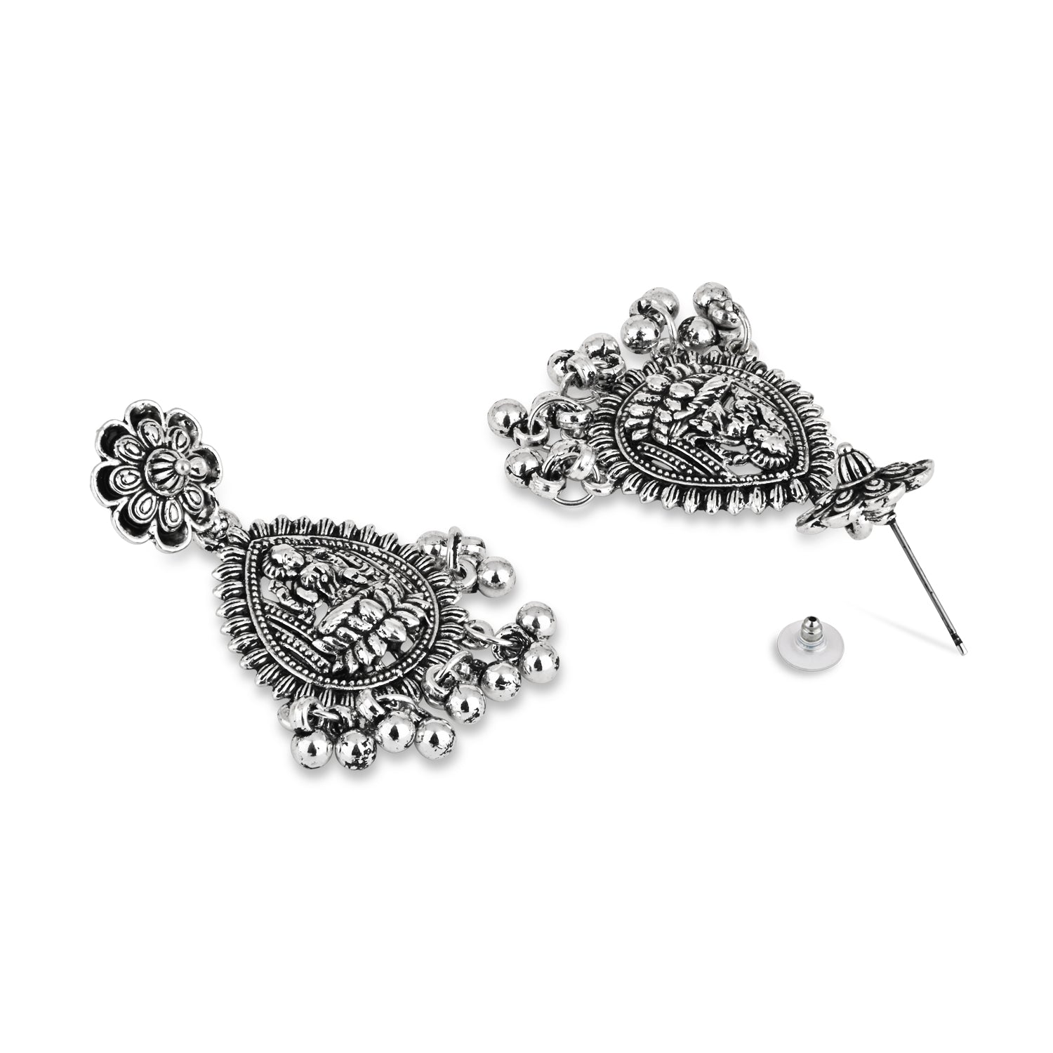 Women's Navratri Ethnic Silver Oxidised Afghani Style Trending Jhumka Earrings