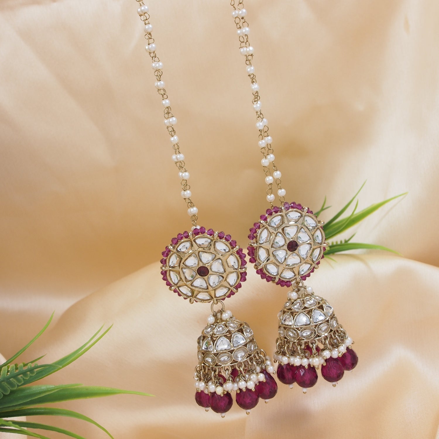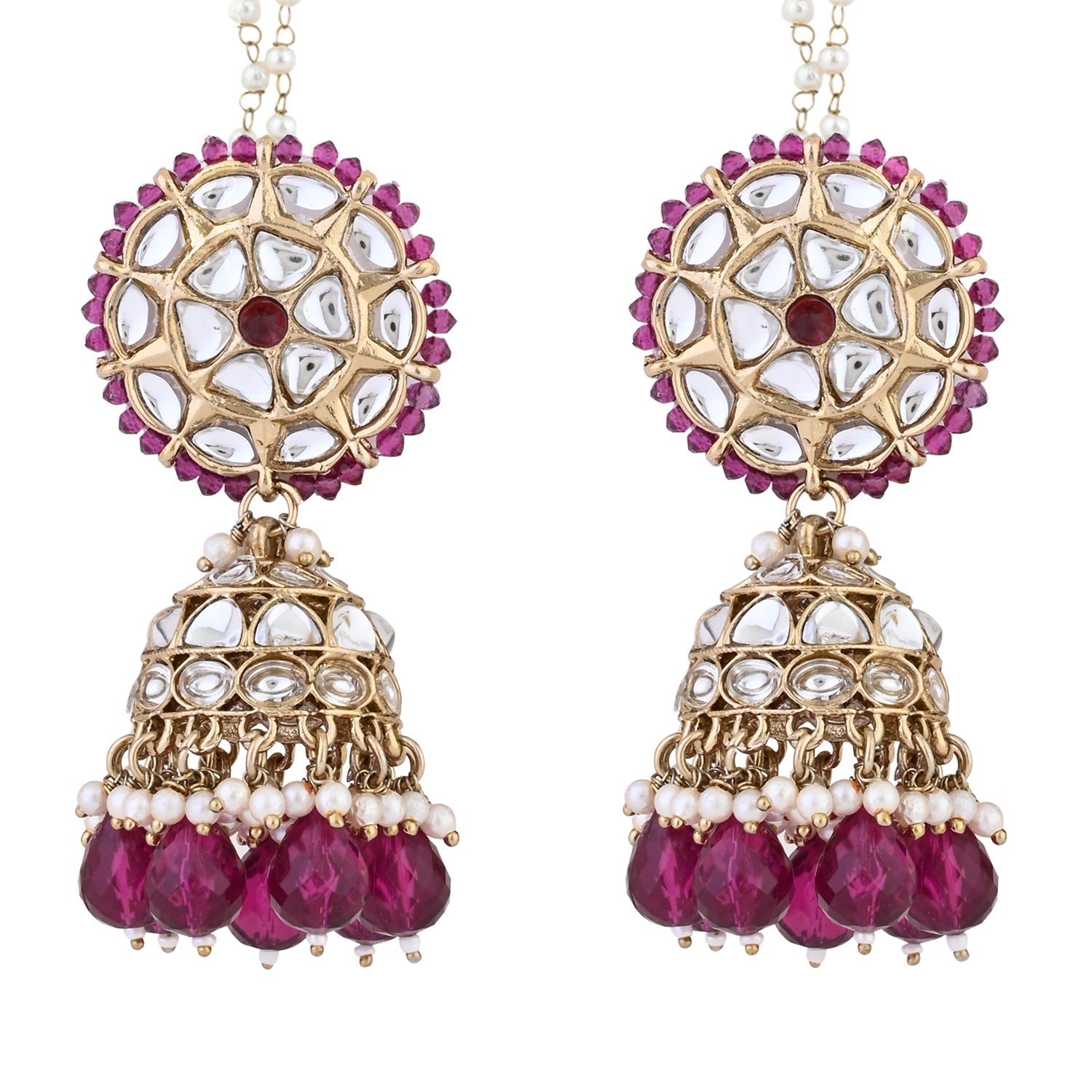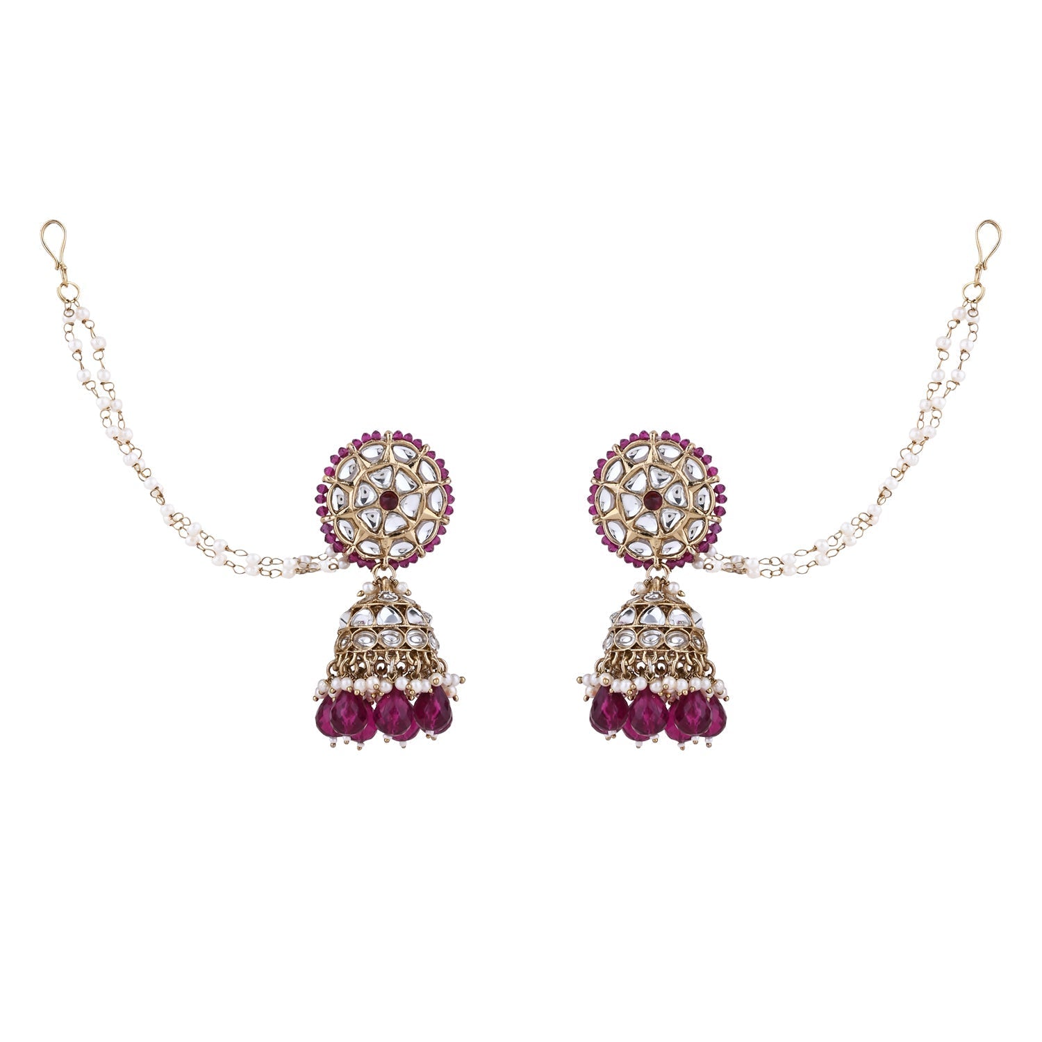 These Exquisite Gold Plated Traditional Kundan & Pearl Dangle Jhumka Earrings Are A Timeless Piece Of Jewelry That Embody The Essence Of Classic Indian Craftsmanship. The Intricate Detailing Of The Kundan Stones Creates A Captivating Sparkle, While The Lustrous Pearls Add A Touch Of Elegance. The Jhumka Design Is Complemented By A Detachable Ear Chain, Offering Versatility For Both Traditional And Modern Looks. Perfect For Weddings, Festivals, Or Special Occasions, These Earrings Are Lightweight And Comfortable To Wear. The Gold Plating Enhances The Overall Richness, Making It An Ideal Accessory For Elevating Your Ethnic Attire.