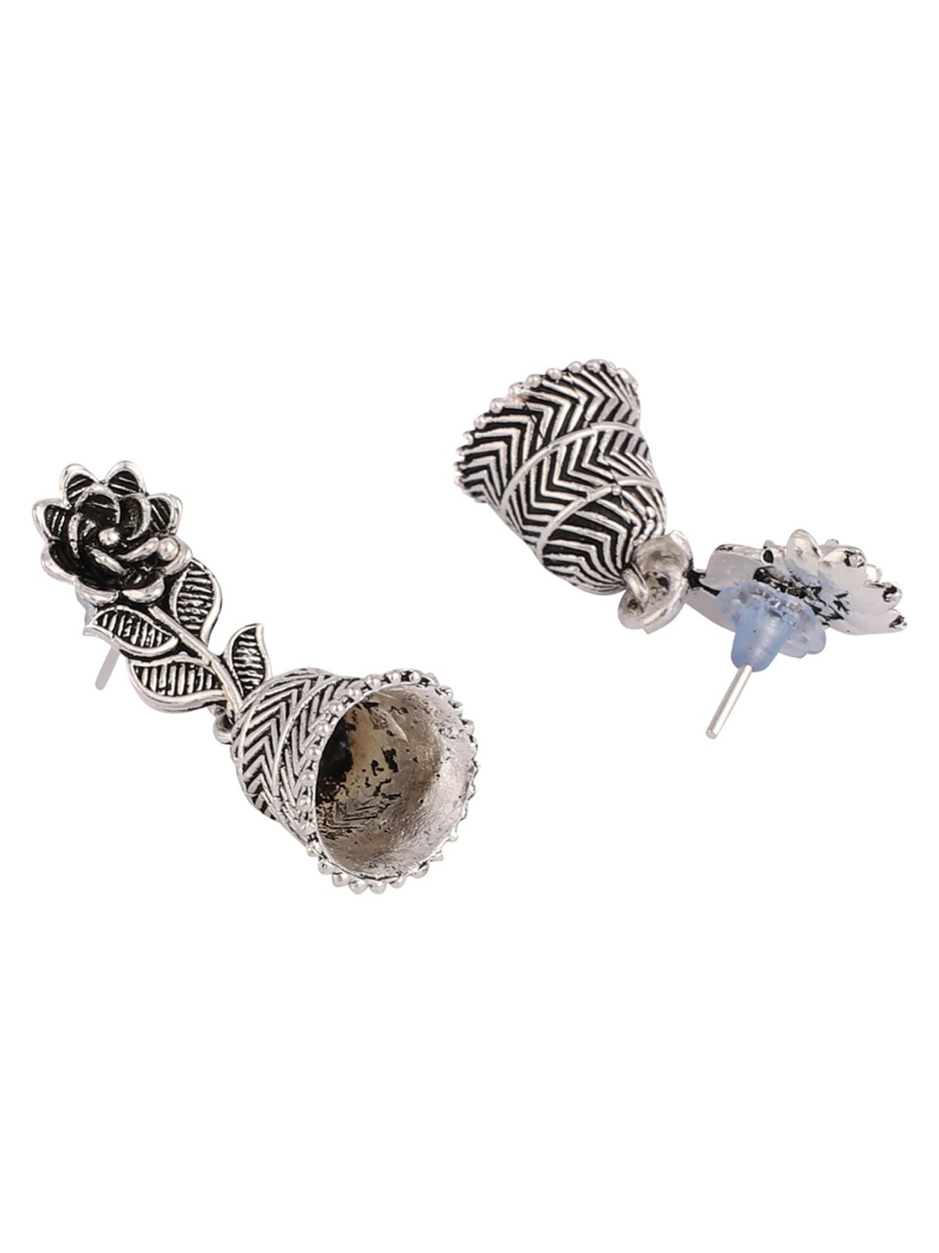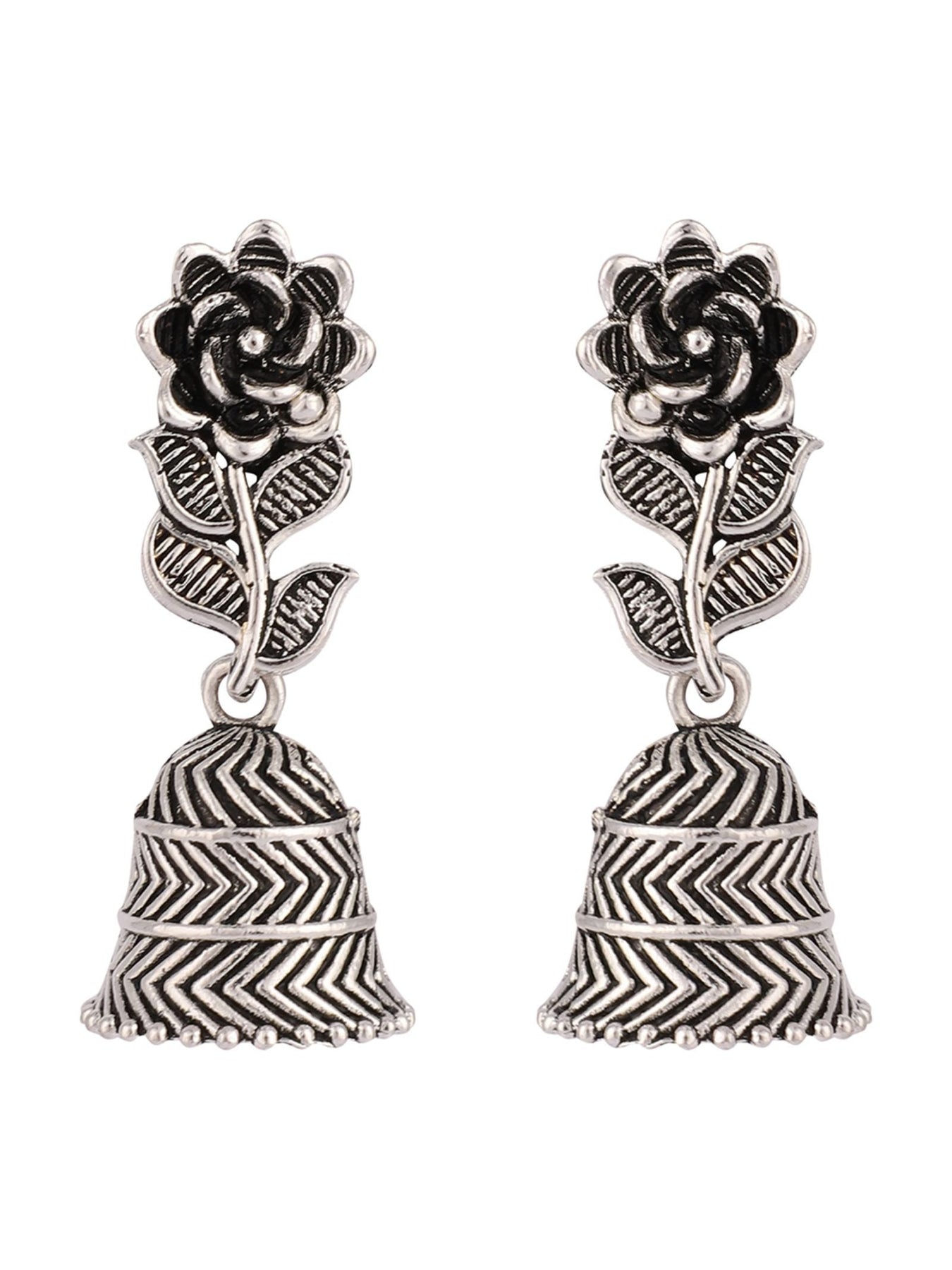 Traditional Antique Floral Silver Plated Party Wear Alloy Jhumka