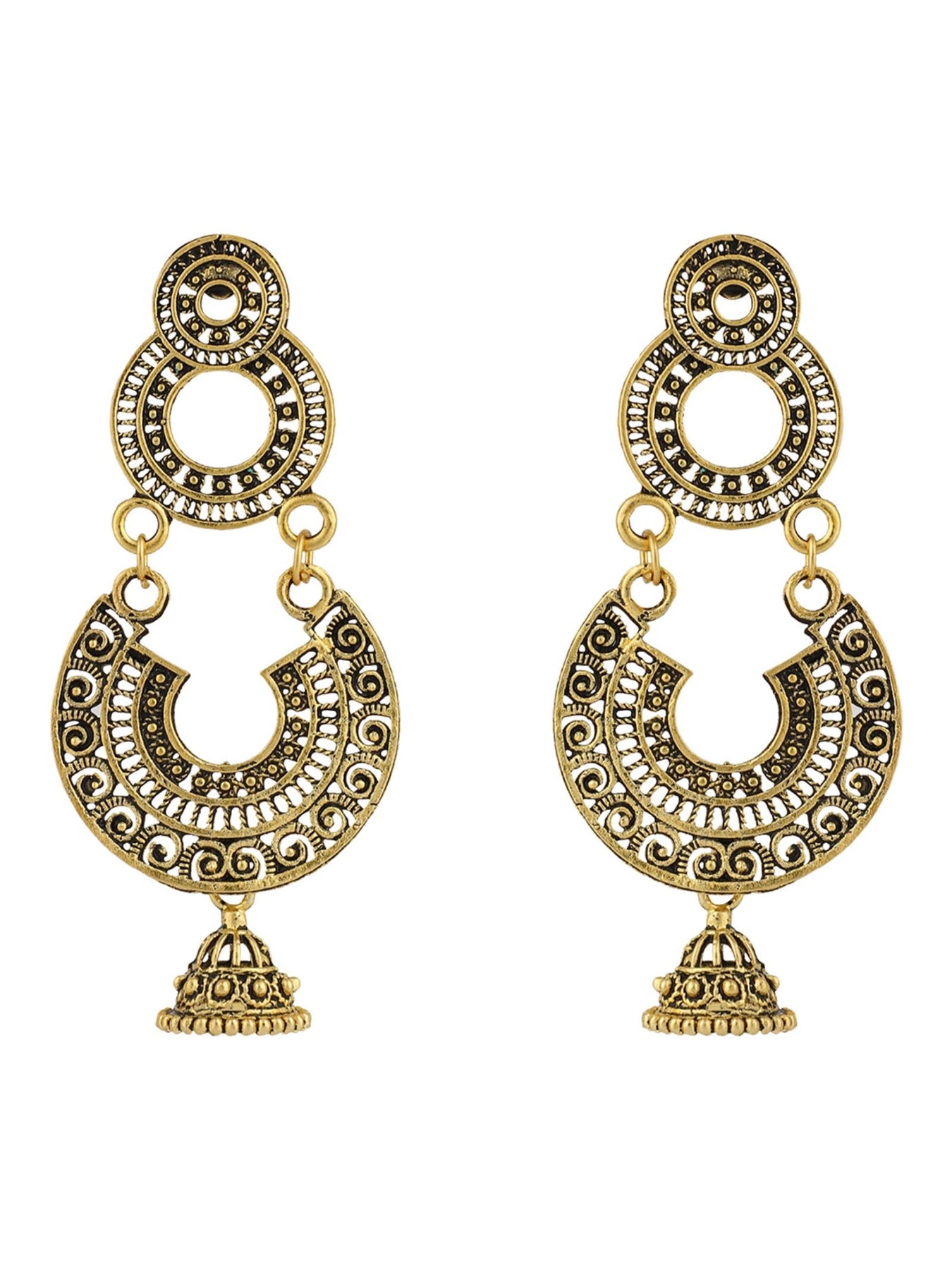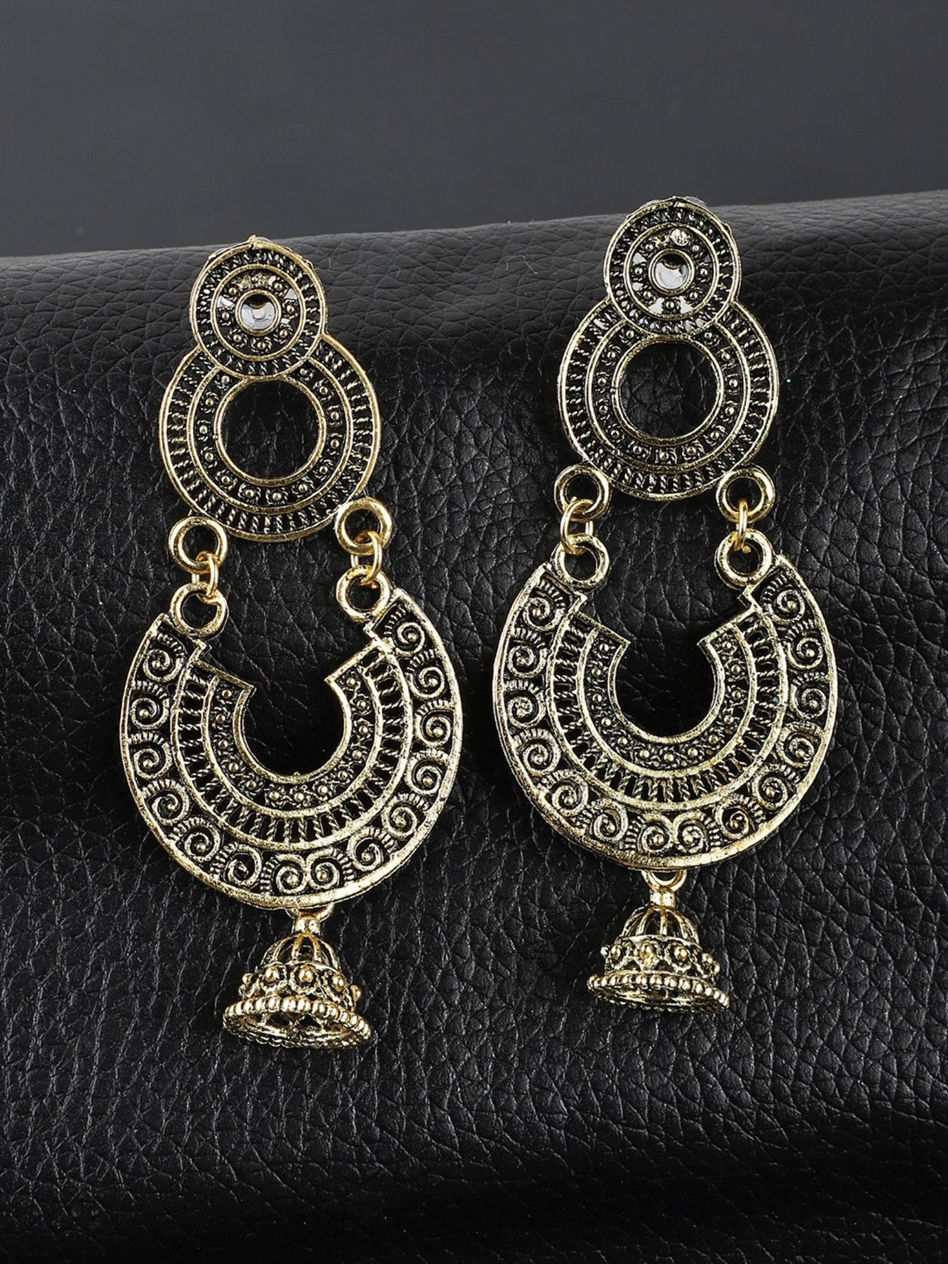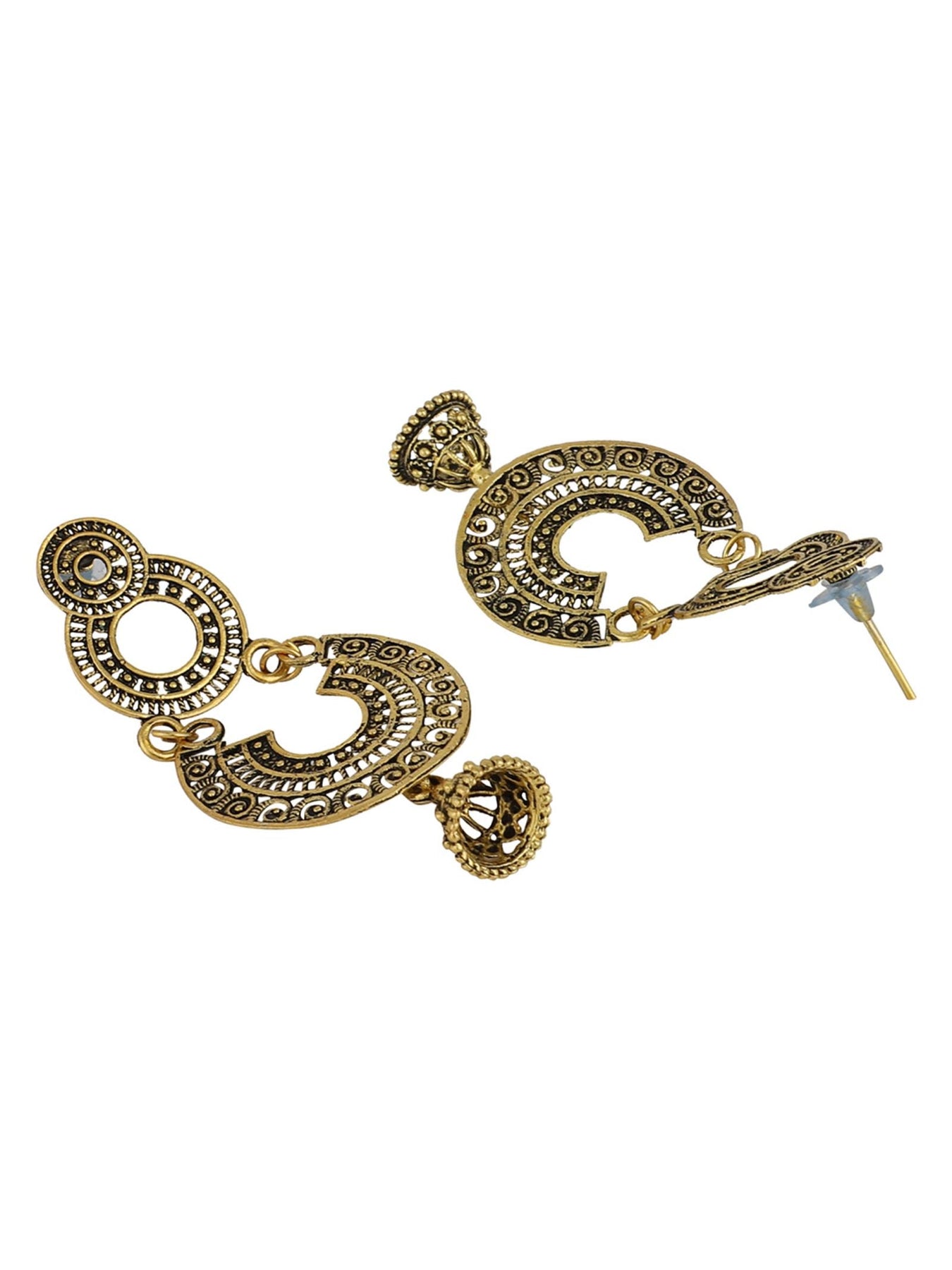 Gold Plated Antique Geometric Shape With A Small Jhumki Drop Earring, Closure: Post And Back