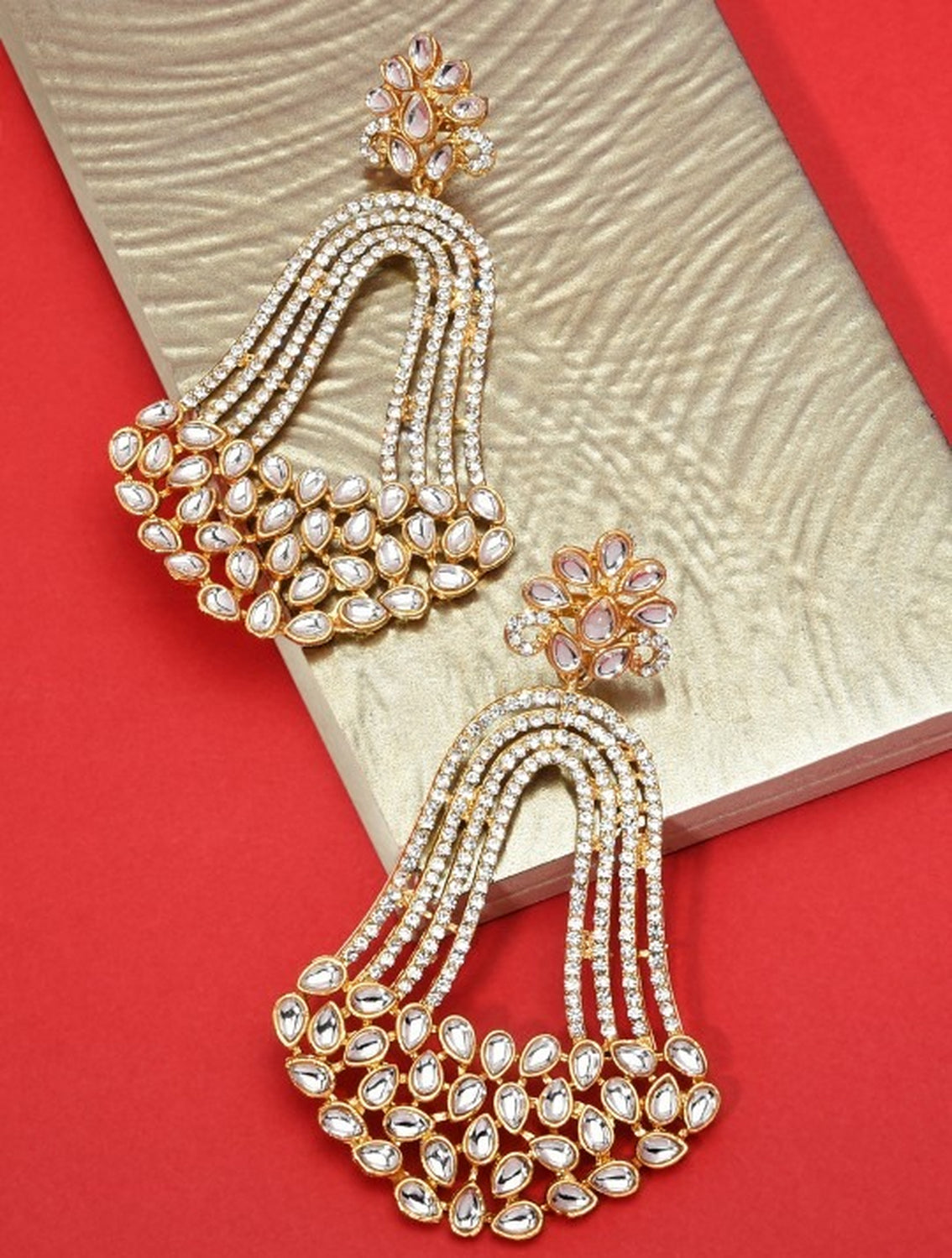Gold-Plated White Contemporary Earrings, Has Kundan Secured With A Post And Back