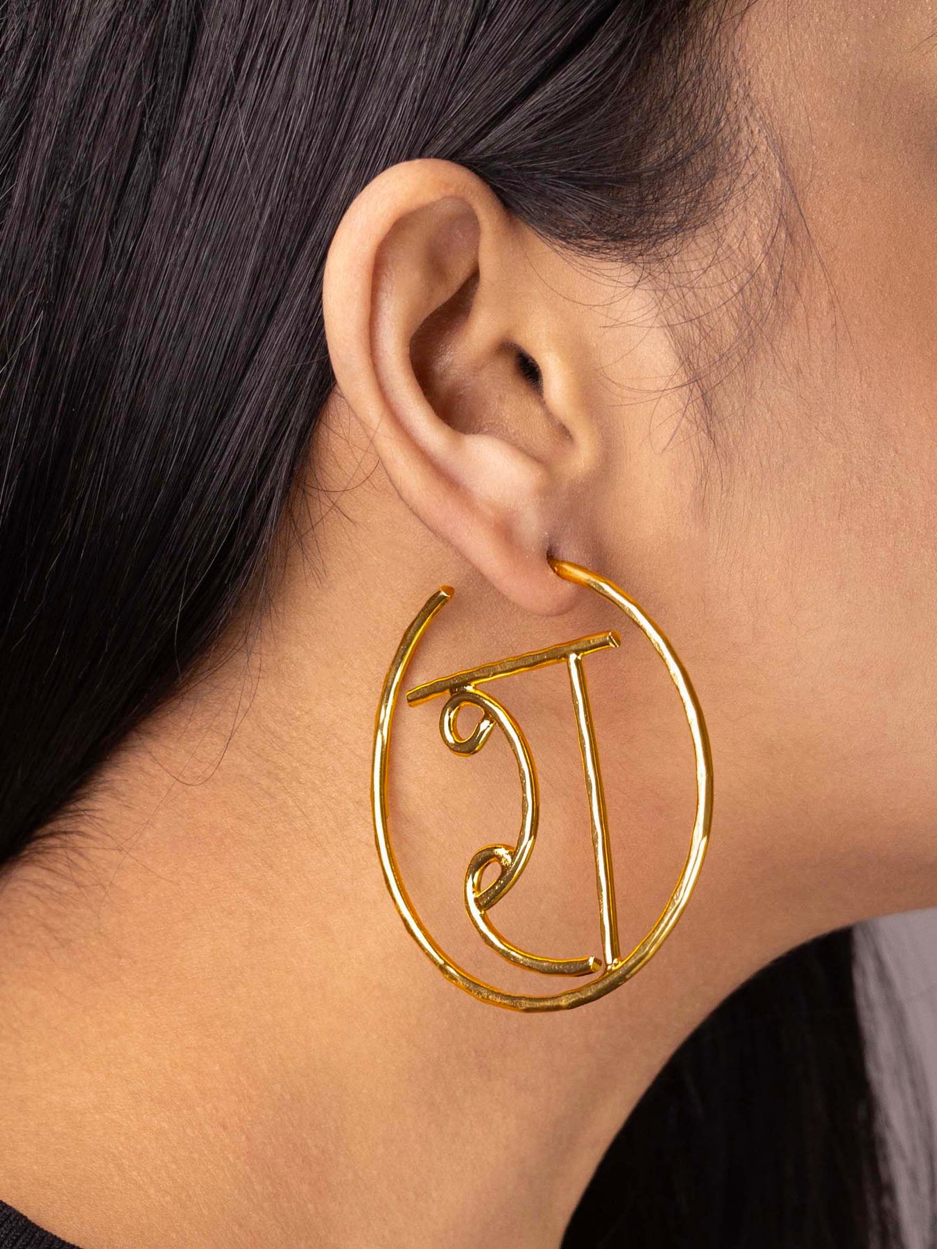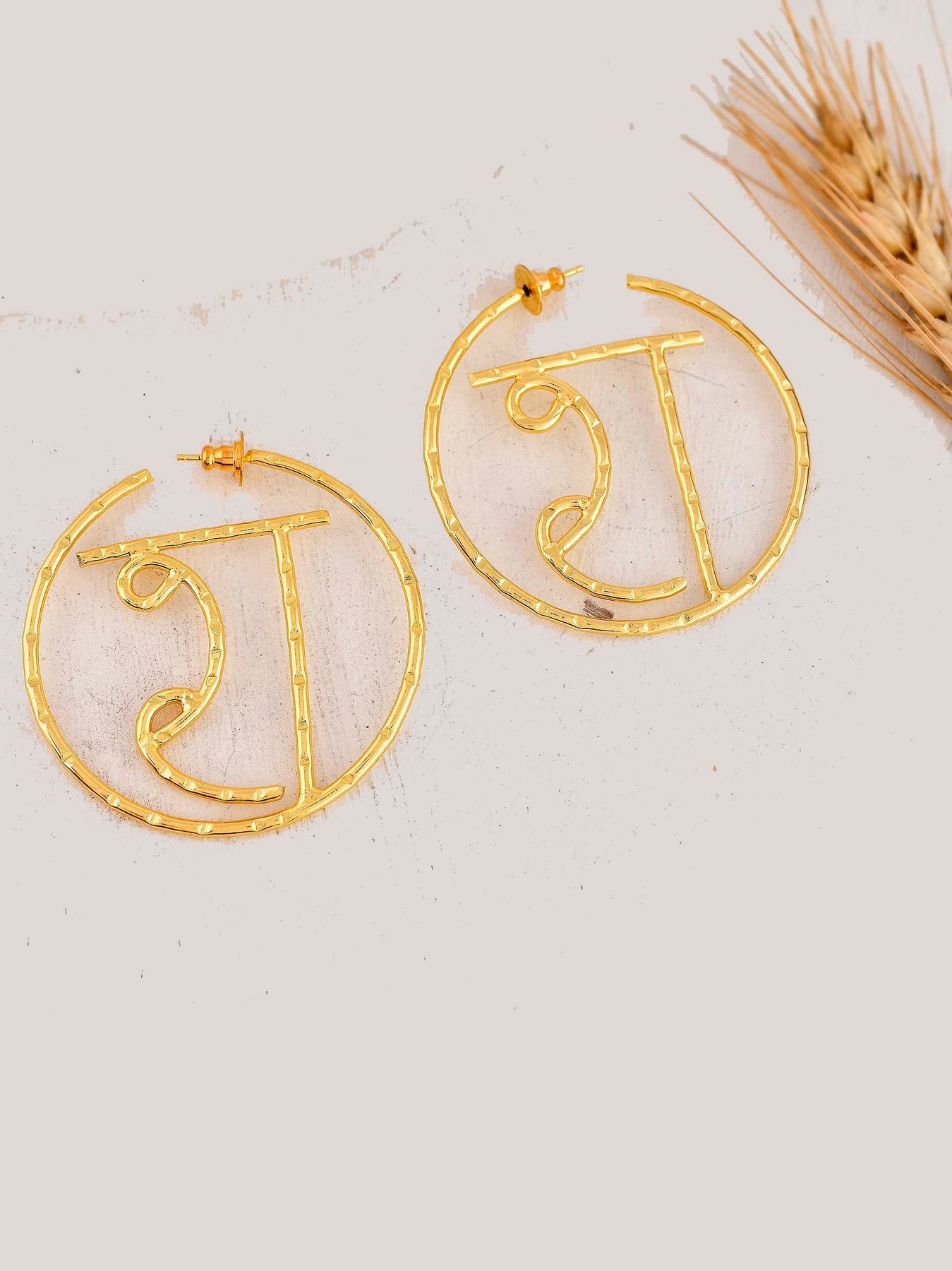 Akshar Encircled Earring En19 Color :Gold Material :Brass Closure :Hoop Care Instructions :Keep Away From Moisture Weight :0.5G