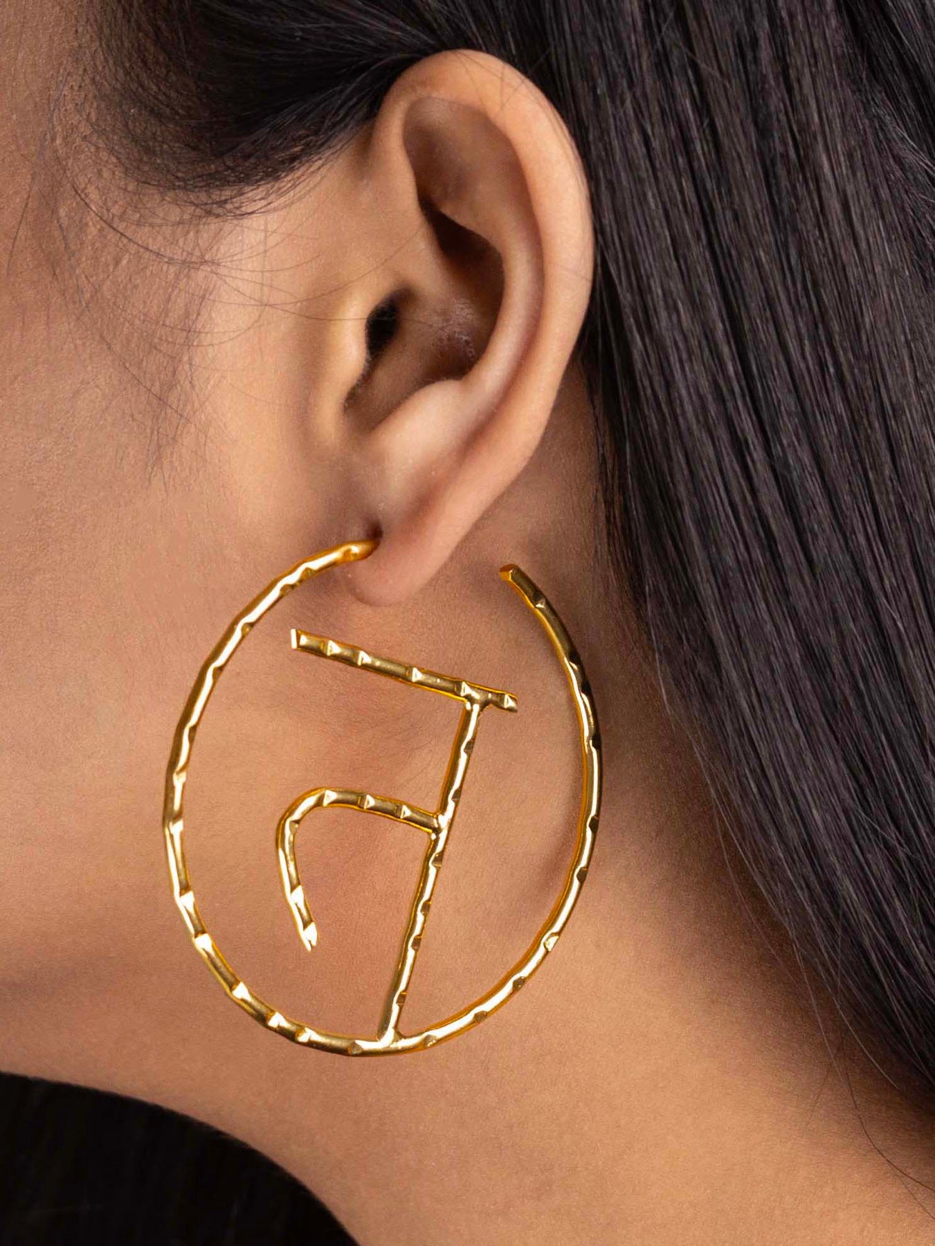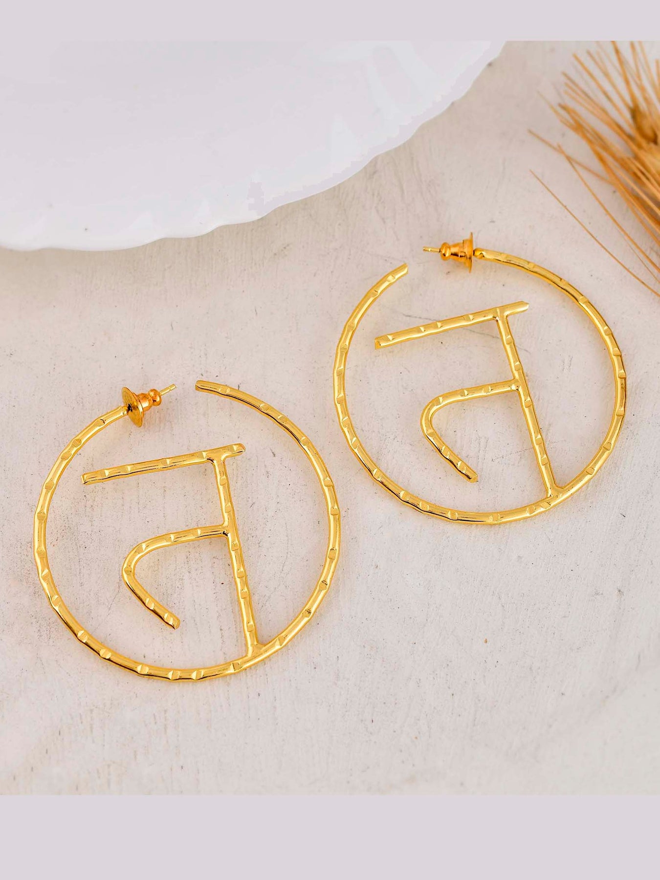 Akshar Encircled Earring En66 Color :Gold Material :Brass Closure :Hoop Care Instructions :Keep Away From Moisture Weight :0.5G