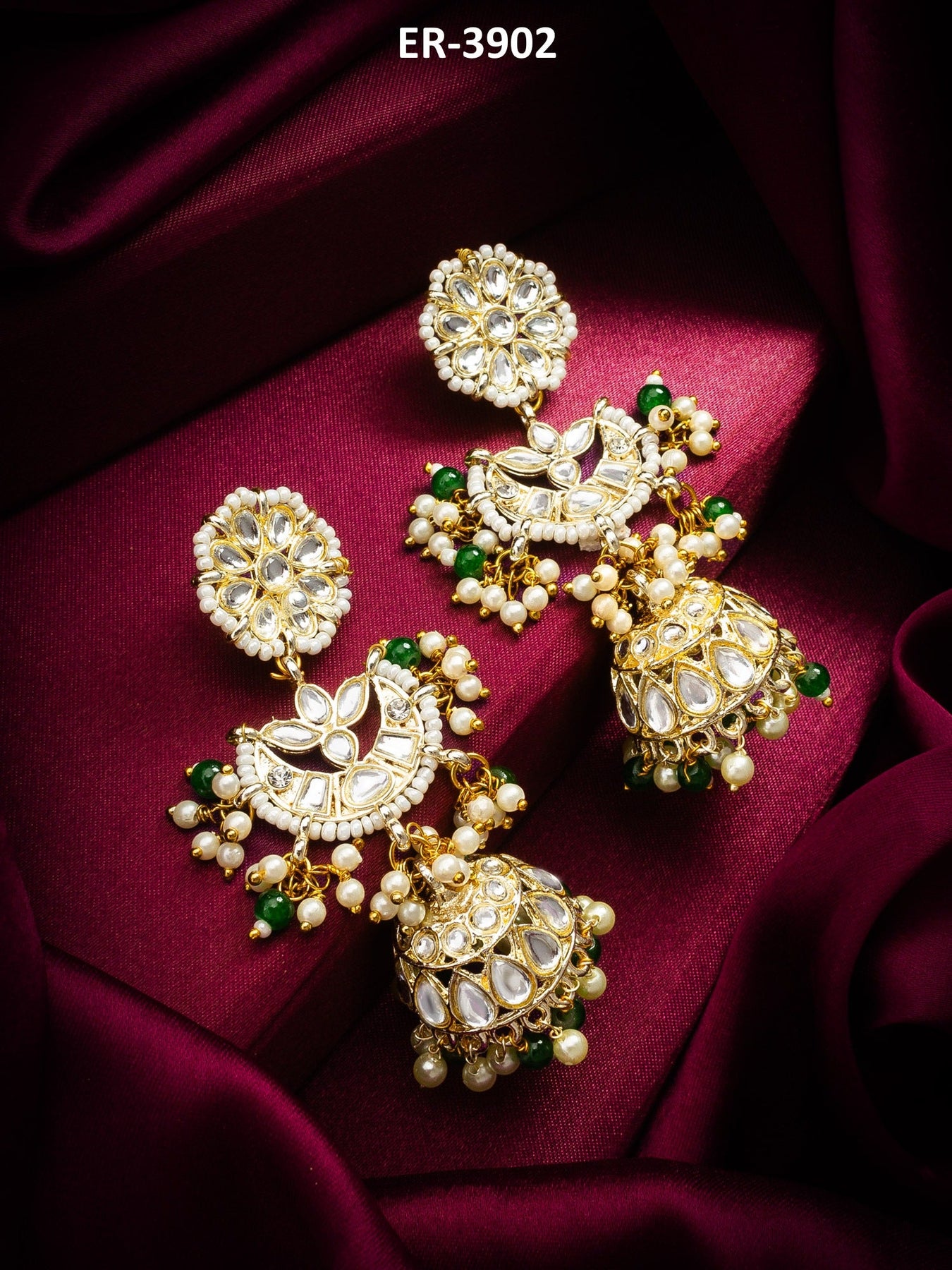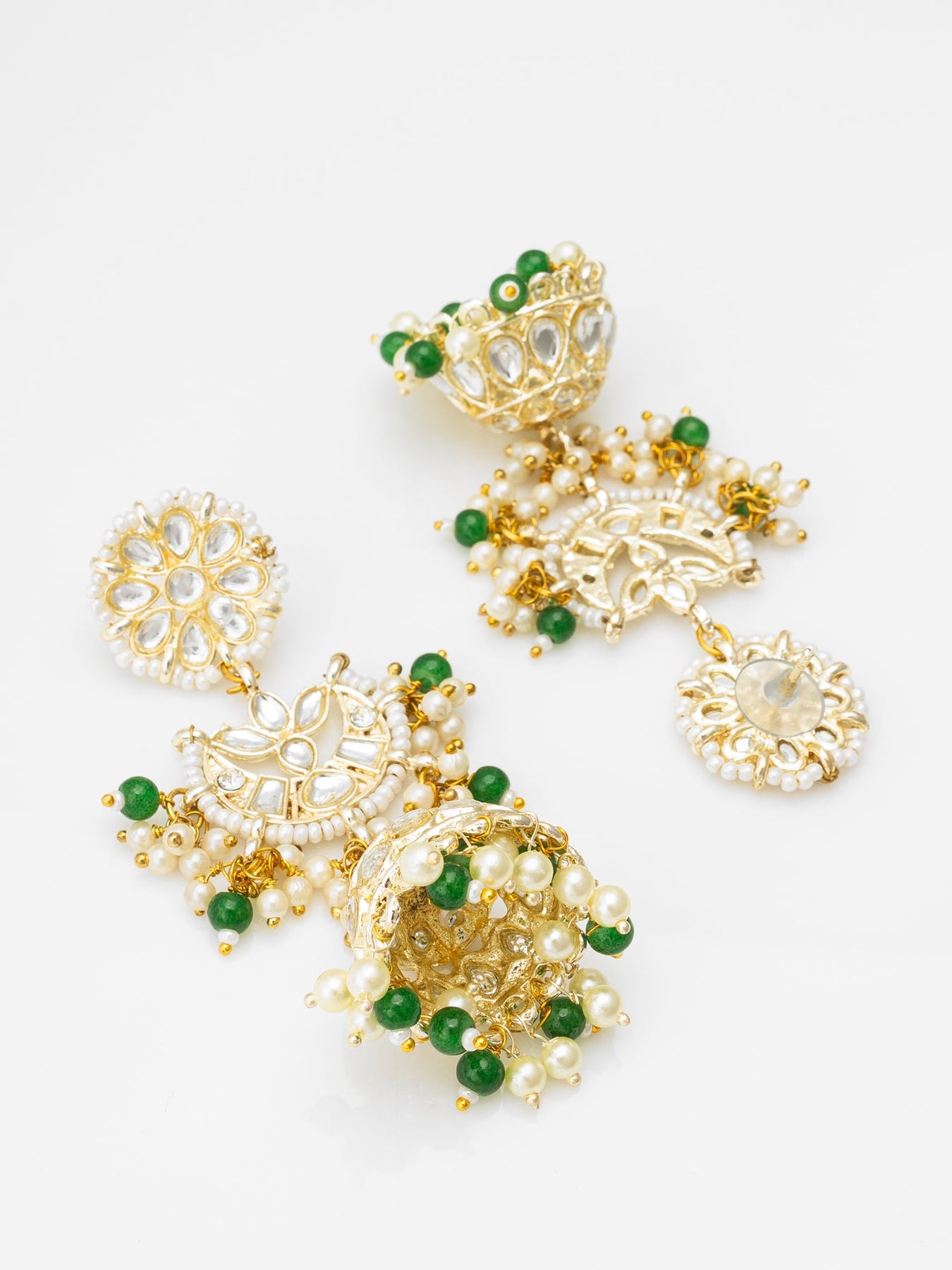 Elevate Your Look With These Stunning Green And Gold Jhumka Earrings Adorned With Delicate Pearls. Perfect For Adding A Touch Of Elegance To Any Outfit, These Earrings Are Sure To Make A Statement Wherever You Go. Ideal For Both Casual And Formal Occasions, These Earrings Are A Must-Have Accessory For Any Jewelry Collection.